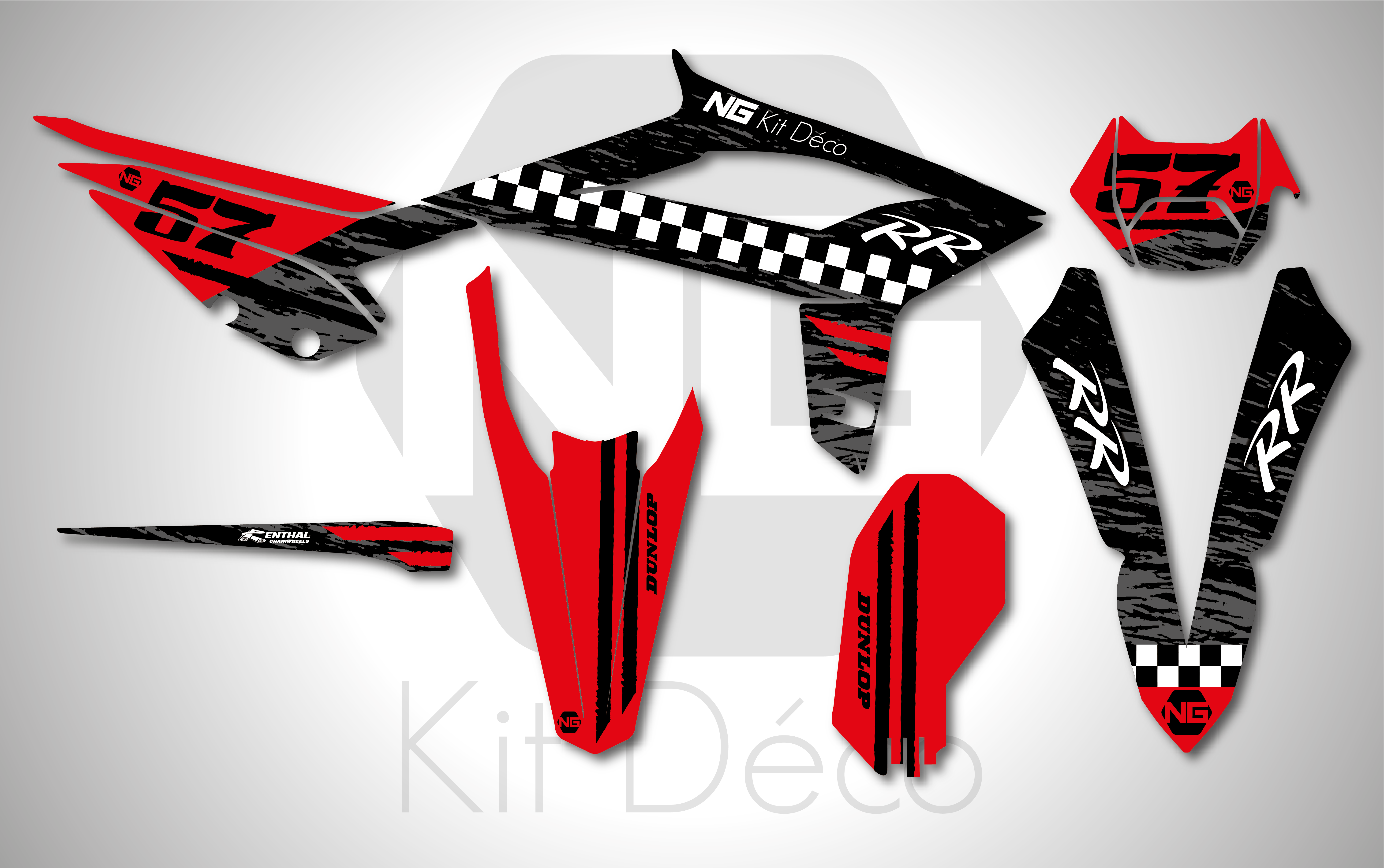 Les images de kit déco sont à titre d’exemple et peuvent varier selon l’année et le modèle de votre moto d’enduro.