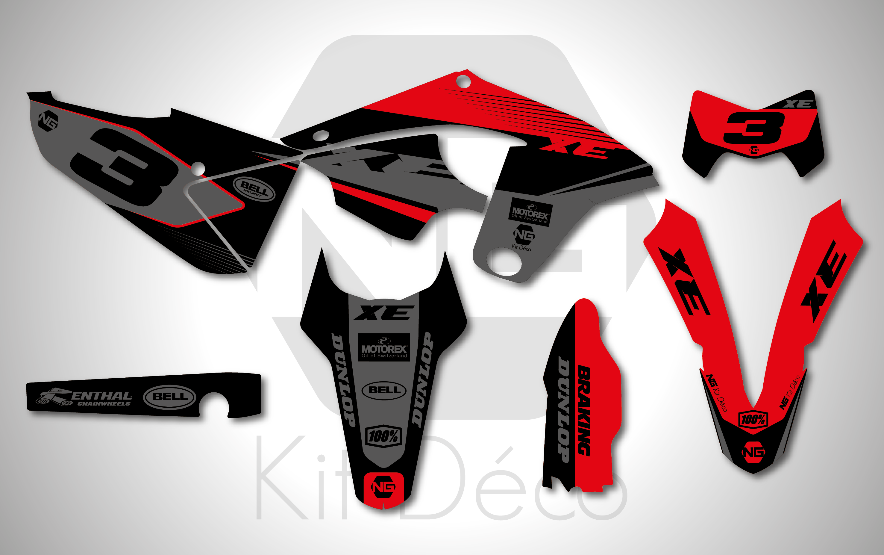 Les images de kit déco sont à titre d’exemple et peuvent varier selon l’année et le modèle de votre moto d’enduro.