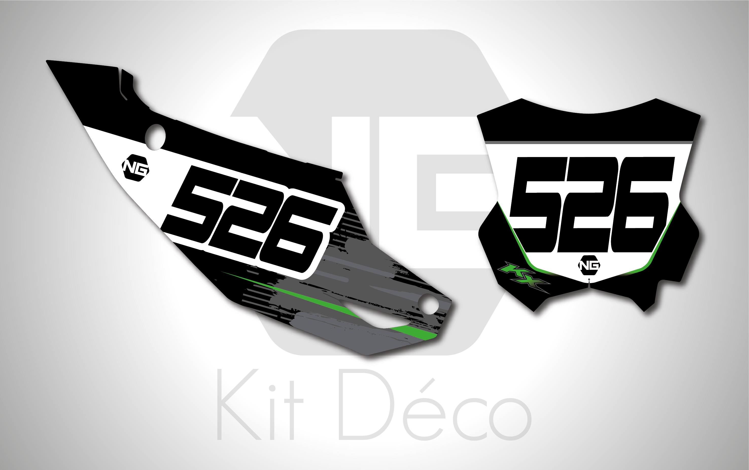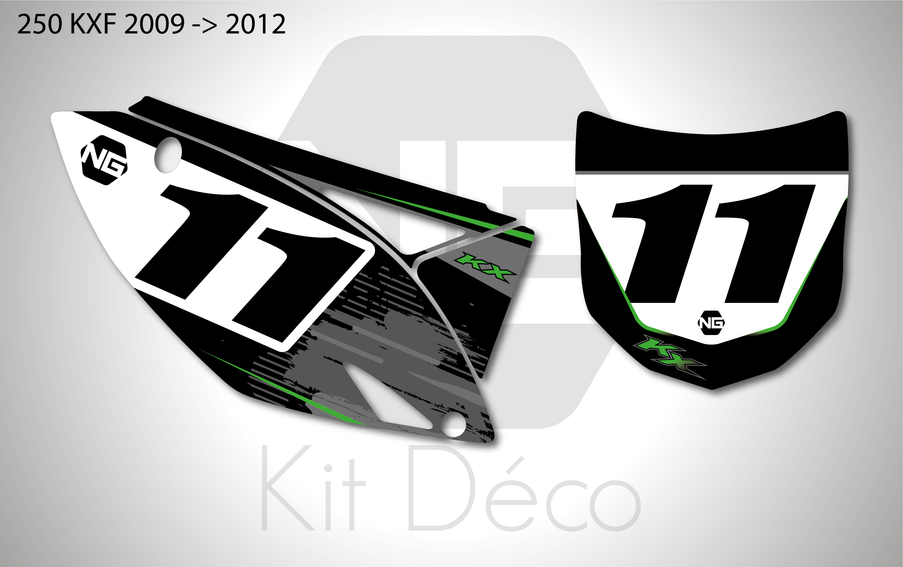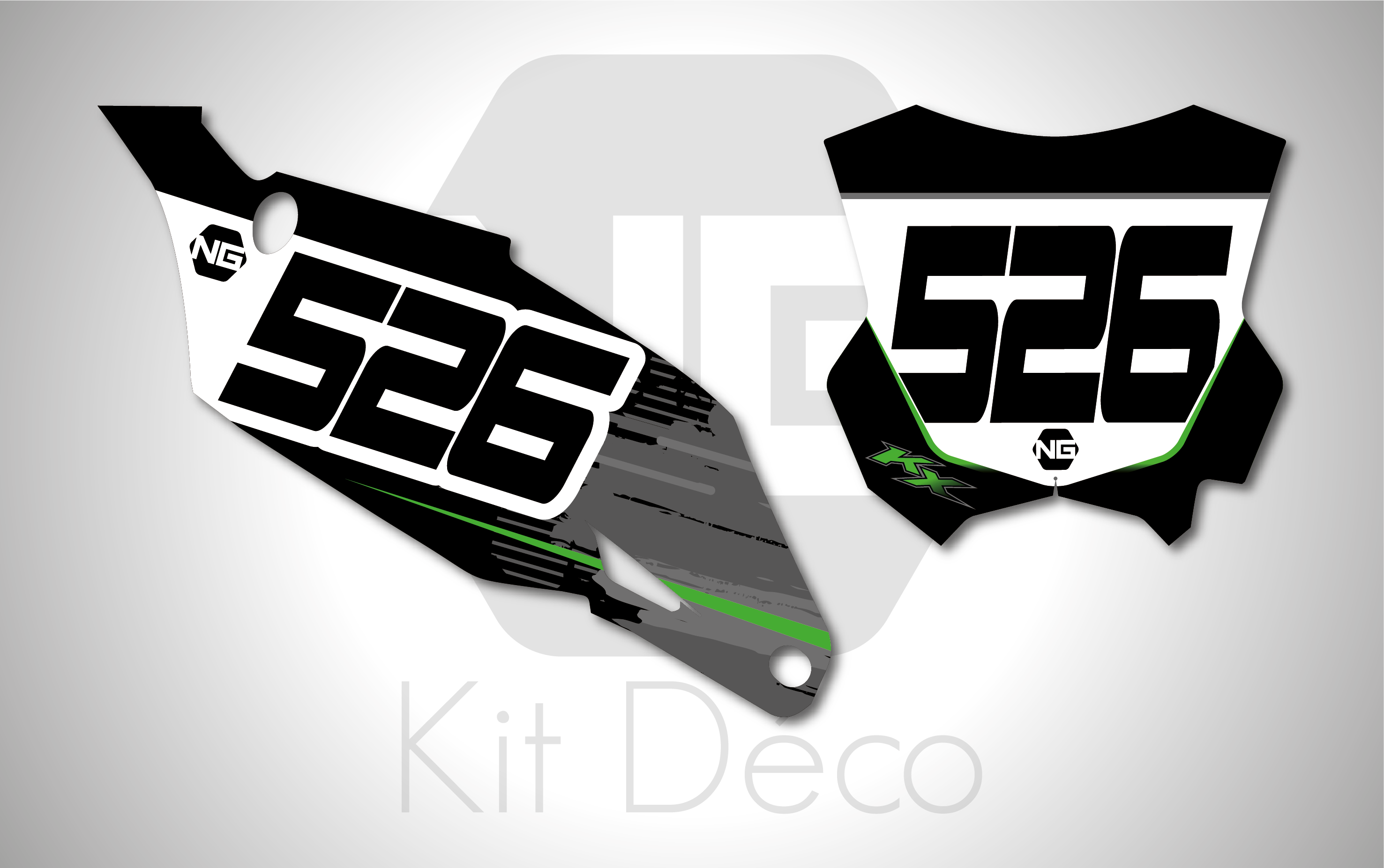 Votre kit déco fond de plaque numéro pour motocross Kawasaki KLX / KX / KXF comprend