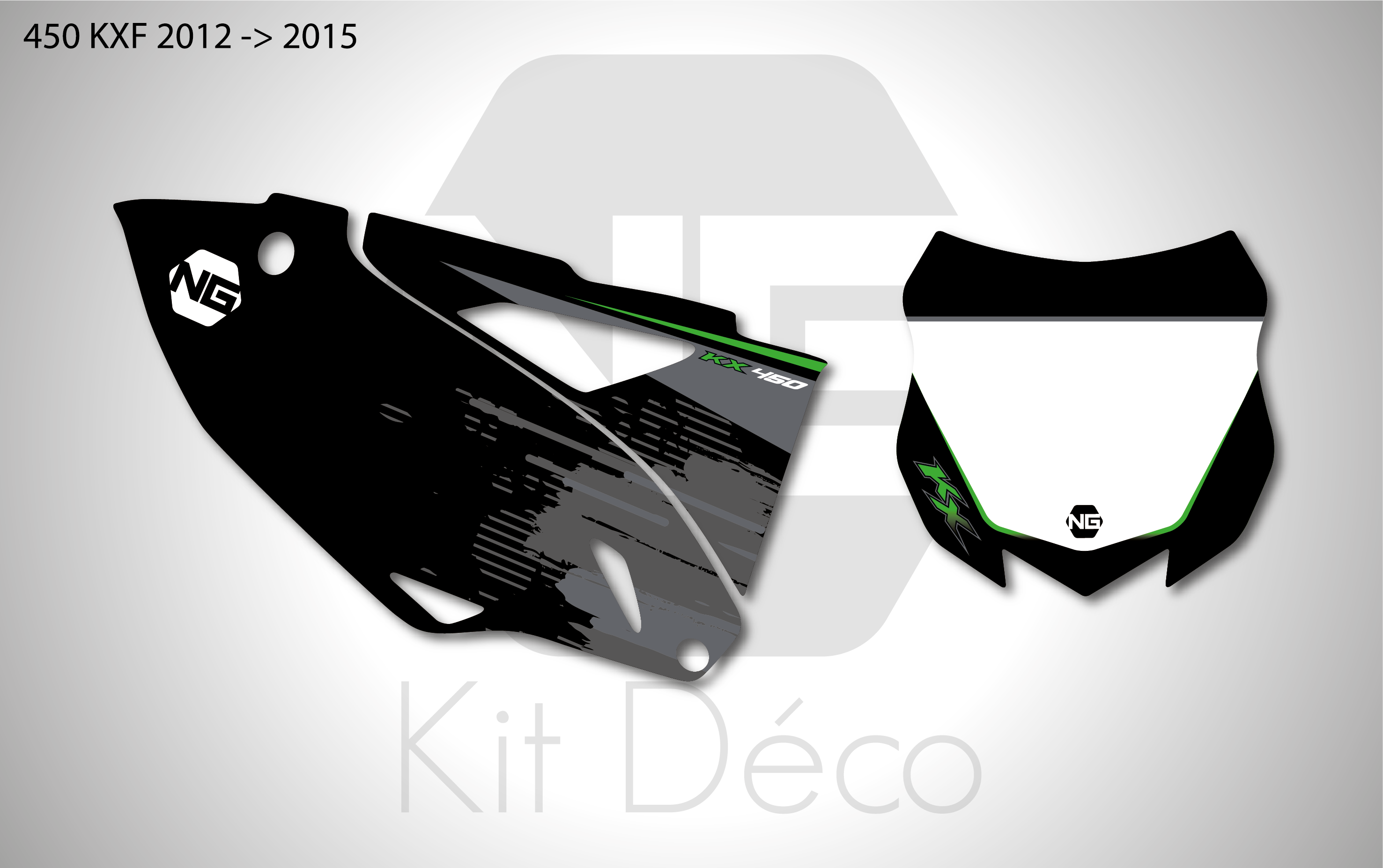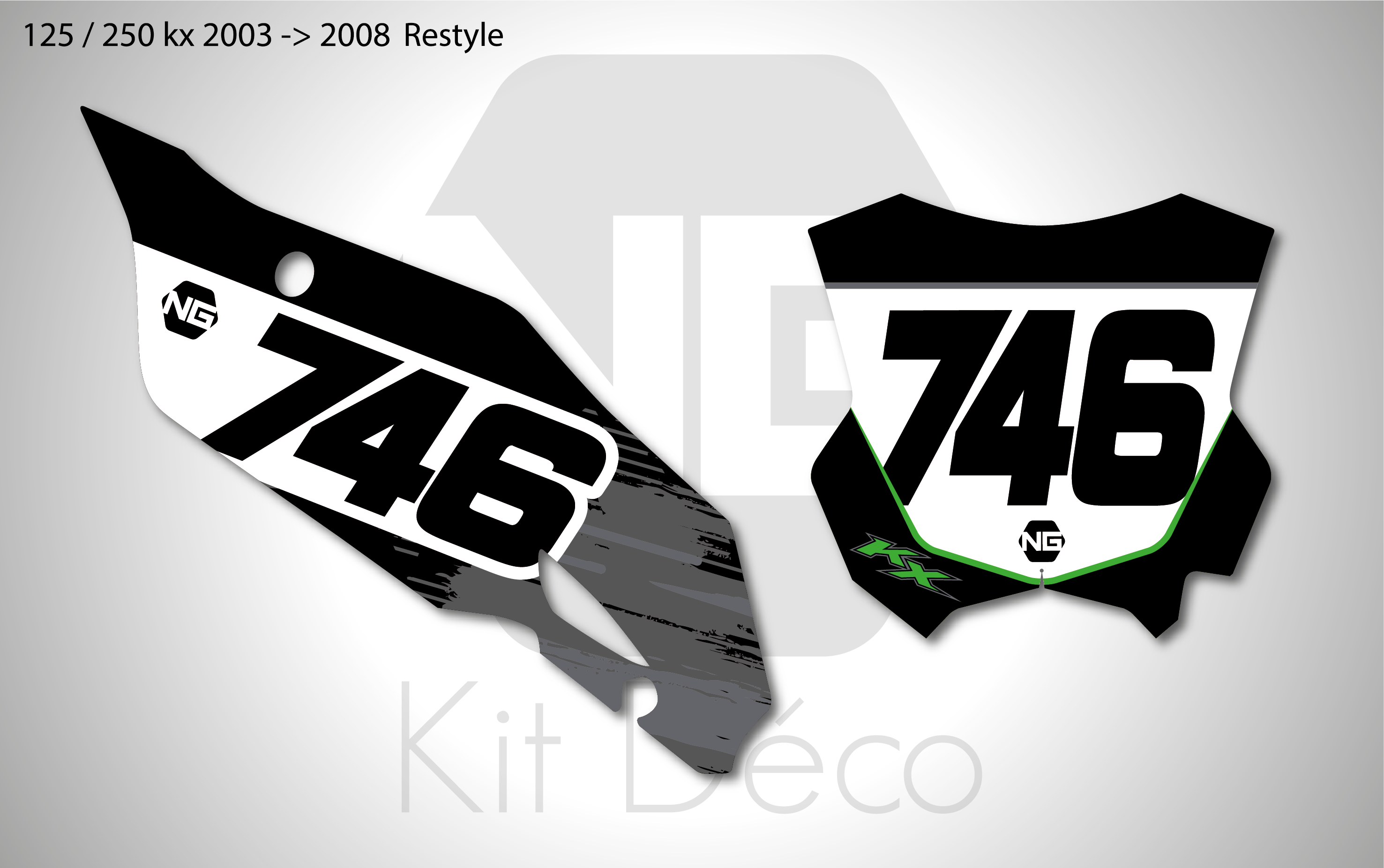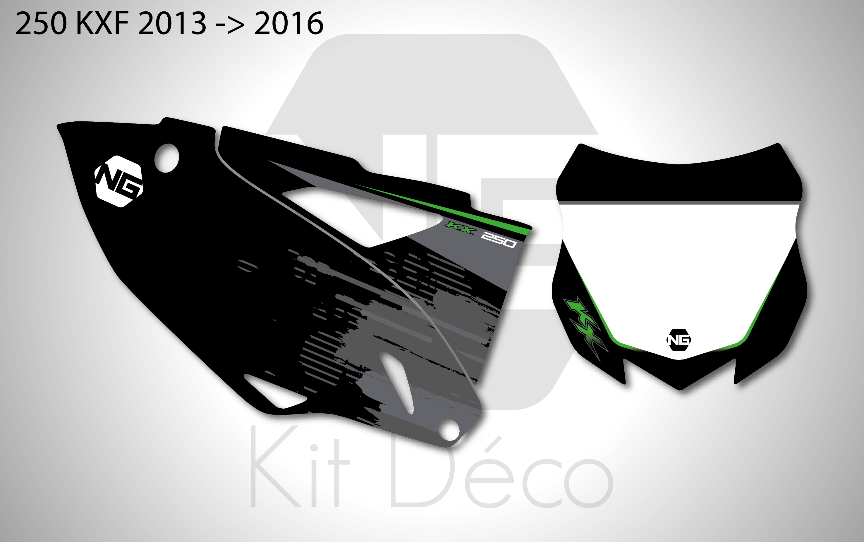 Votre kit déco fond de plaque numéro pour motocross Kawasaki KLX / KX / KXF comprend