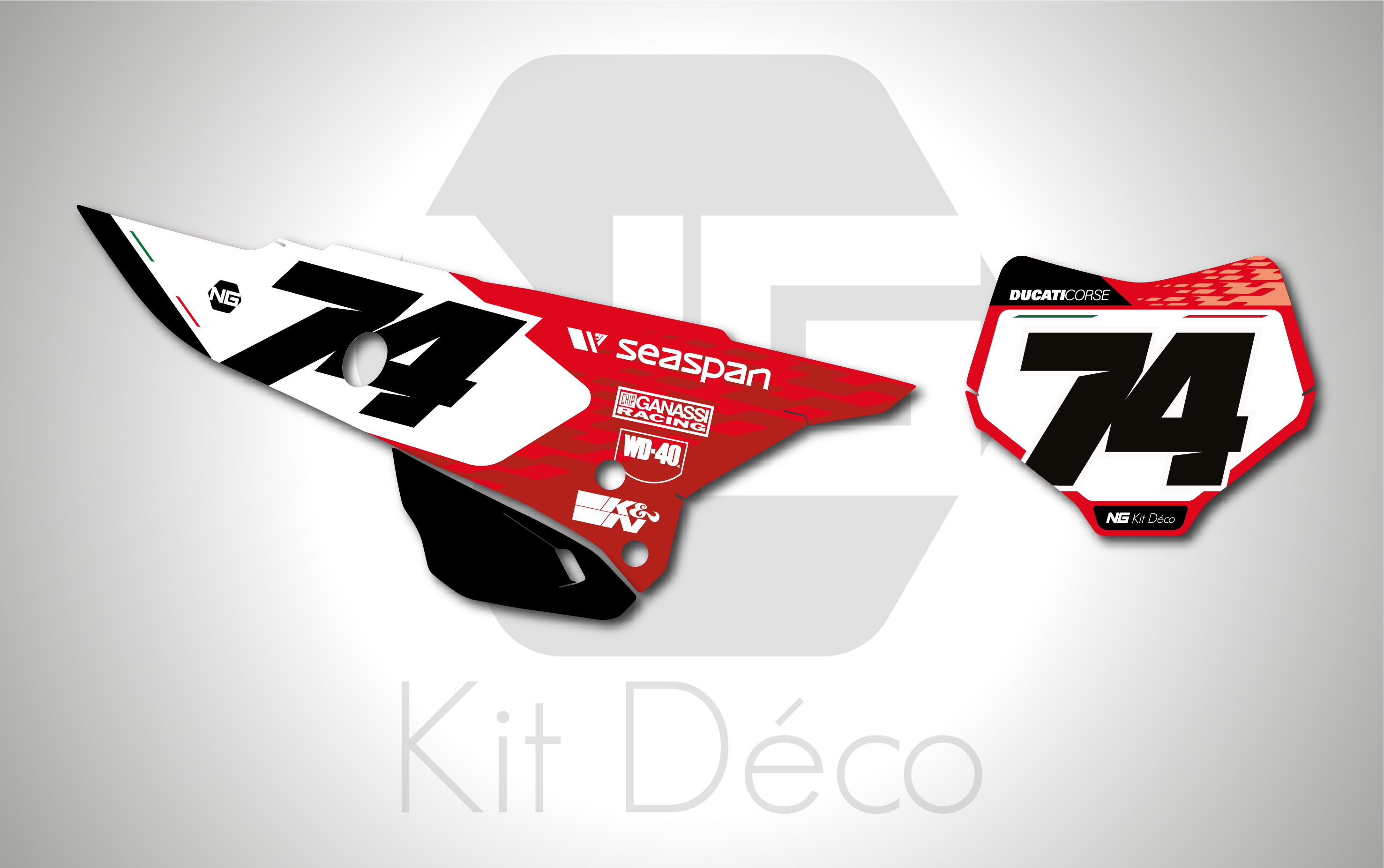 Votre kit déco fond de plaque numéro pour motocross Ducati Desmo comprend
