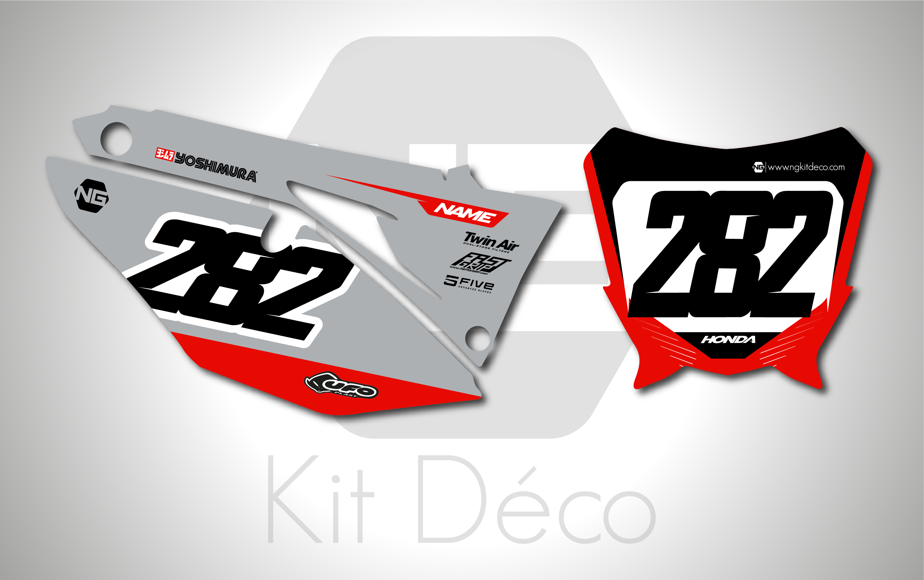 Votre kit déco fond de plaque numéro pour motocross Honda QR / CR / CRF comprend