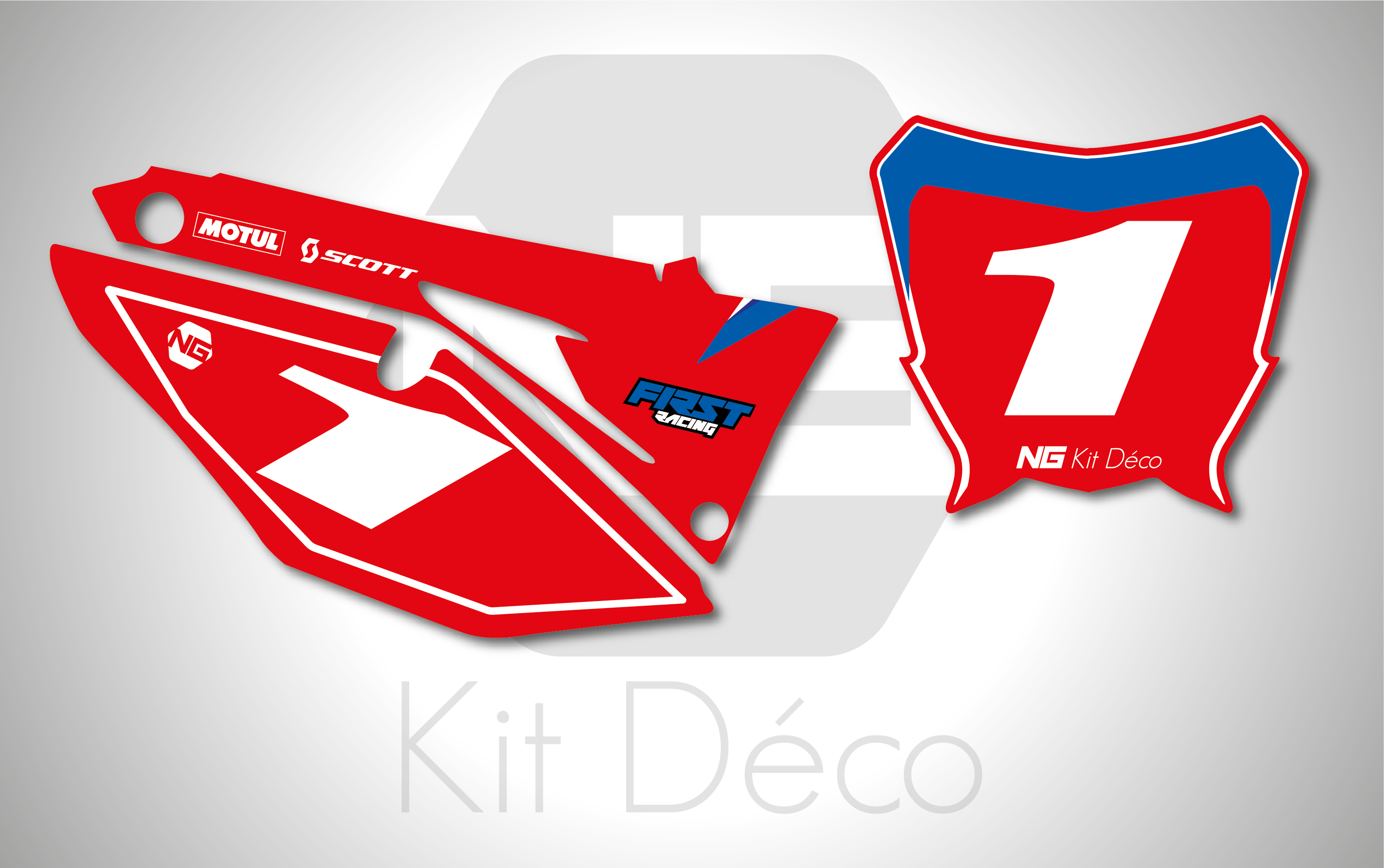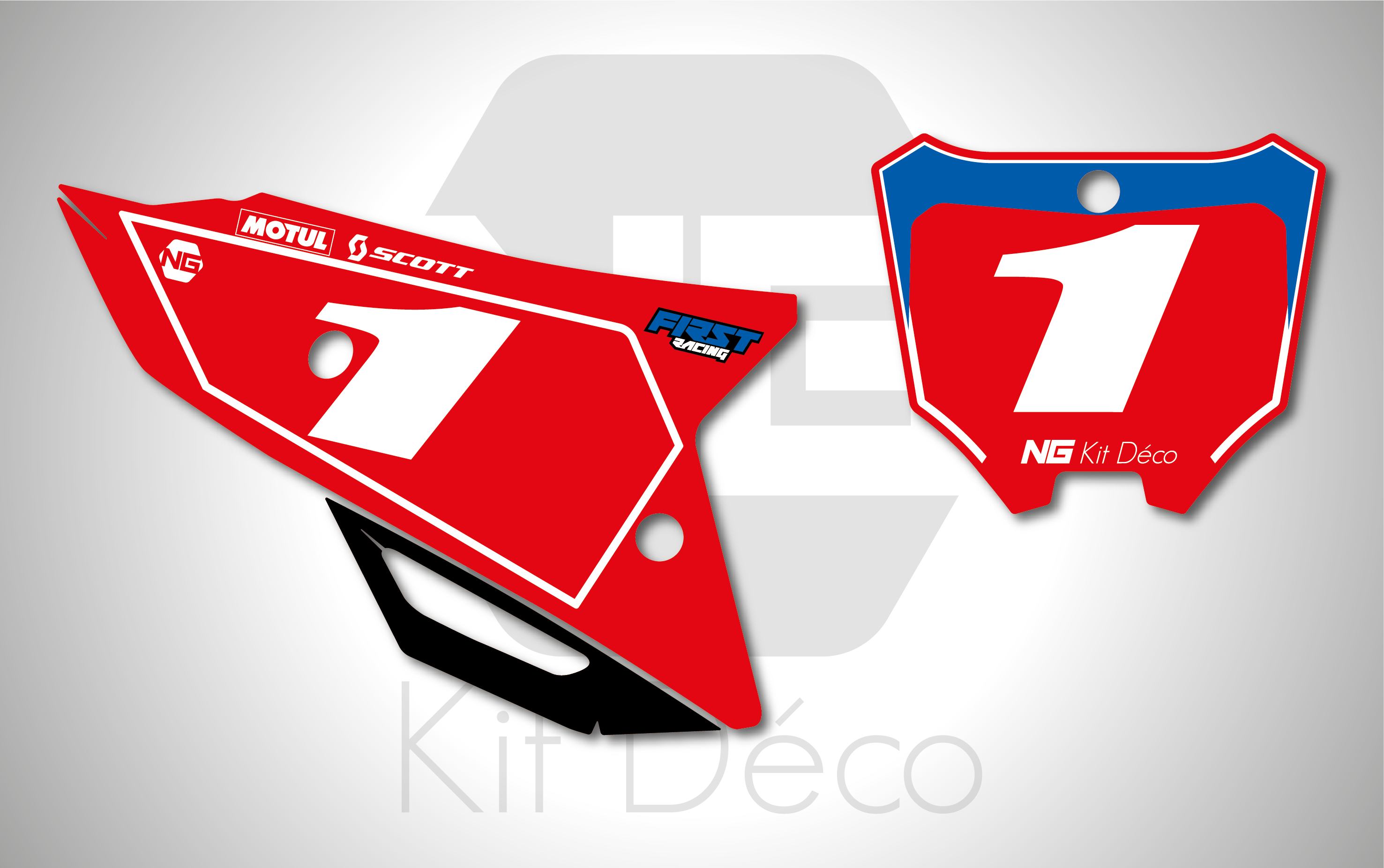 Votre kit déco fond de plaque numéro pour motocross Honda QR / CR / CRF comprend