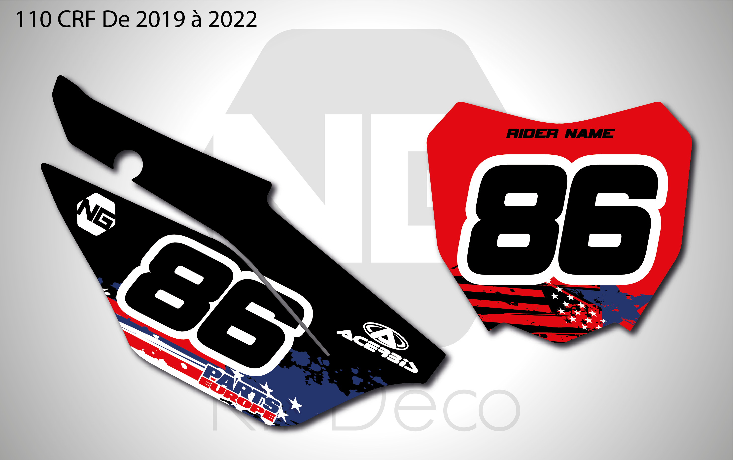Votre kit déco fond de plaque numéro pour motocross Honda QR / CR / CRF comprend