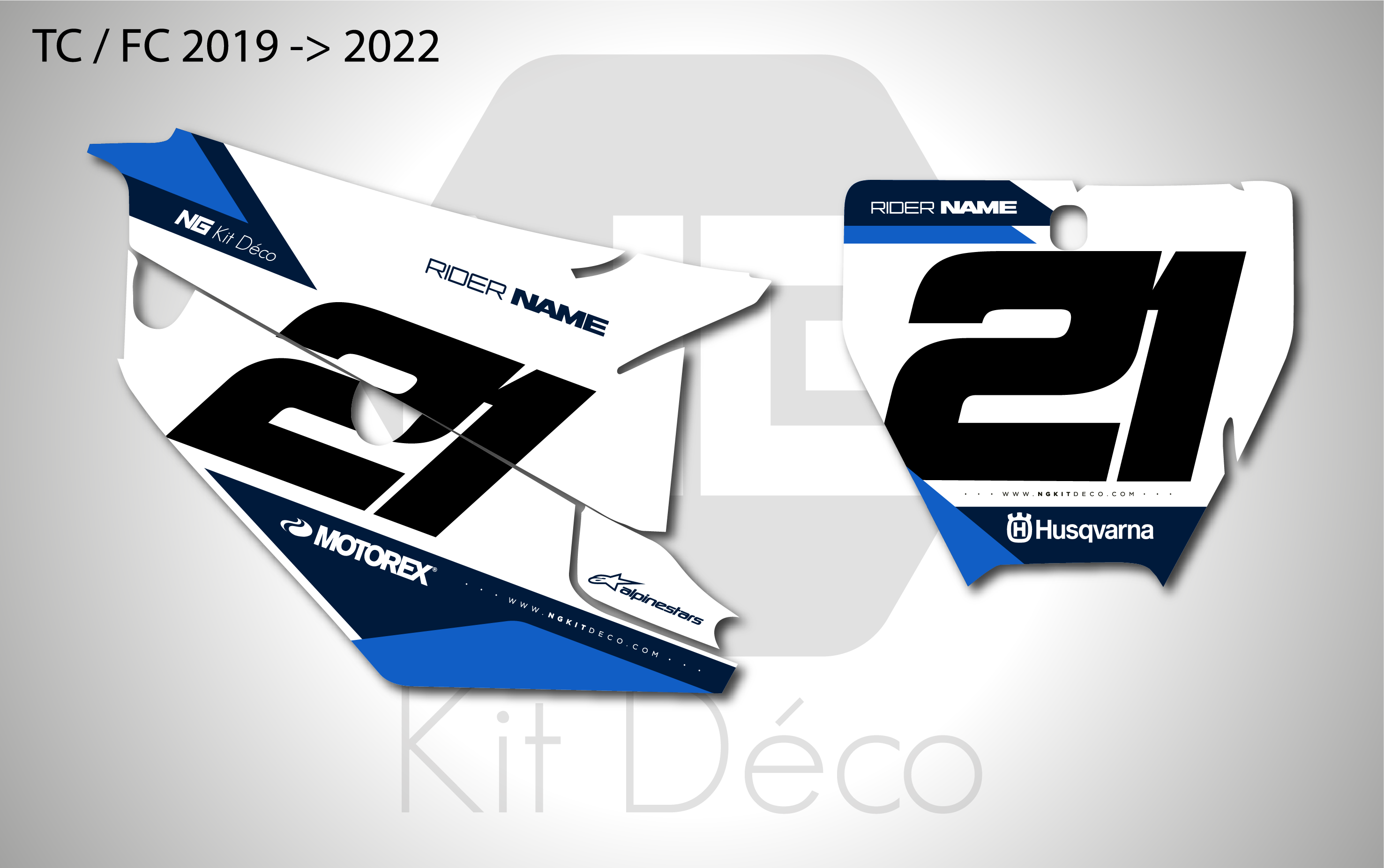 Votre kit déco fond de plaque numéro pour motocross Husqvarna TC / FC comprend