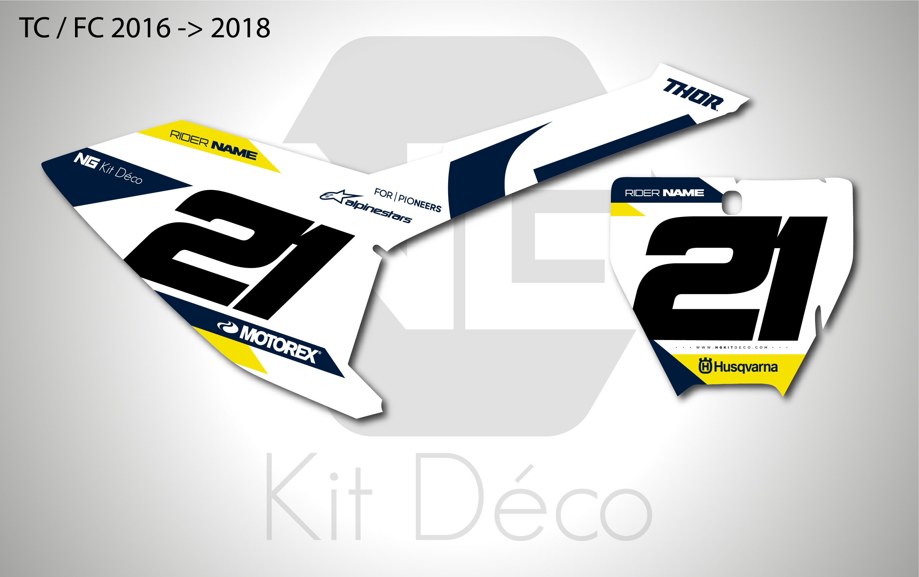 Votre kit déco fond de plaque numéro pour motocross Husqvarna TC / FC comprend
