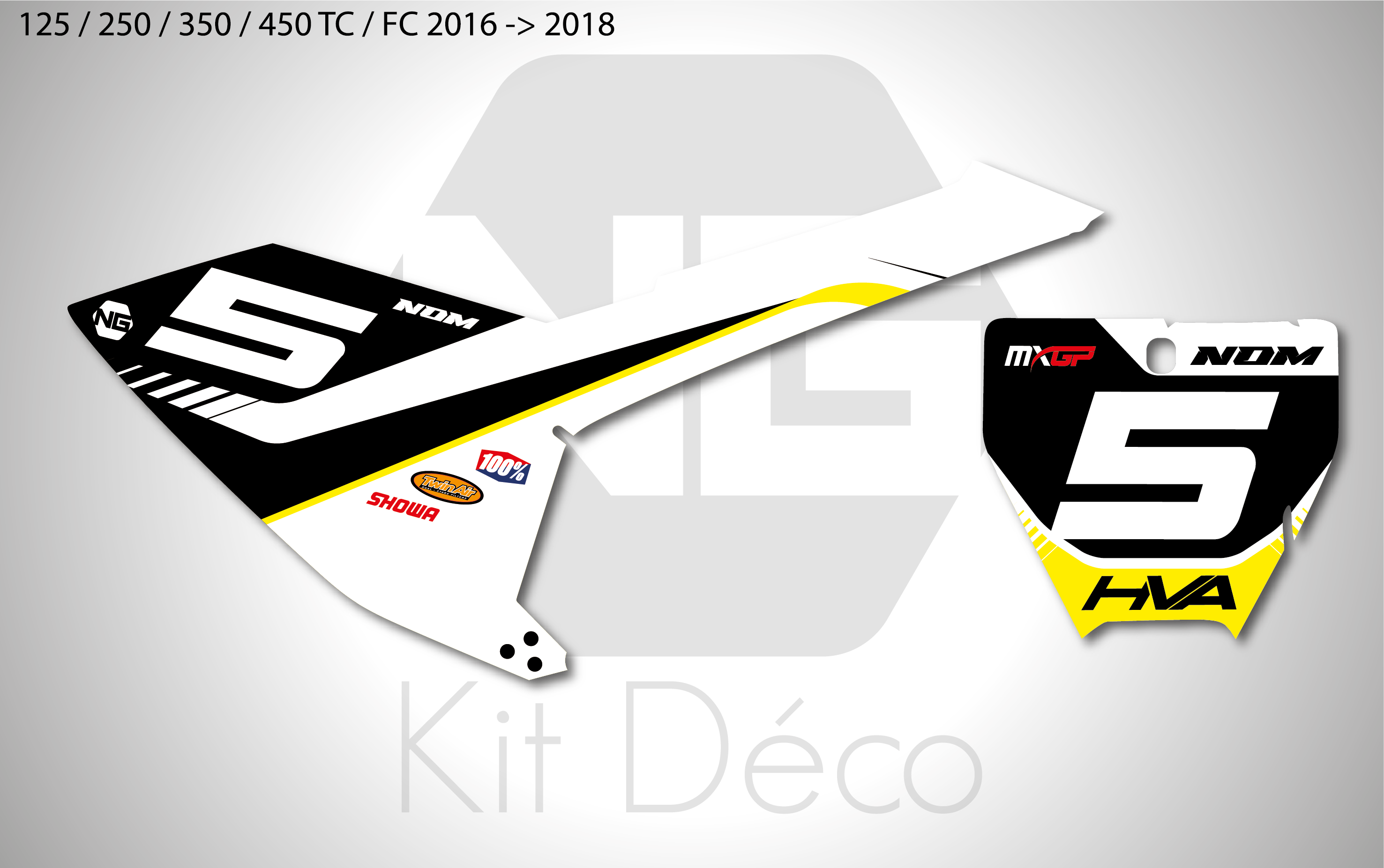 Votre kit déco fond de plaque numéro pour motocross Husqvarna TC / FC comprend
