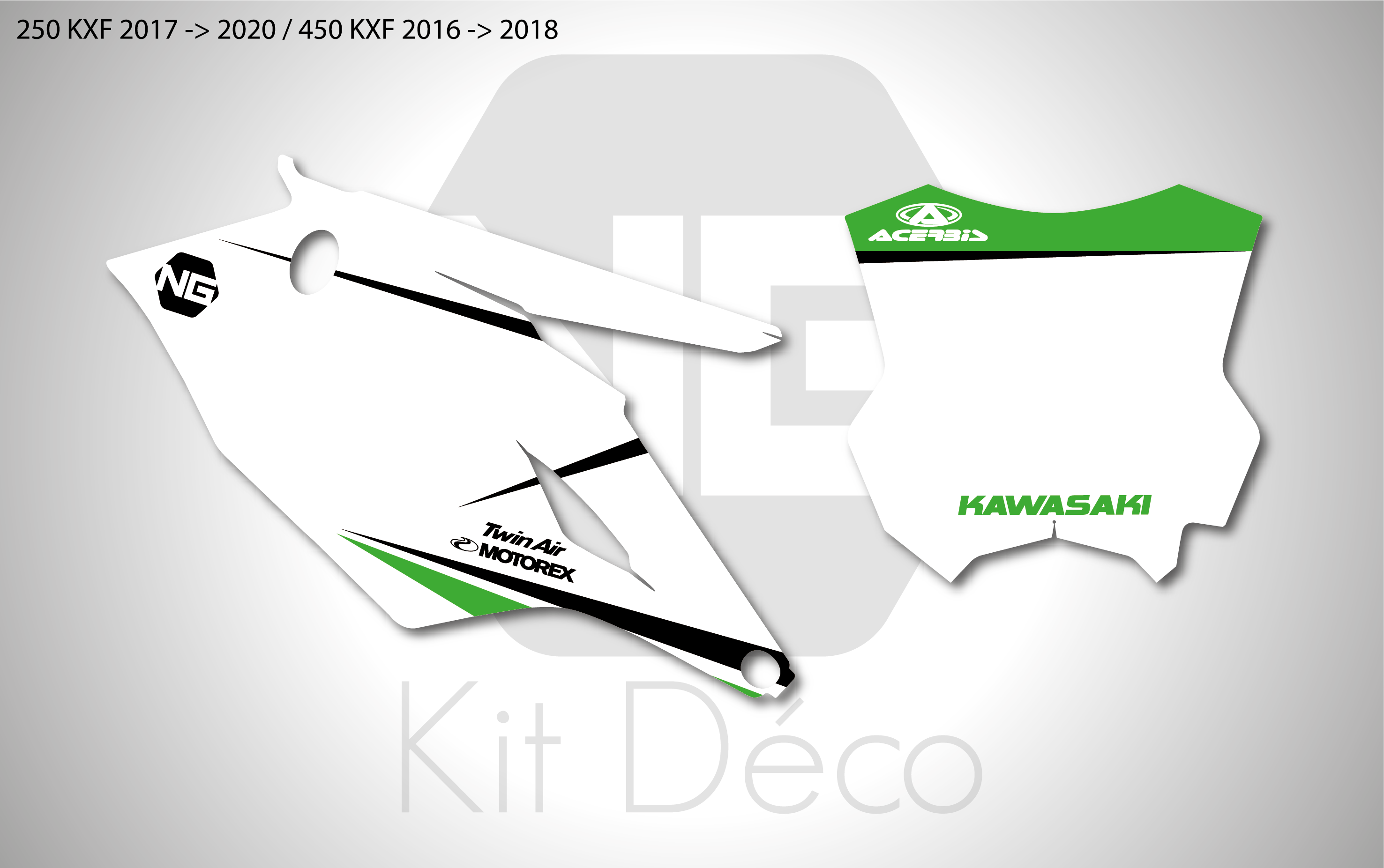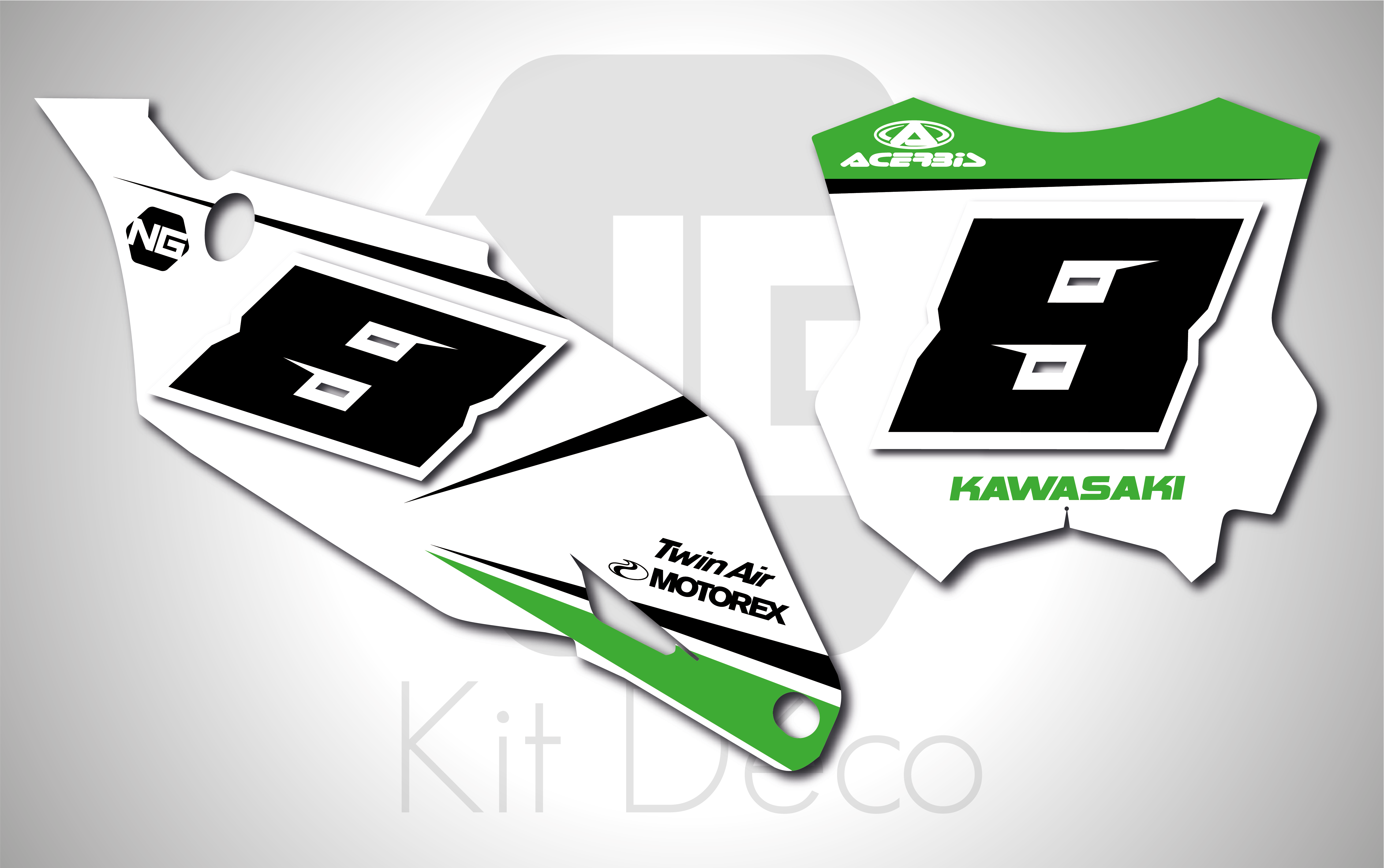 Votre kit déco fond de plaque numéro pour motocross Kawasaki KLX / KX / KXF comprend