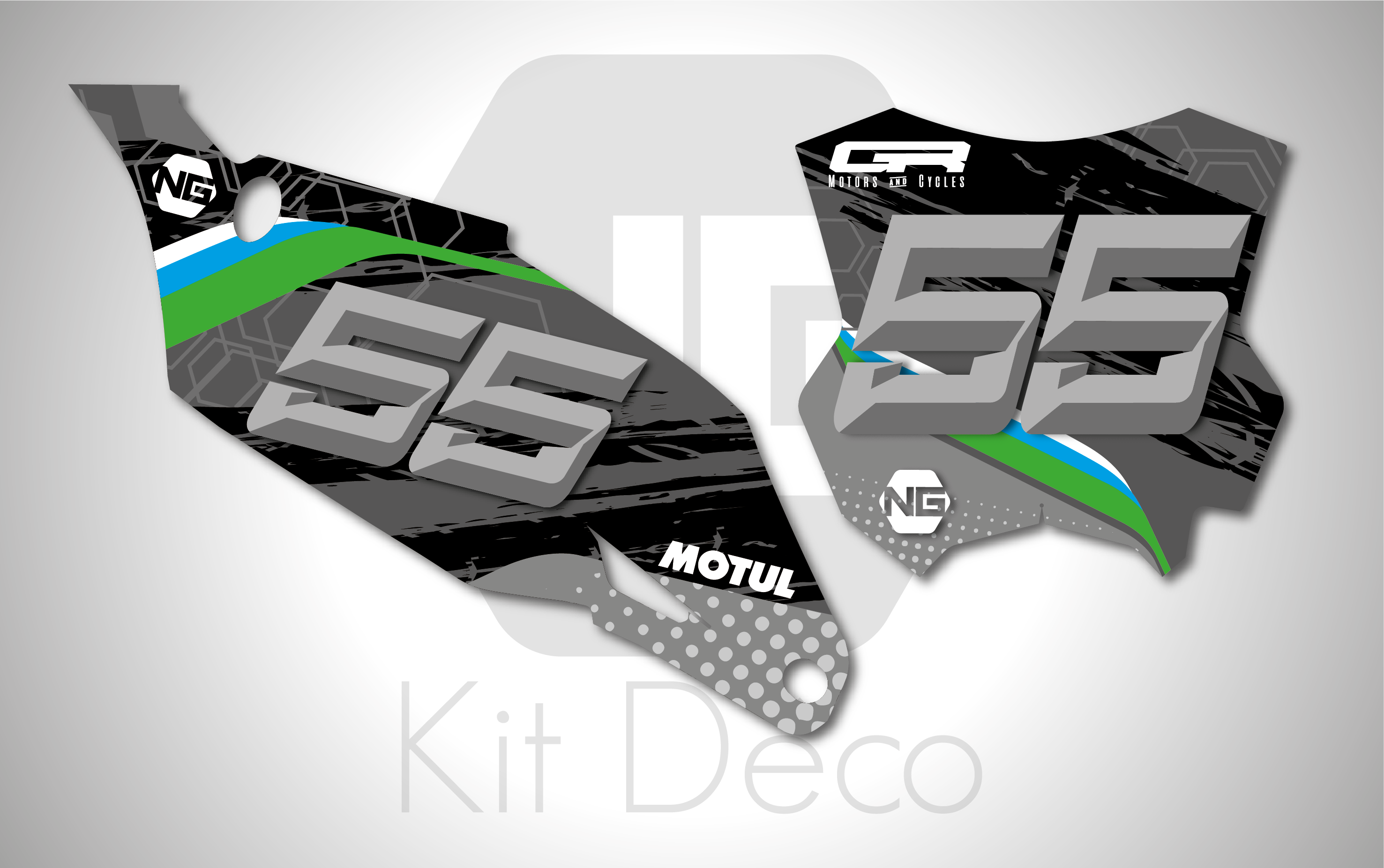 Votre kit déco fond de plaque numéro pour motocross Kawasaki KLX / KX / KXF comprend