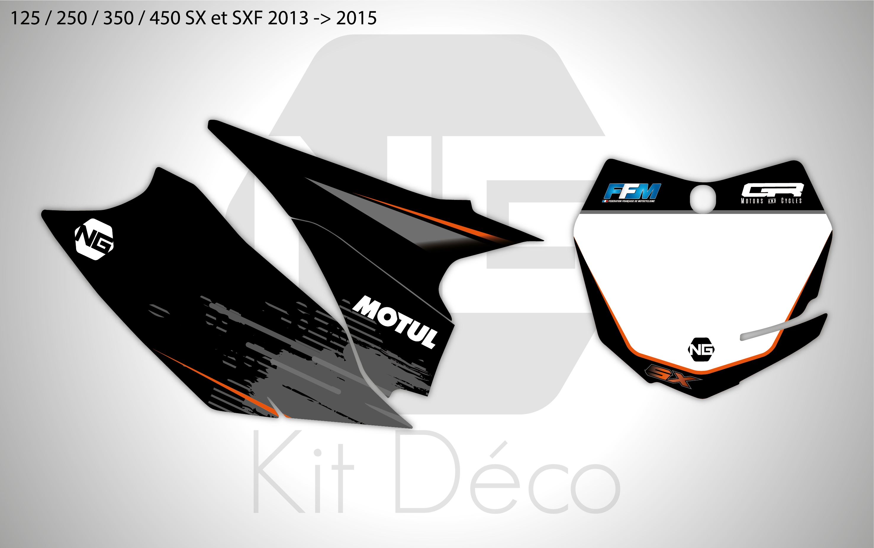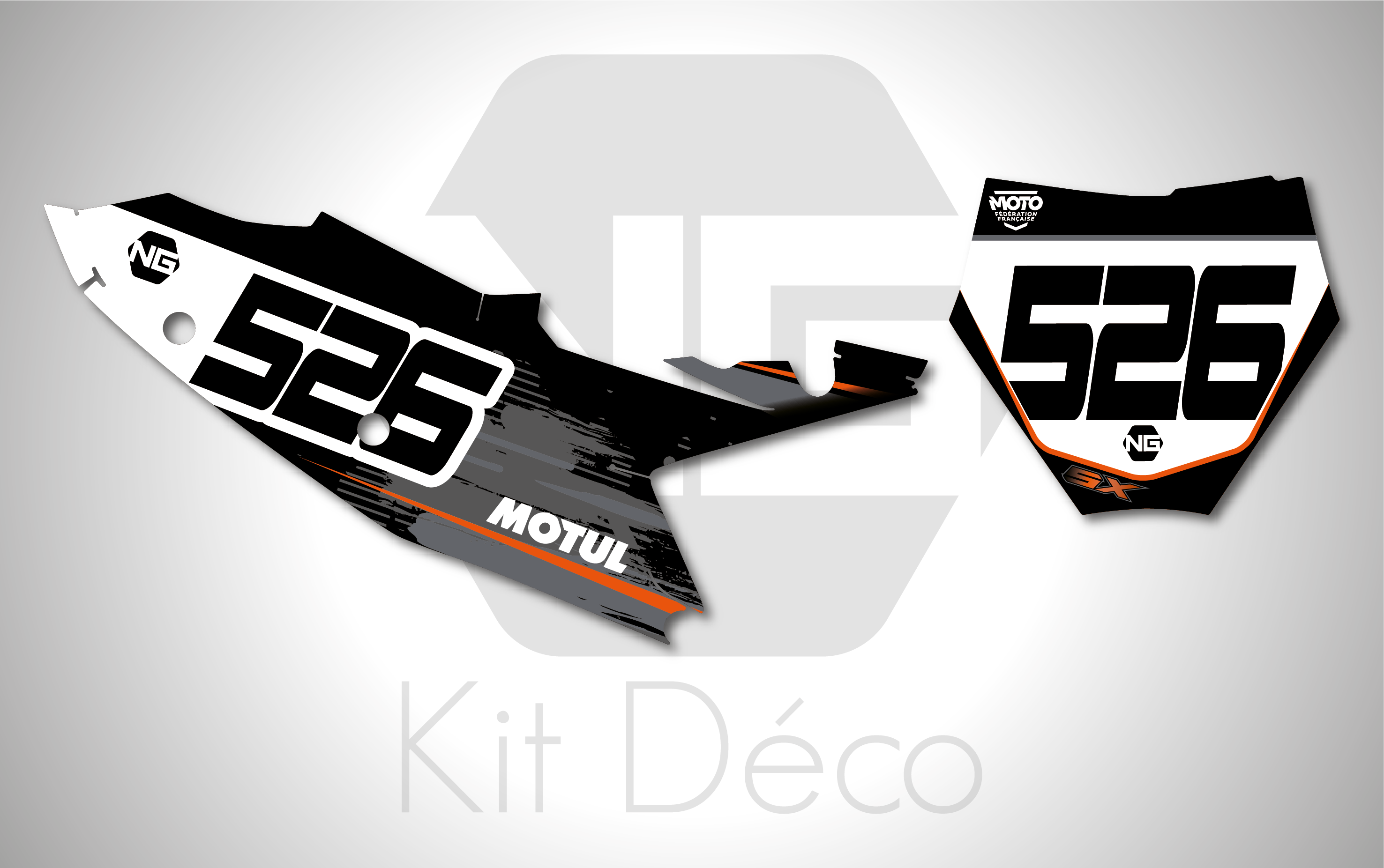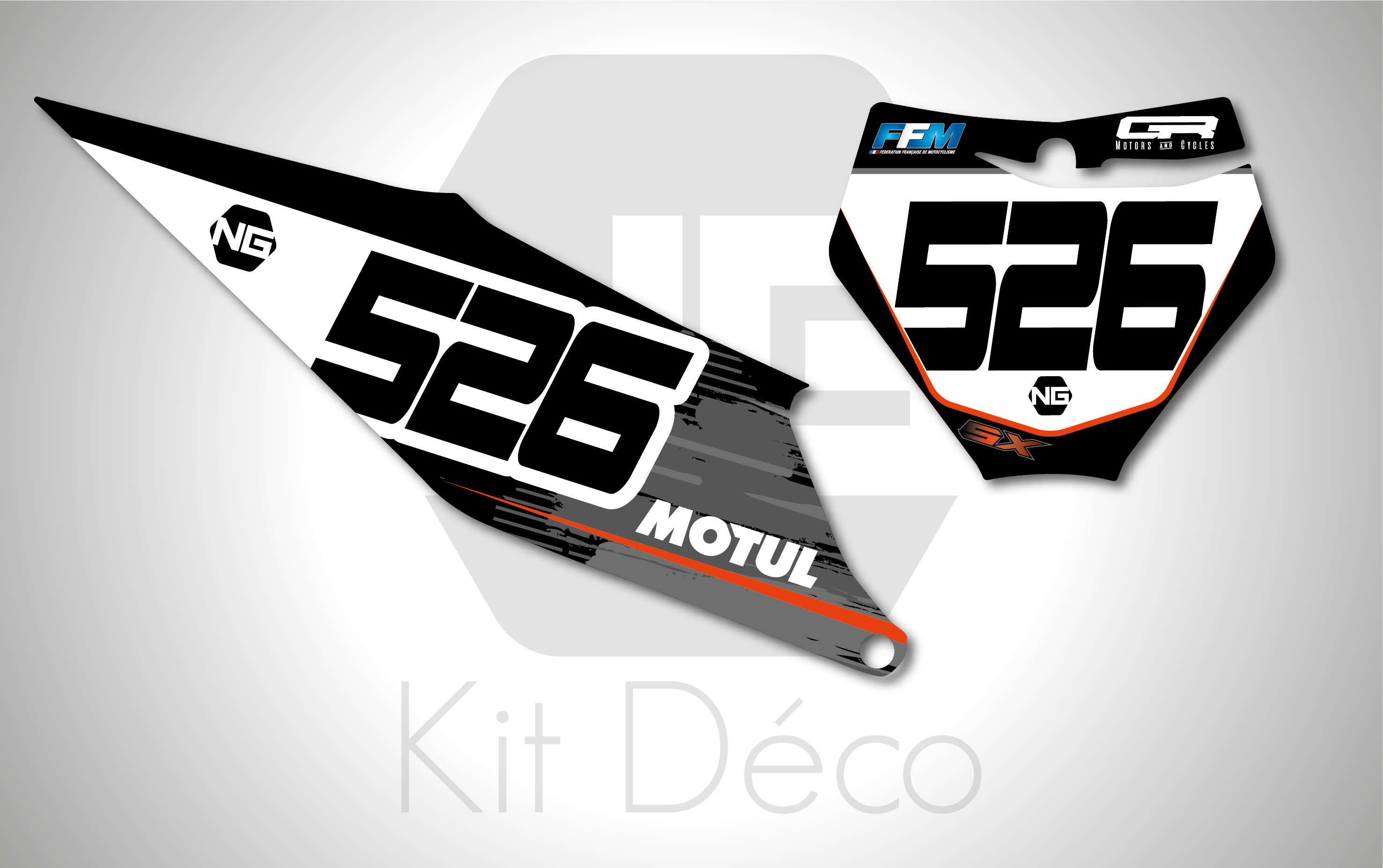 Votre kit déco plaques numéros pour motocross KTM SX / SXF comprend