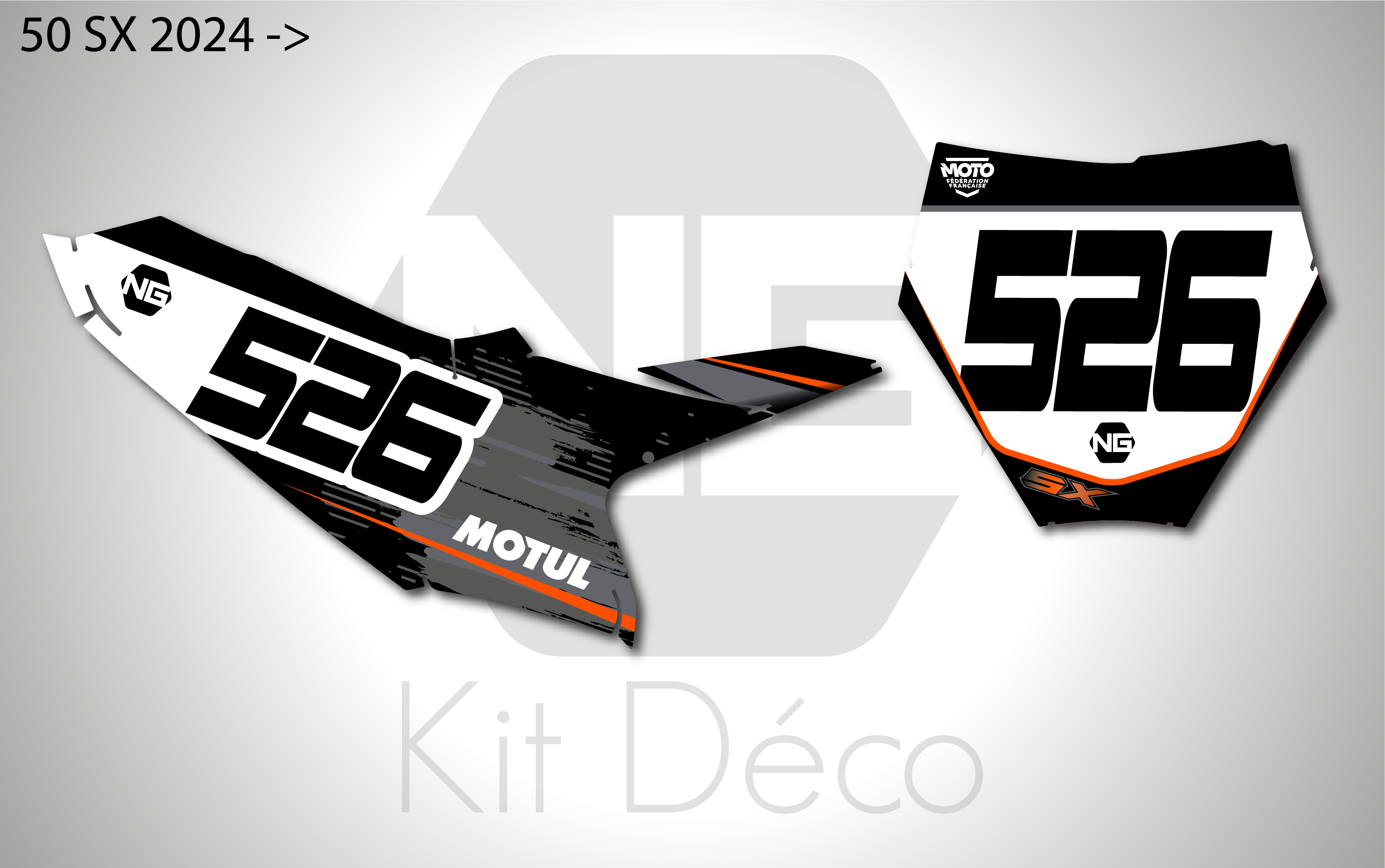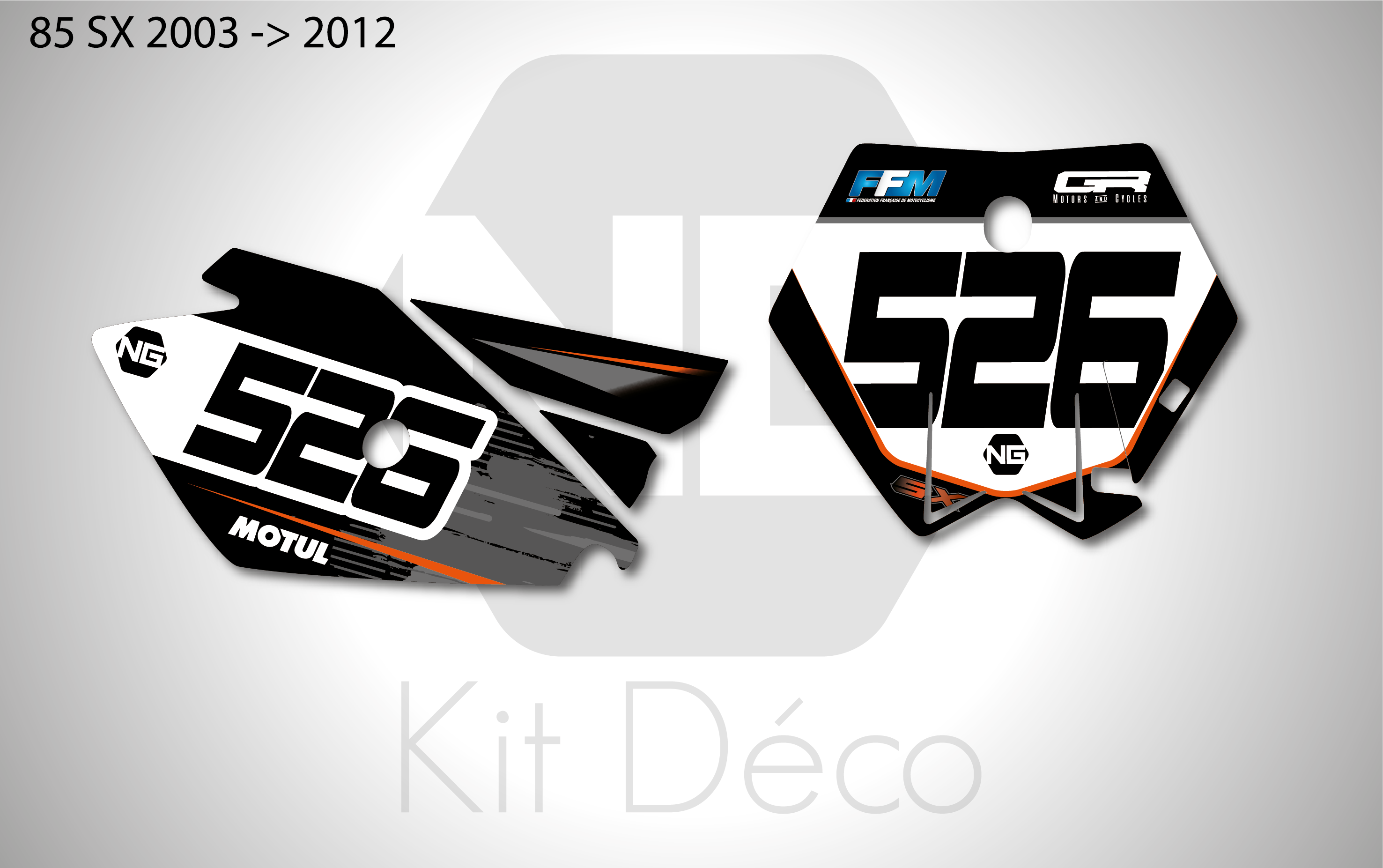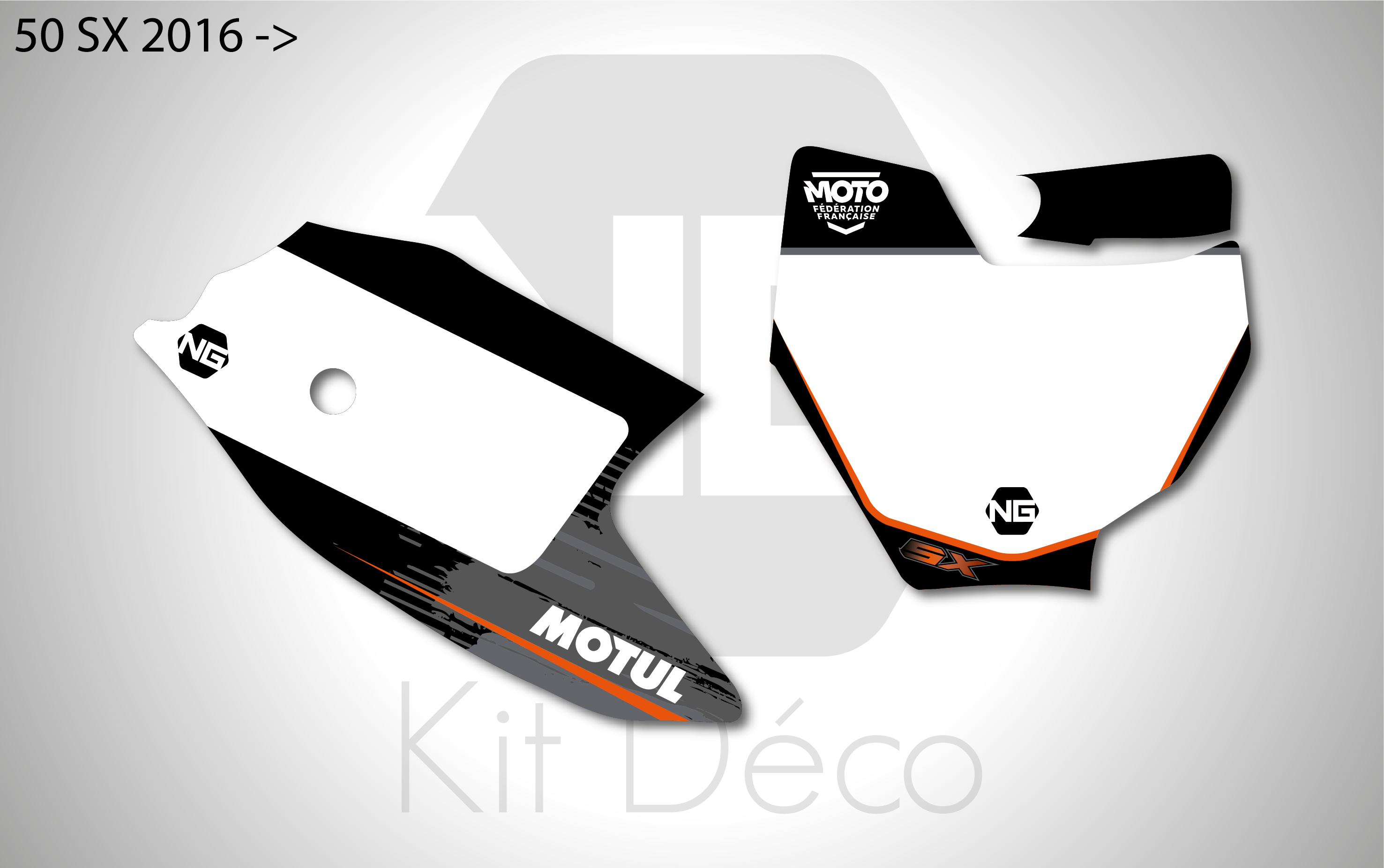 Votre kit déco plaques numéros pour motocross KTM SX / SXF comprend