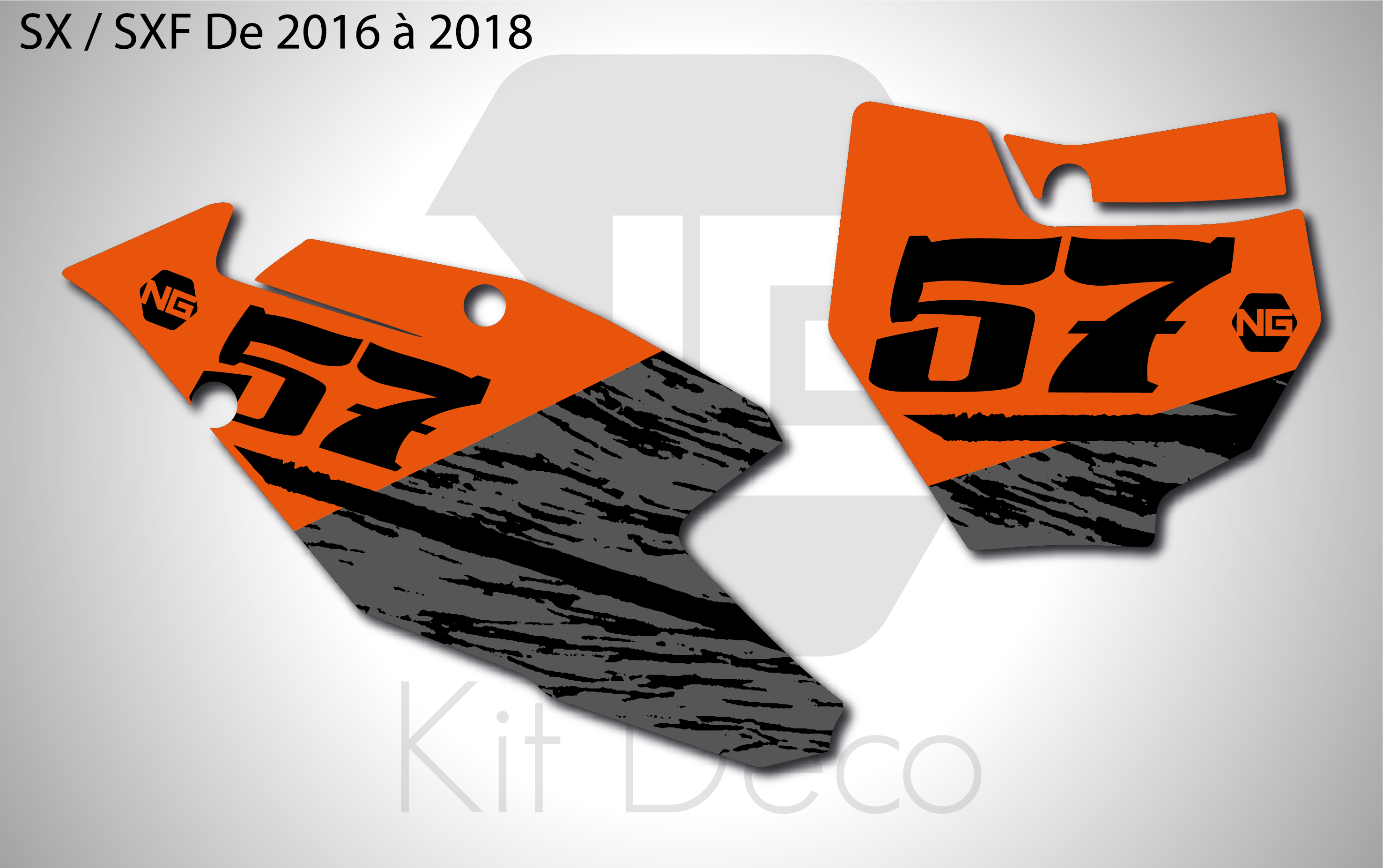 Votre kit déco plaques numéros pour motocross KTM SX / SXF comprend