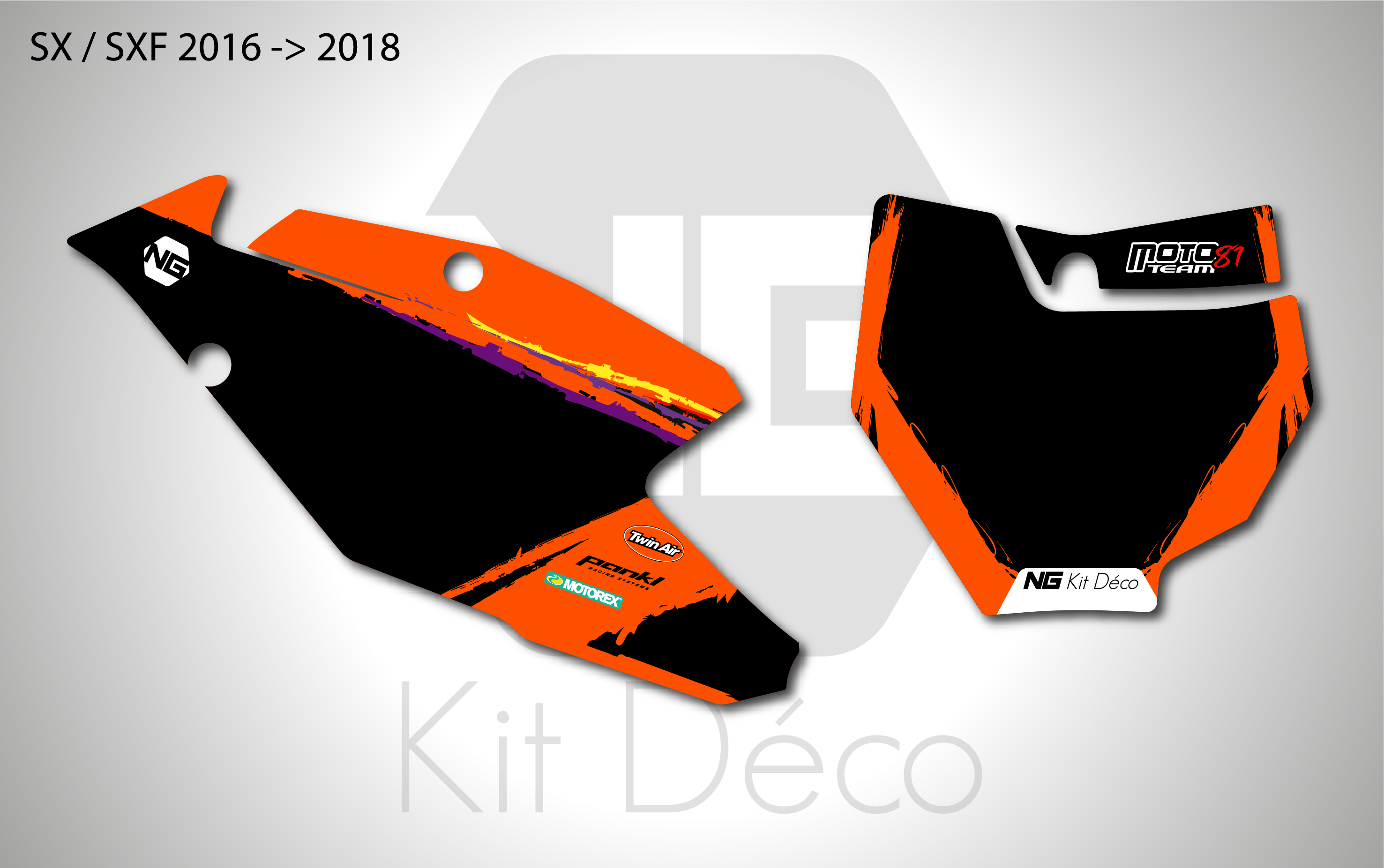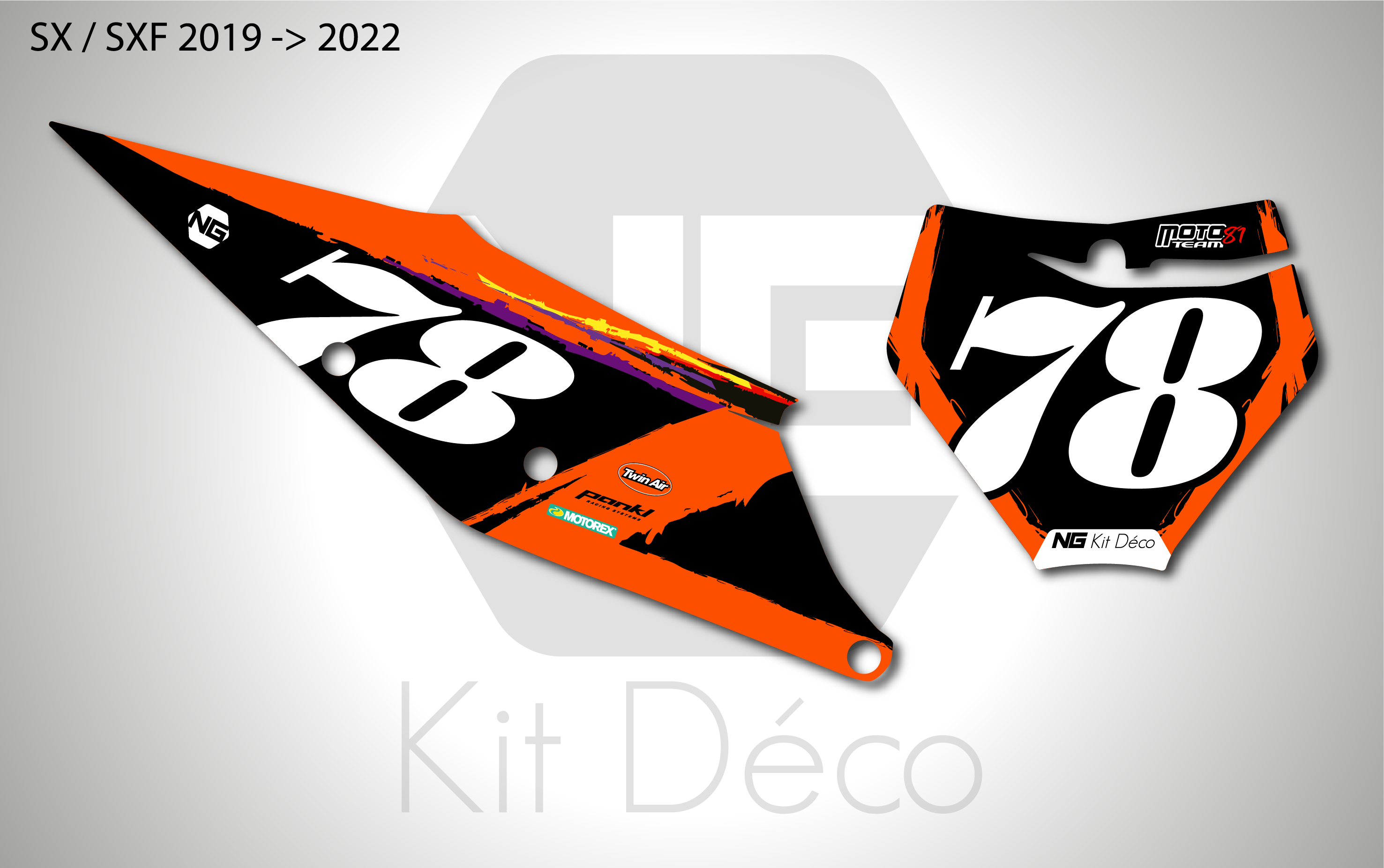Votre kit déco plaques numéros pour motocross KTM SX / SXF comprend
