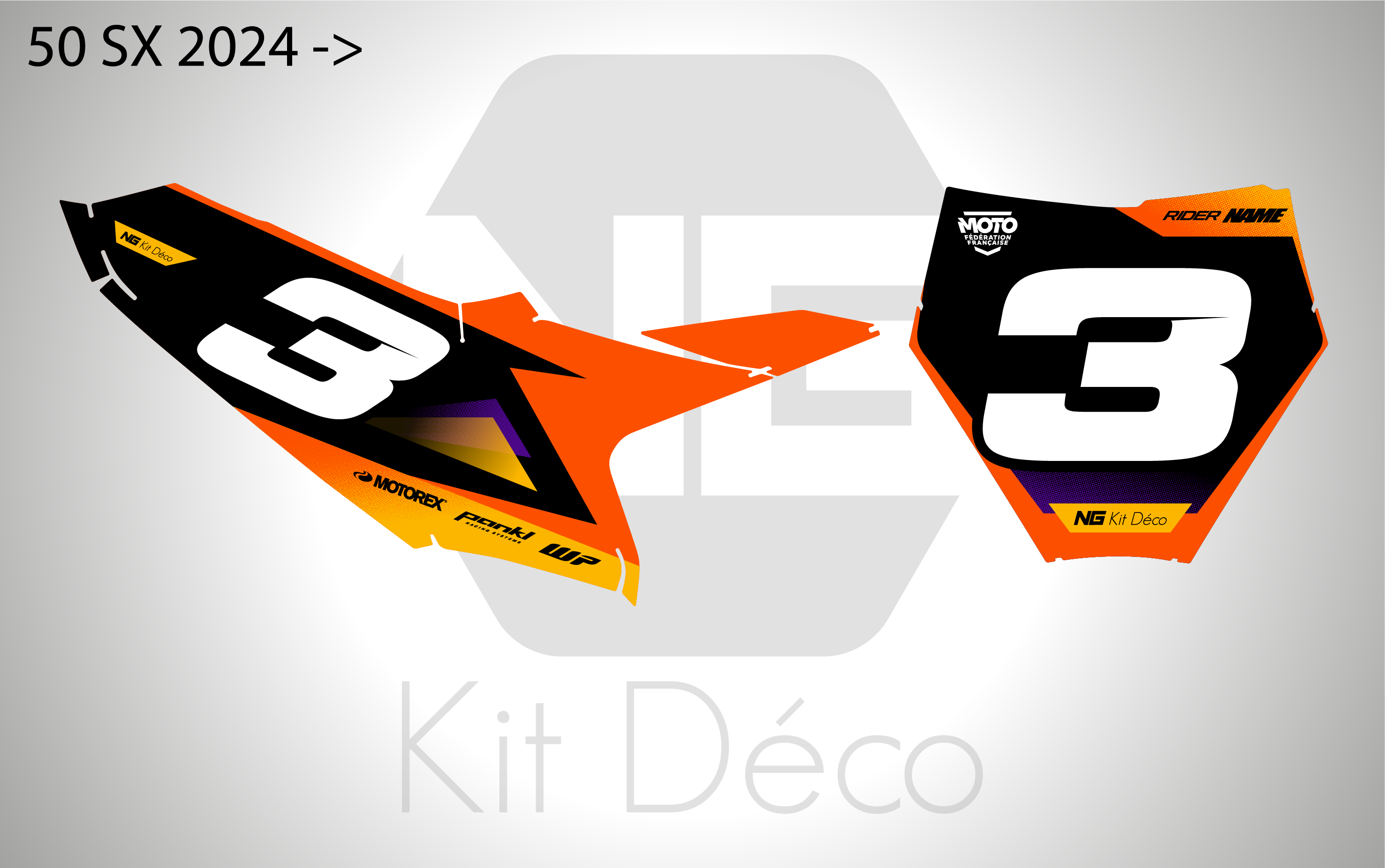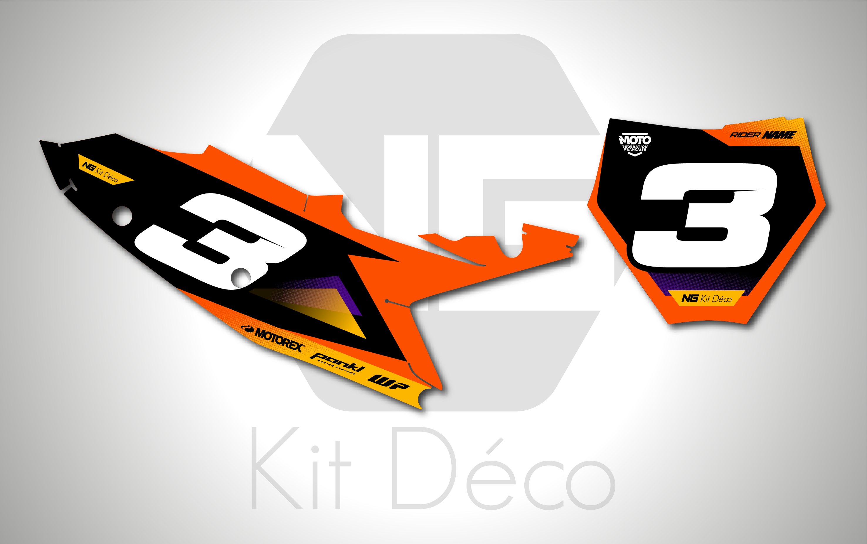 Votre kit déco plaques numéros pour motocross KTM SX / SXF comprend