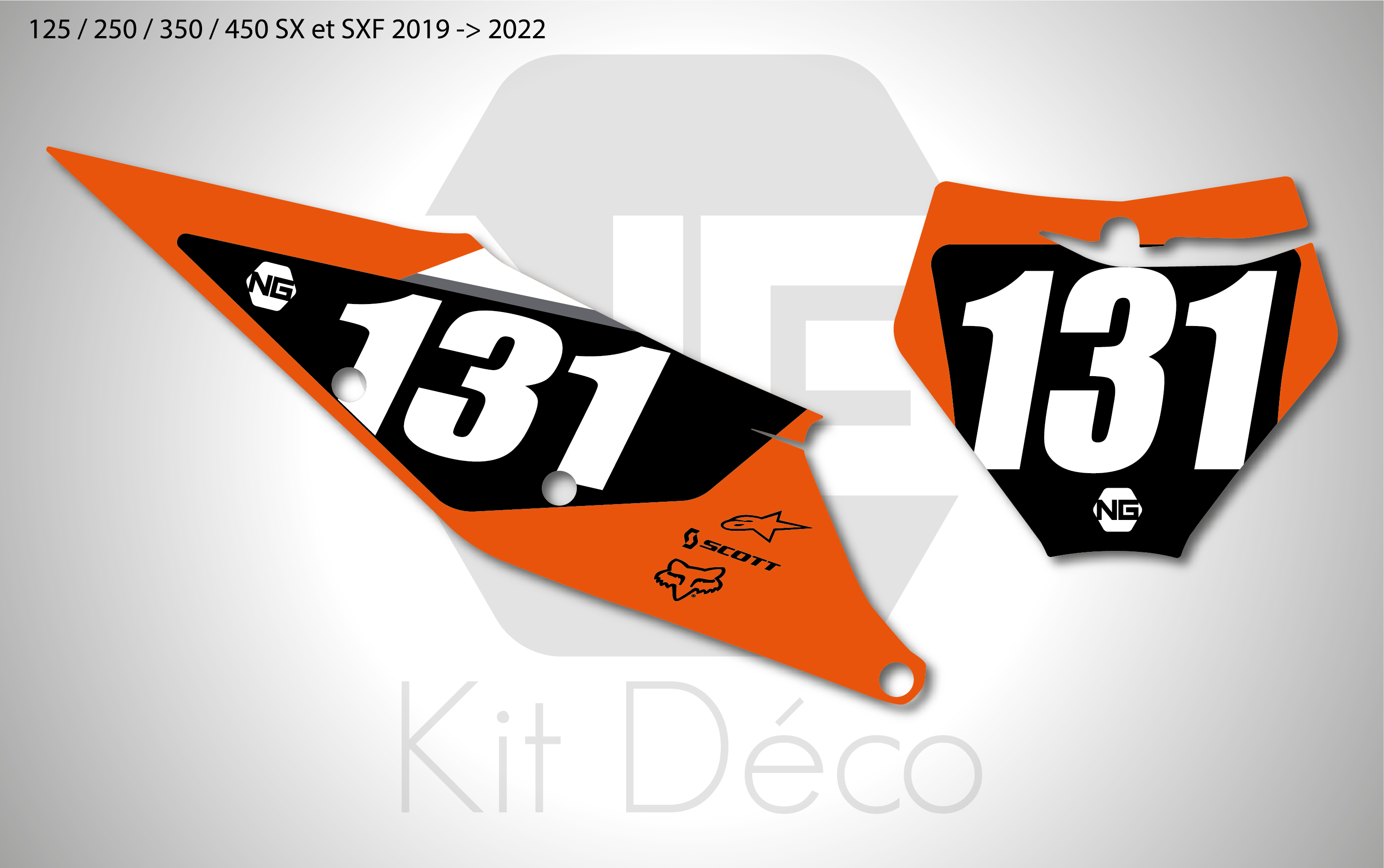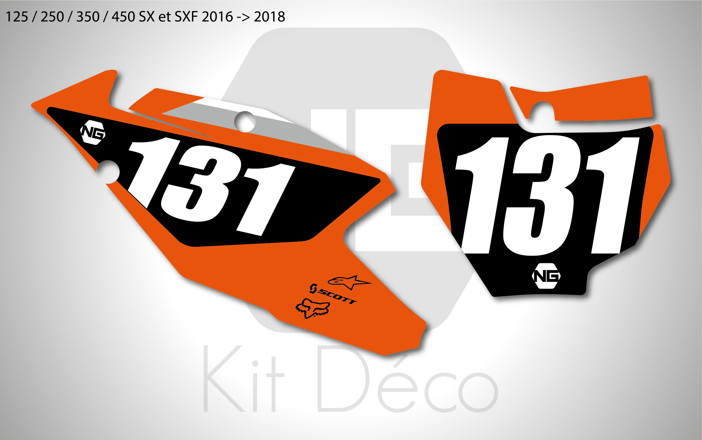 Votre kit déco plaques numéros pour motocross KTM SX / SXF comprend