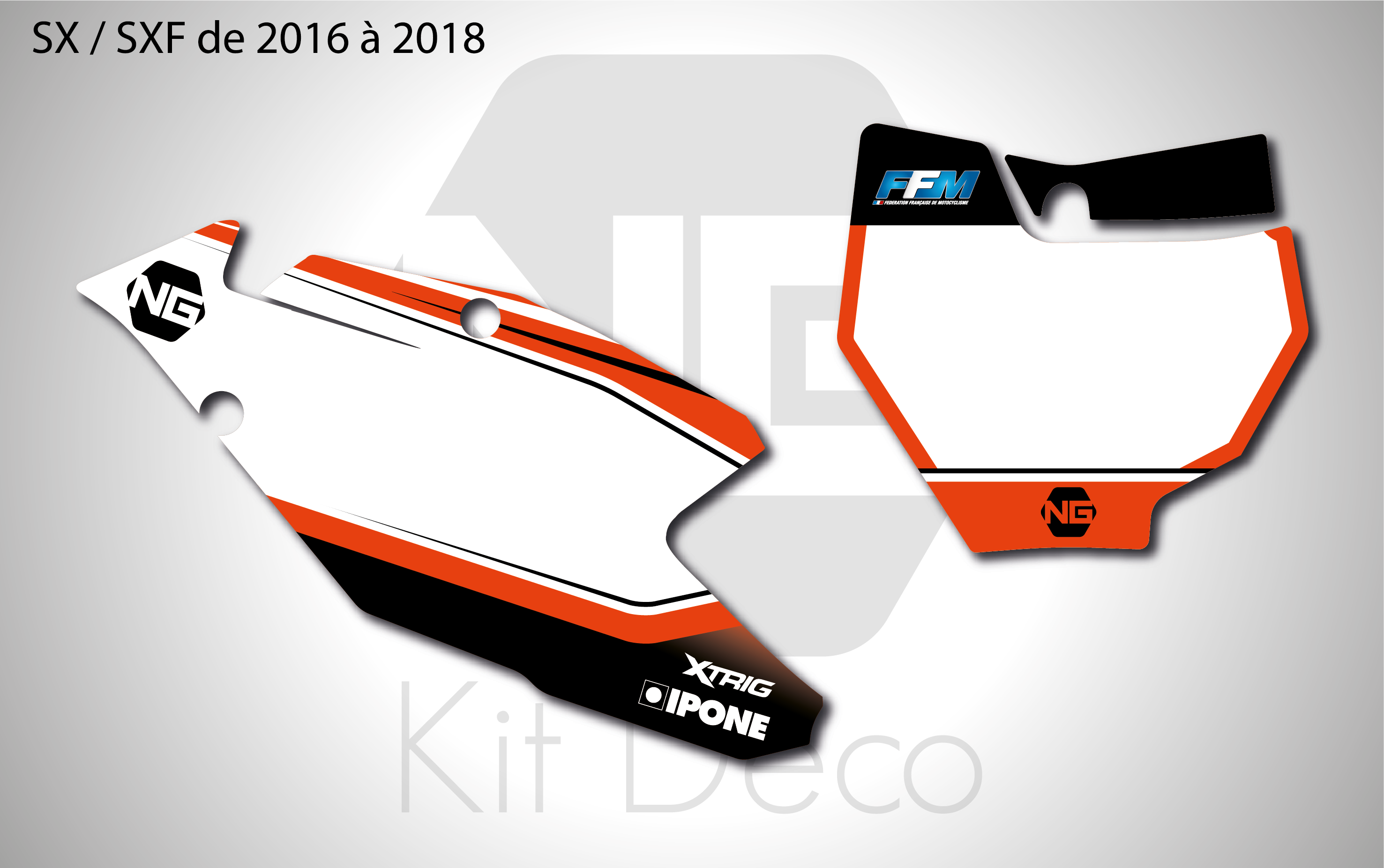 Votre kit déco plaques numéros pour motocross KTM SX / SXF comprend
