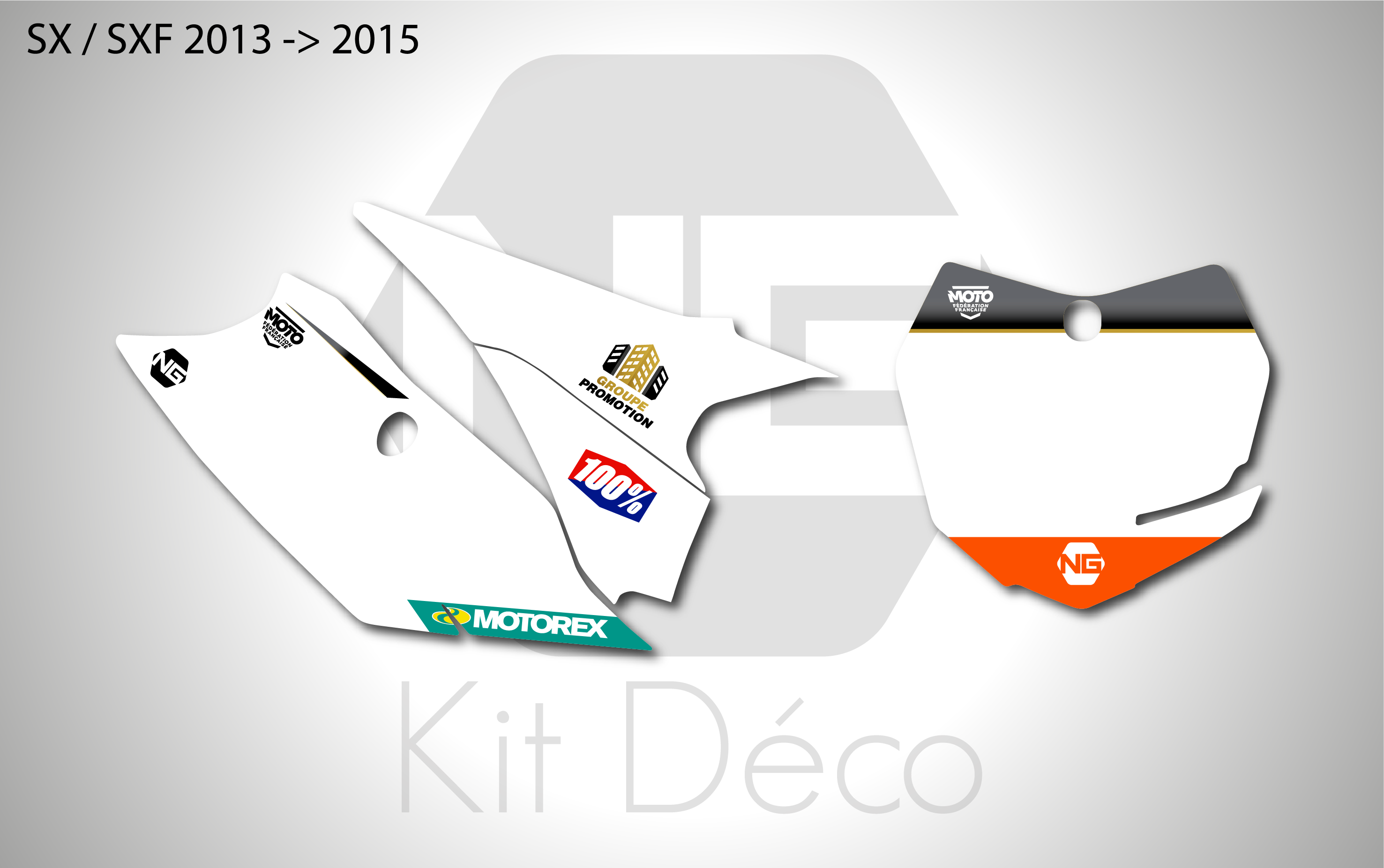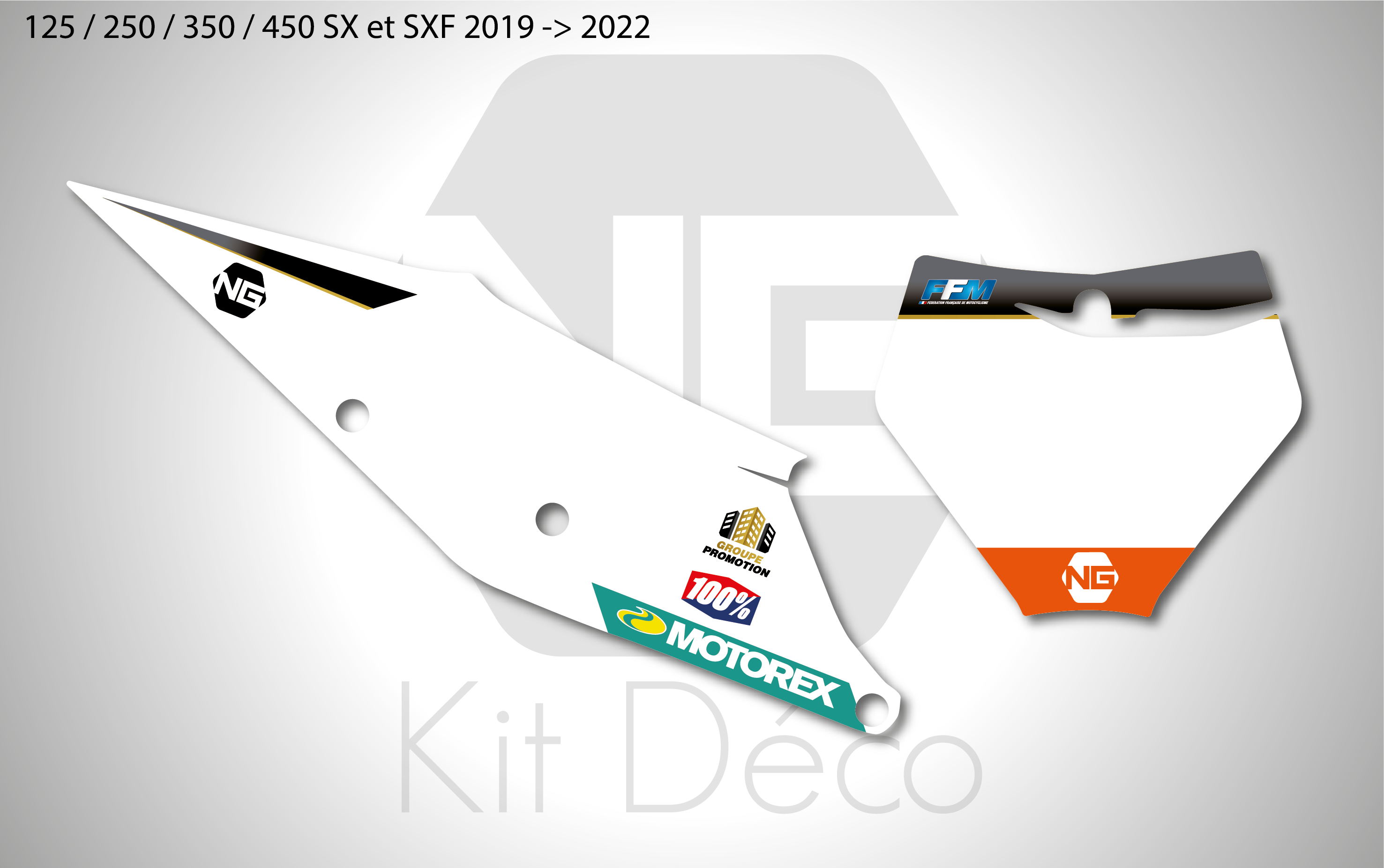 Votre kit déco plaques numéros pour motocross KTM SX / SXF comprend