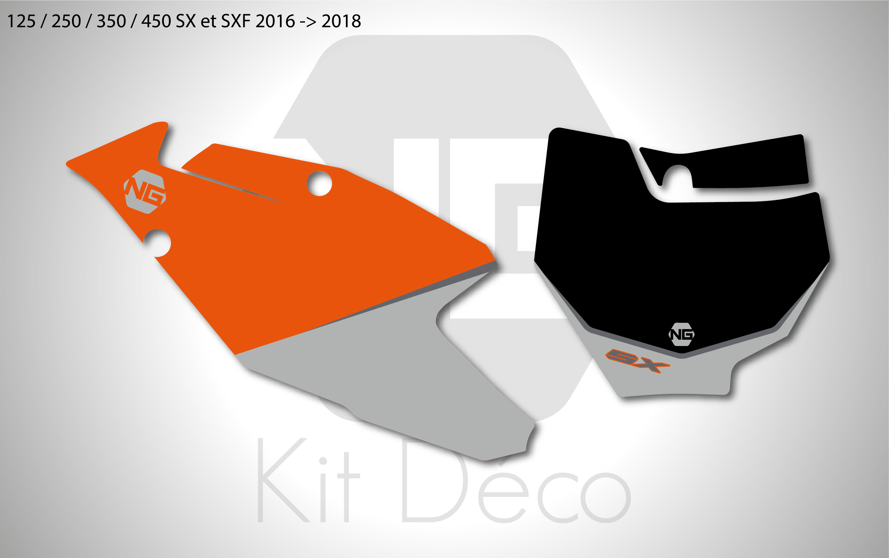 Votre kit déco plaques numéros pour motocross KTM SX / SXF comprend