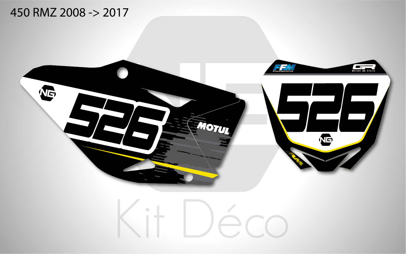 Votre kit déco fond de plaque numéro pour motocross Suzuki RM / RMZ comprend
