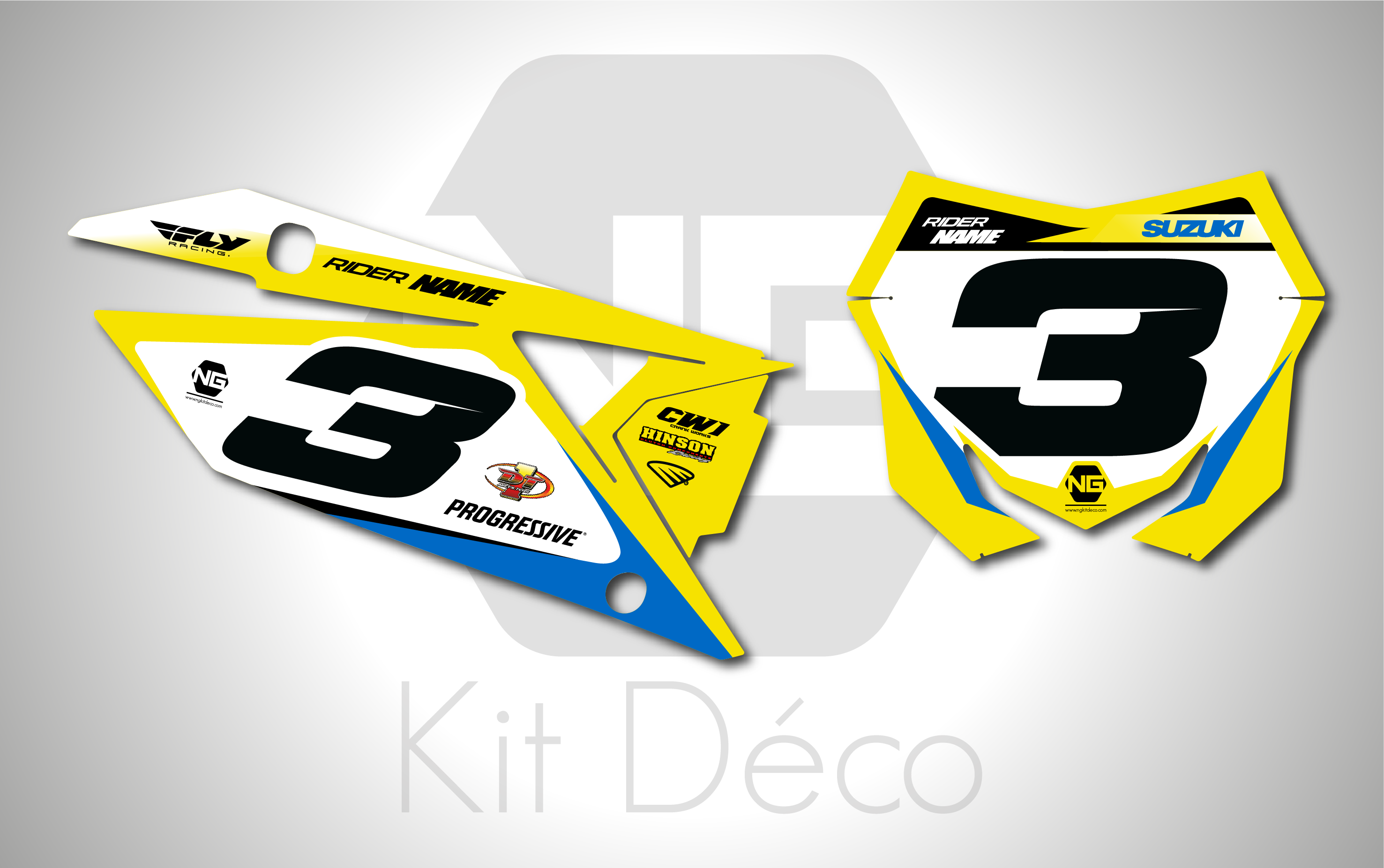 Votre kit déco fond de plaque numéro pour motocross Suzuki RM / RMZ comprend