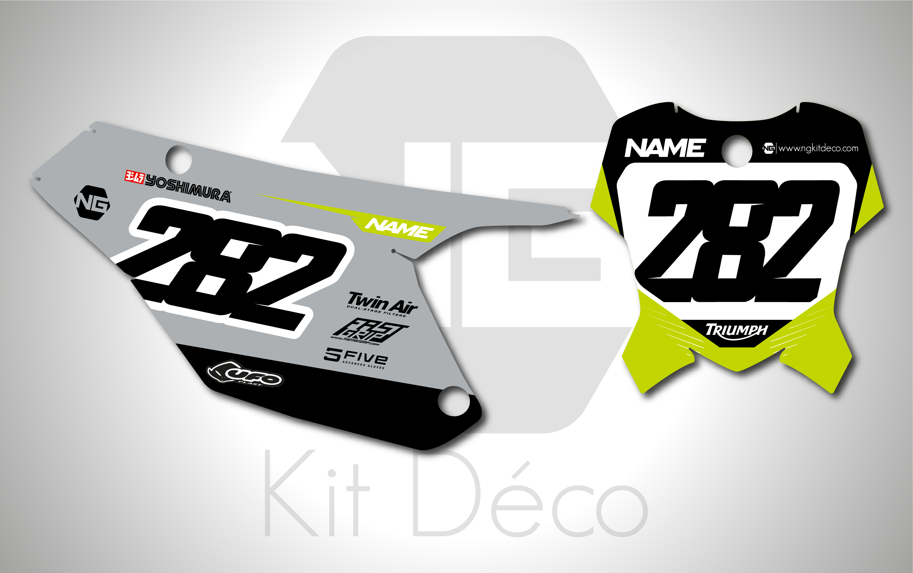 Votre kit déco fond de plaque numéro pour motocross Triumph comprend :