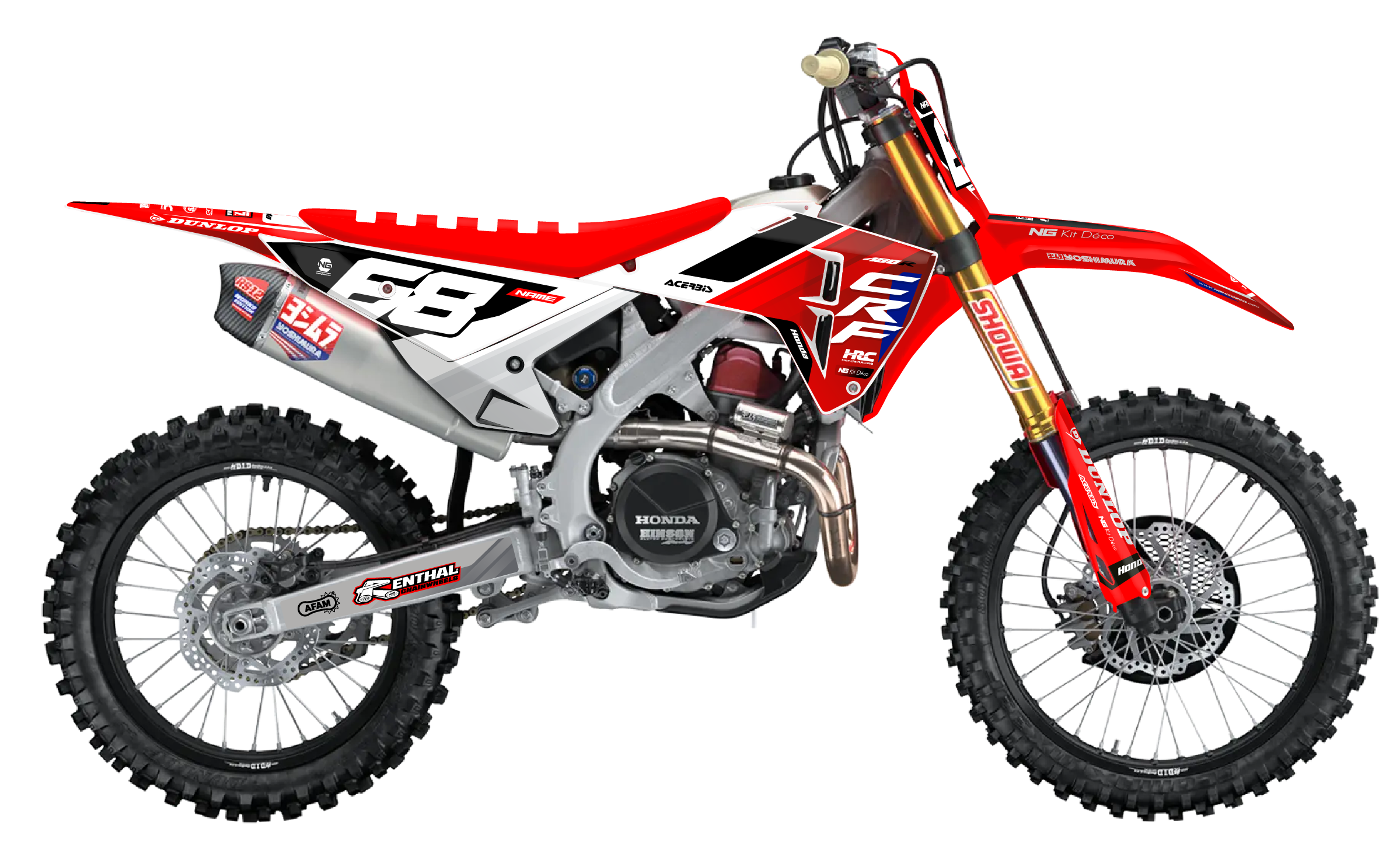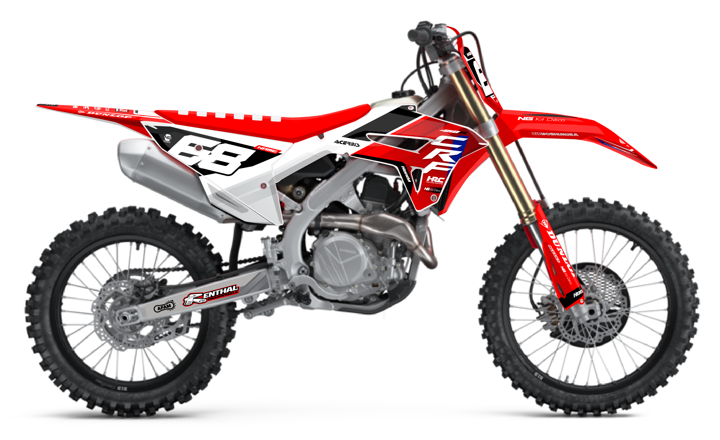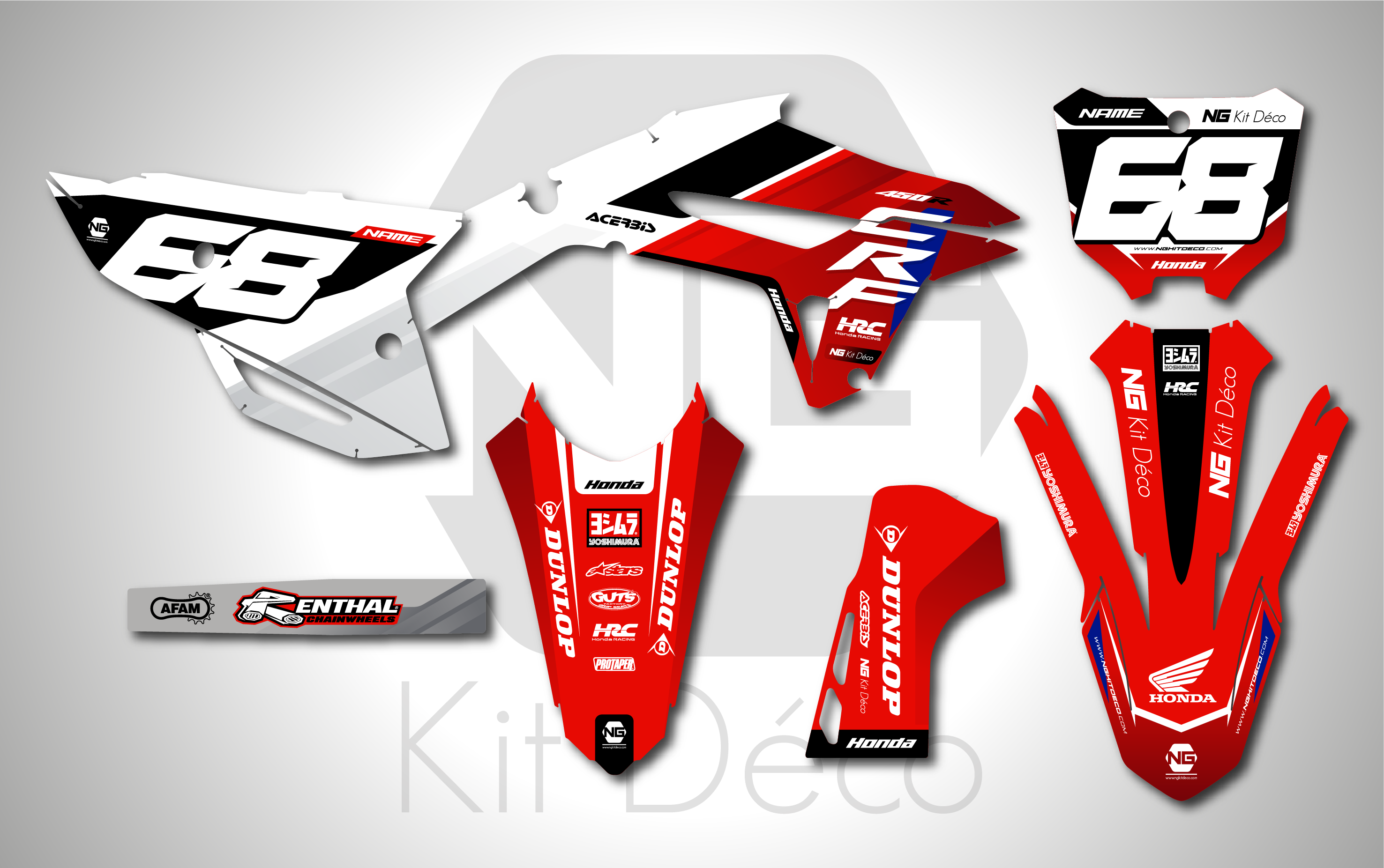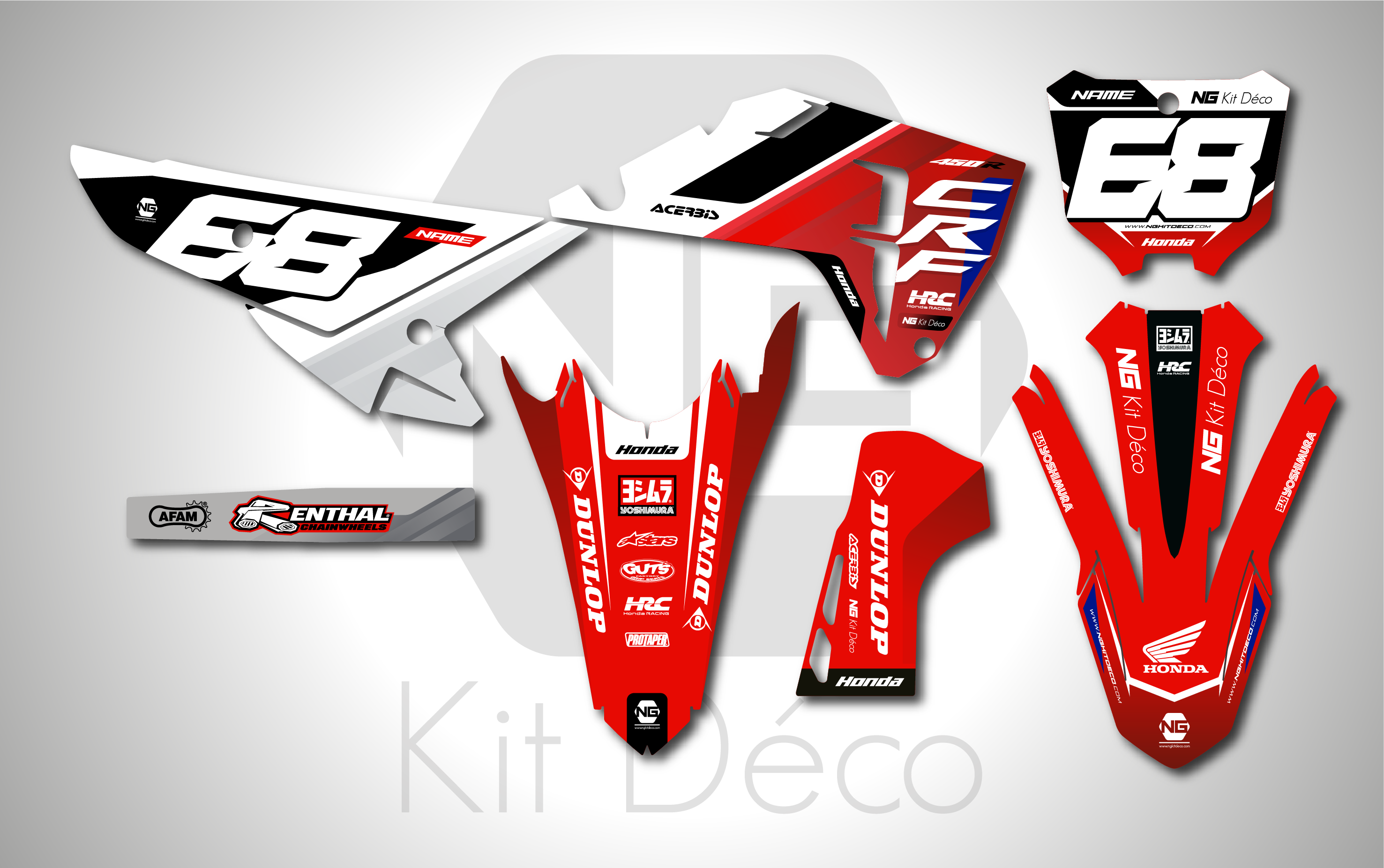 Votre kit déco complet pour motocross Honda QR / CR / CRF comprend