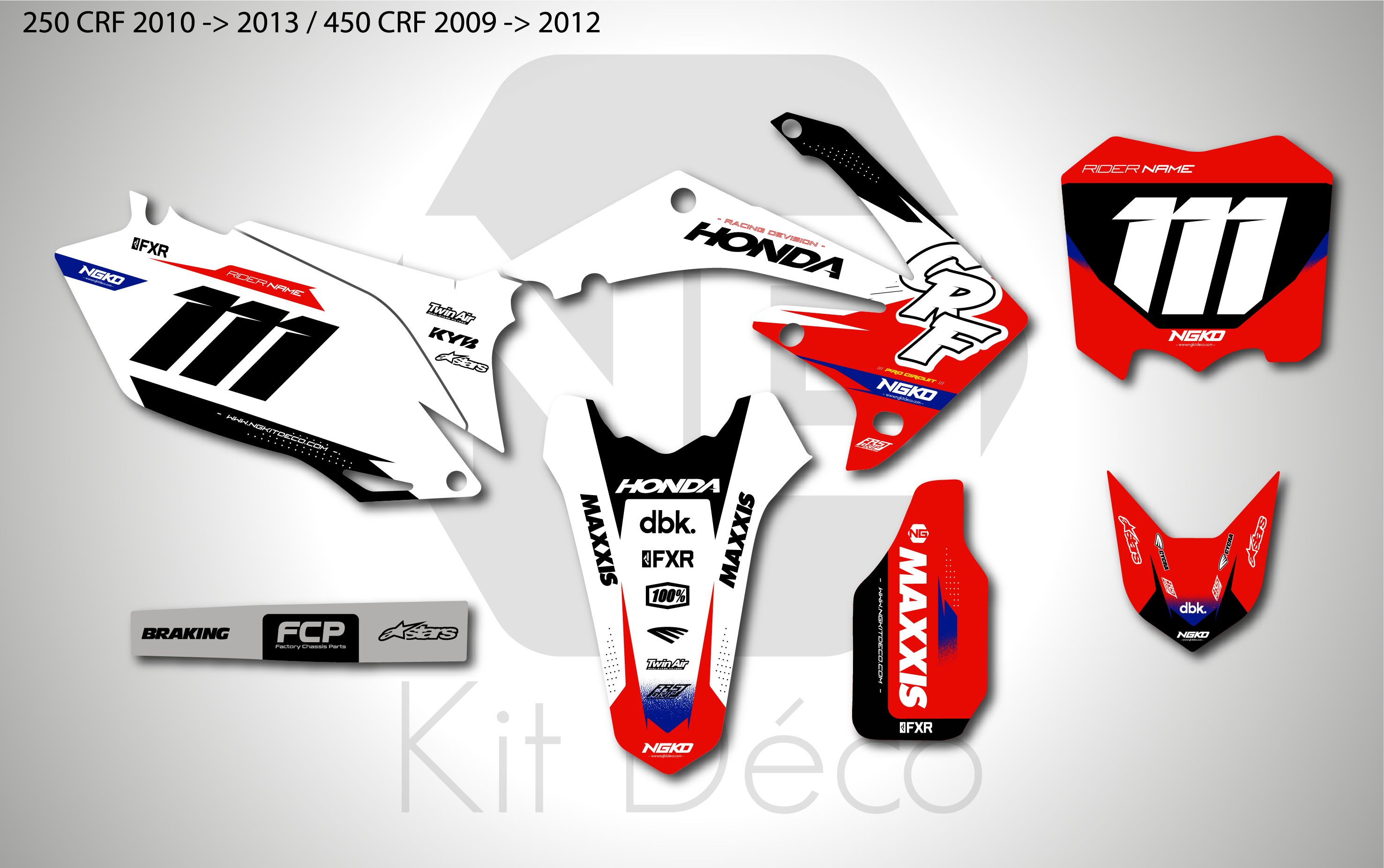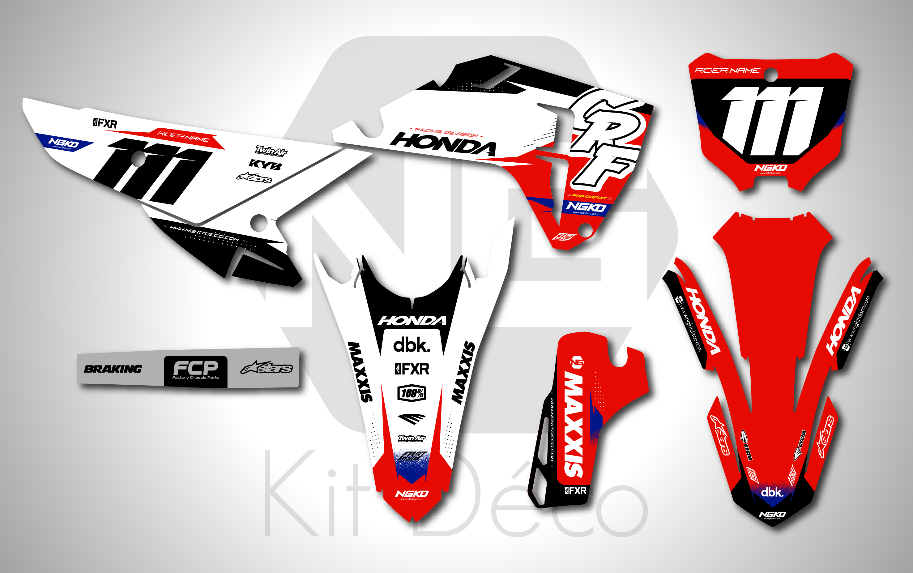 Votre kit déco complet pour motocross Honda QR / CR / CRF comprend