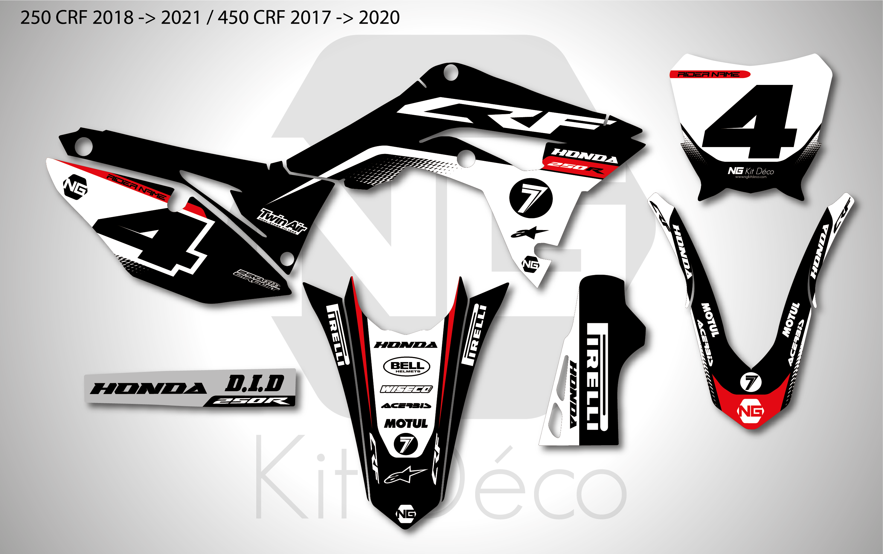 Votre kit déco complet pour motocross Honda QR / CR / CRF comprend