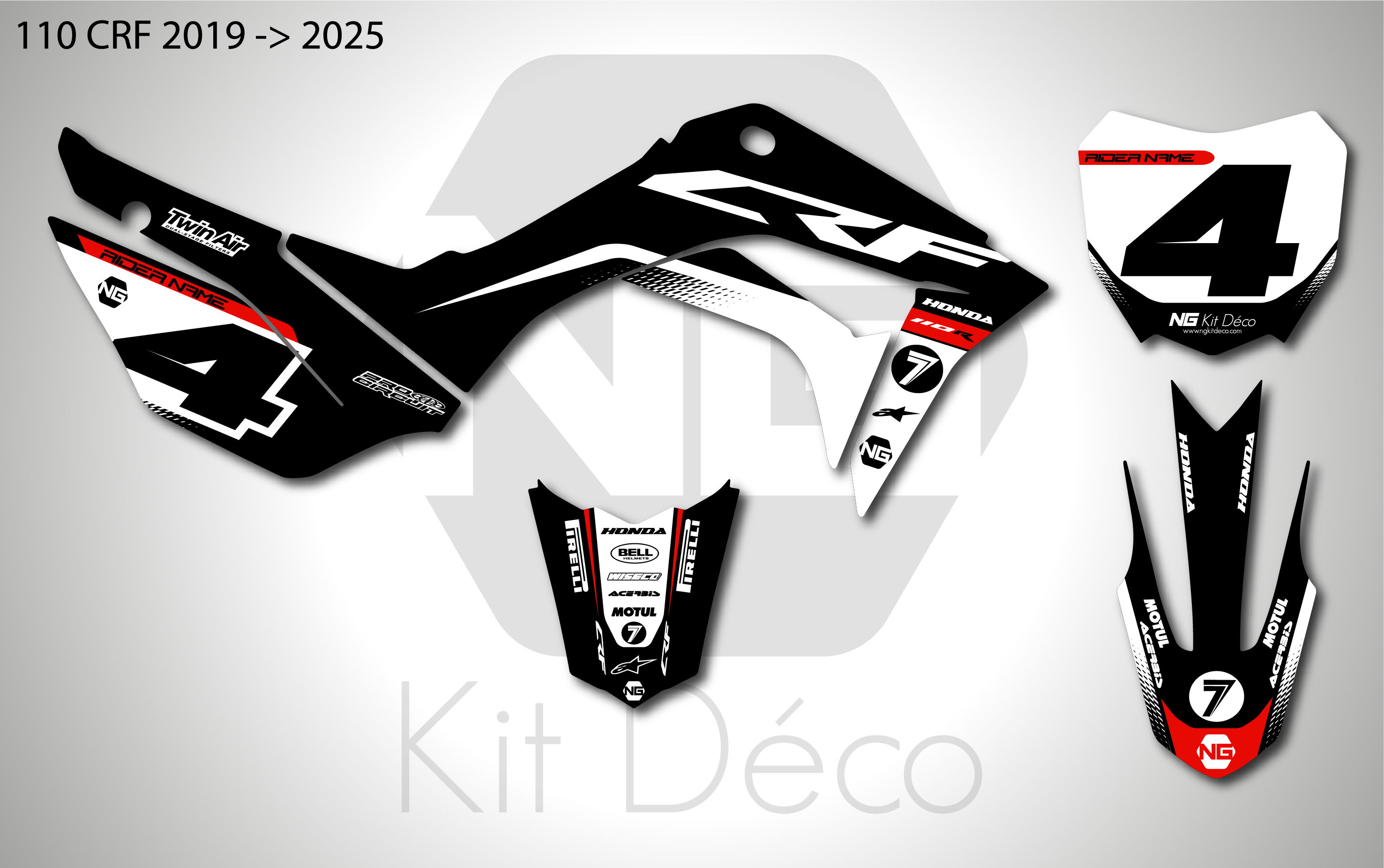 Les images de kit déco sont à titre d’exemple et peuvent varier selon l’année et le modèle de votre motocross.