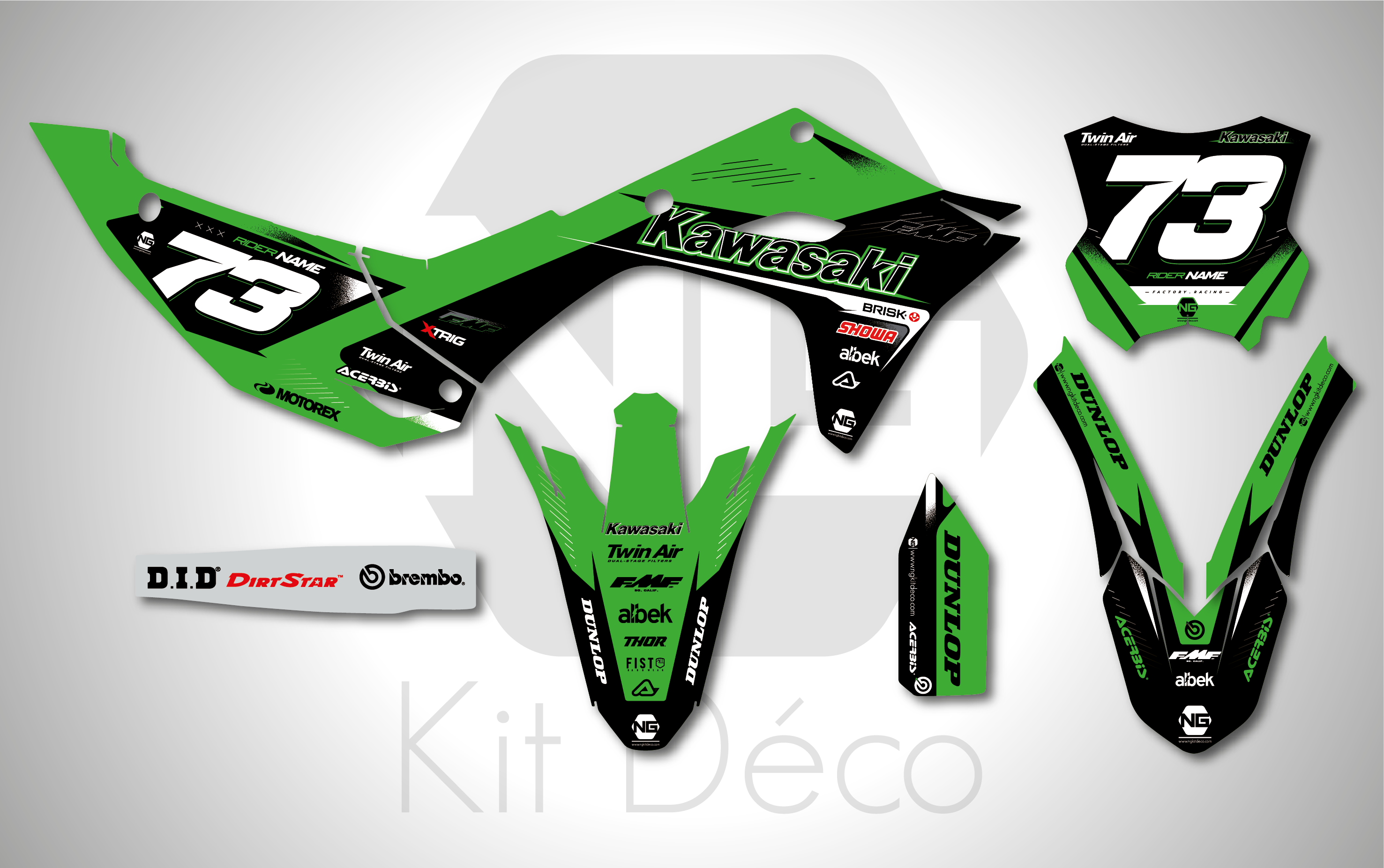 Votre kit déco complet pour motocross Kawasaki KX / KLX / KXF comprend