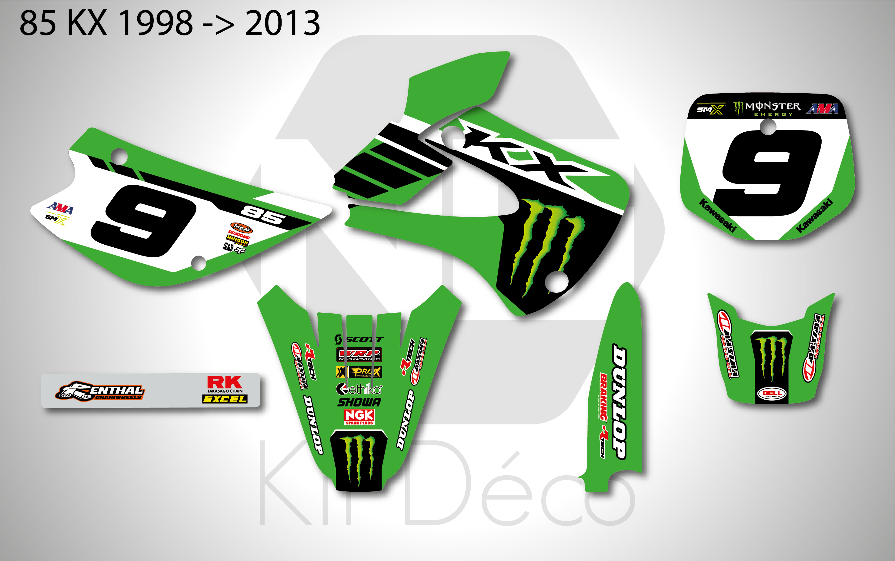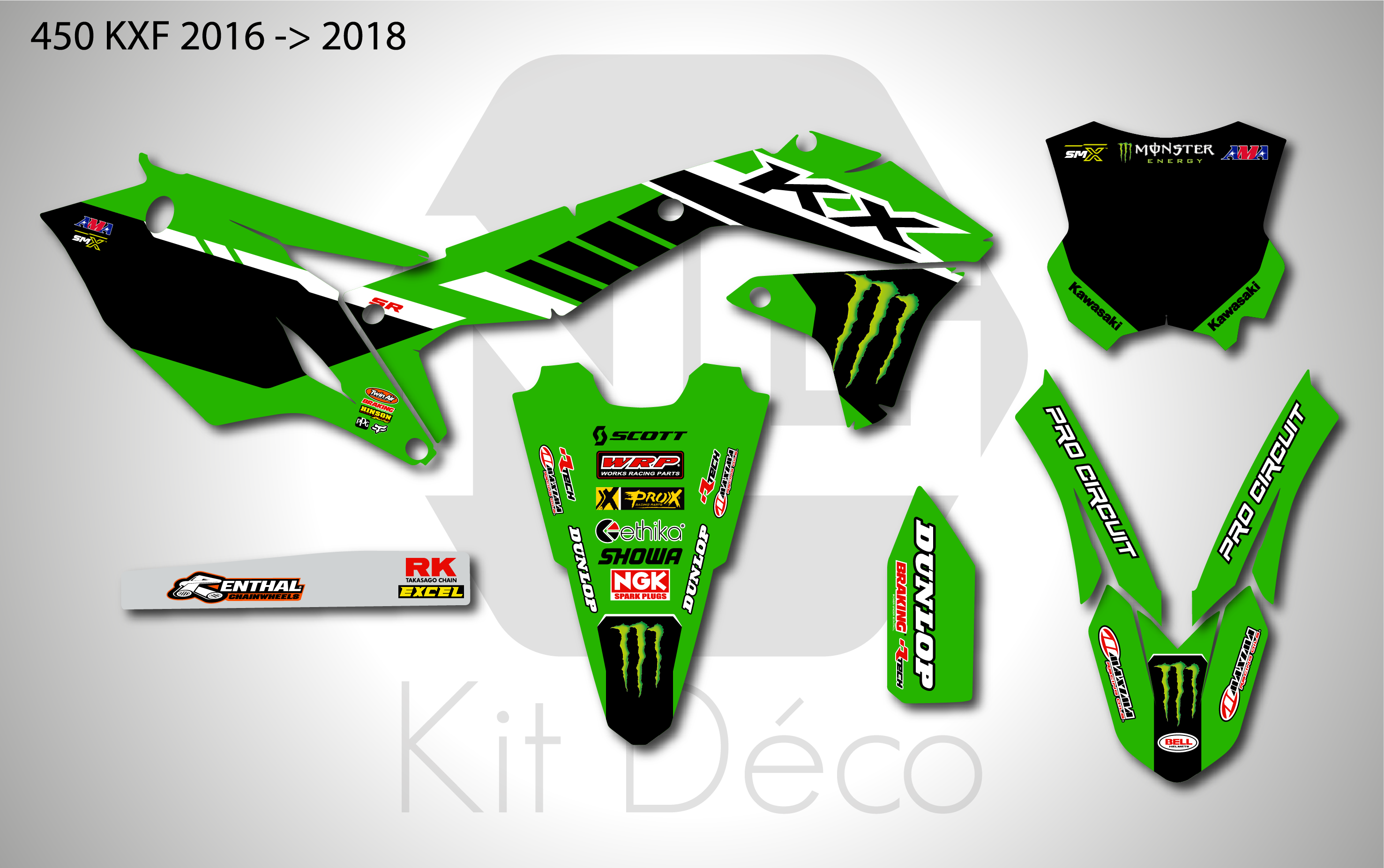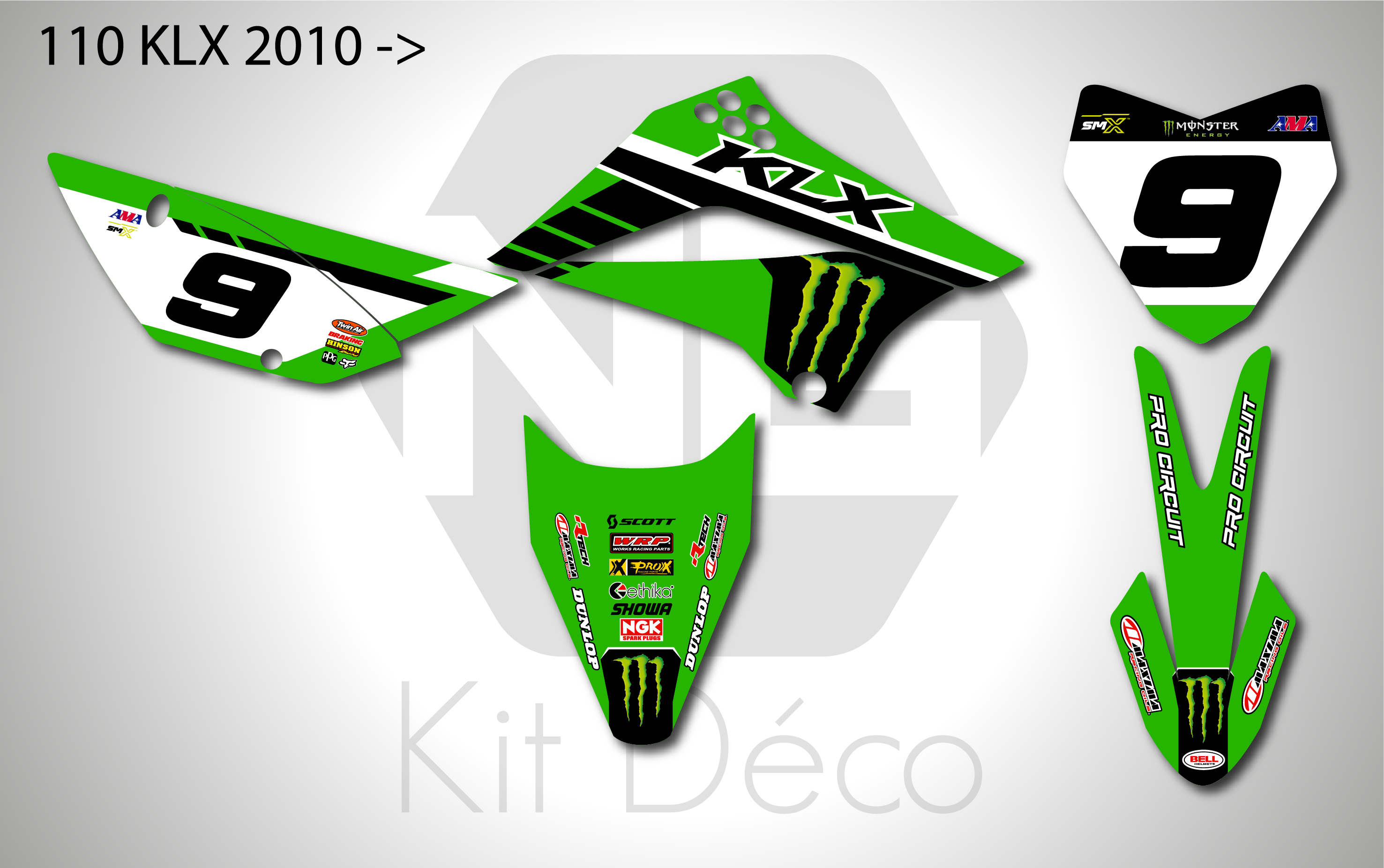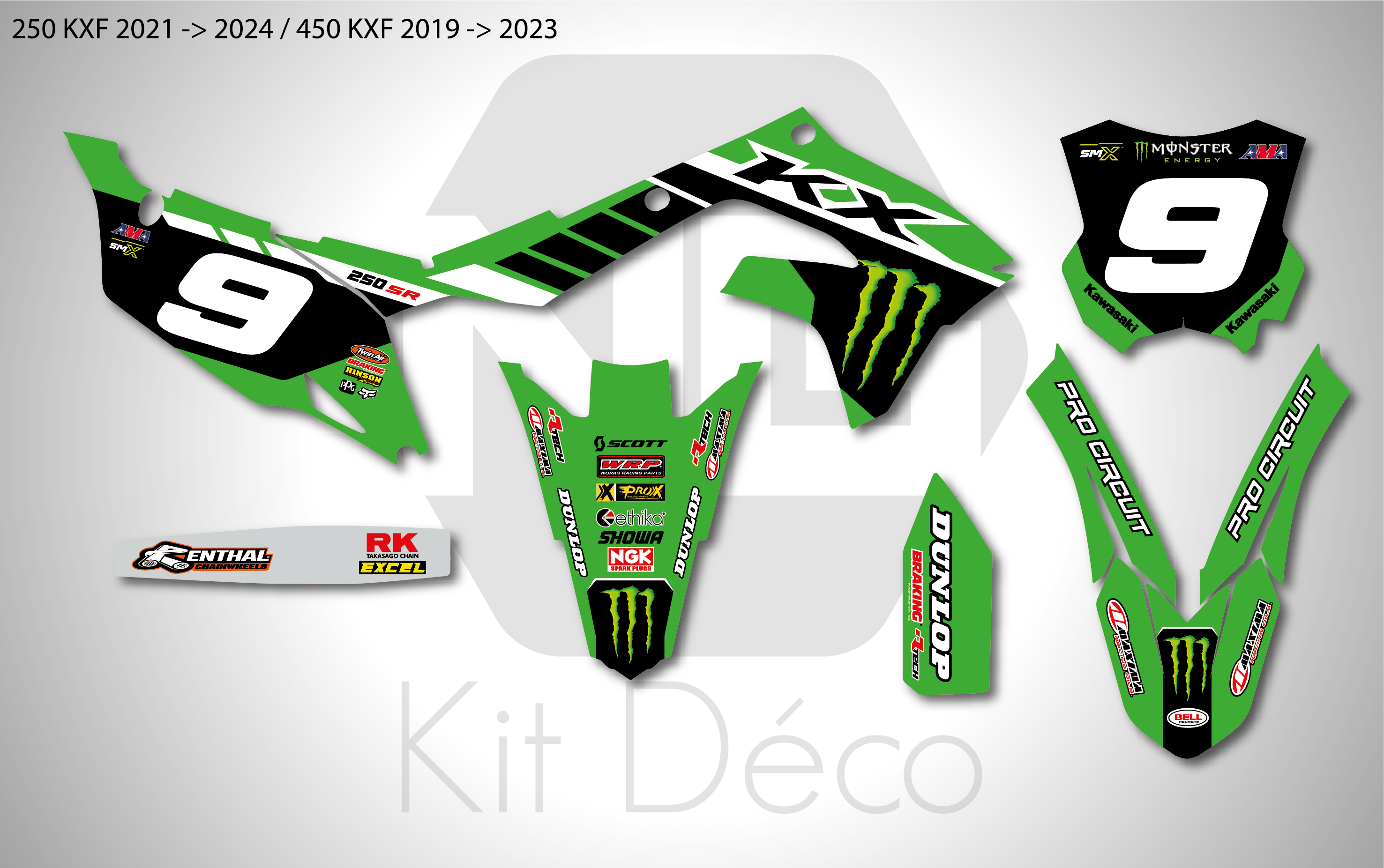 Votre kit déco complet pour motocross Kawasaki KX / KLX / KXF comprend