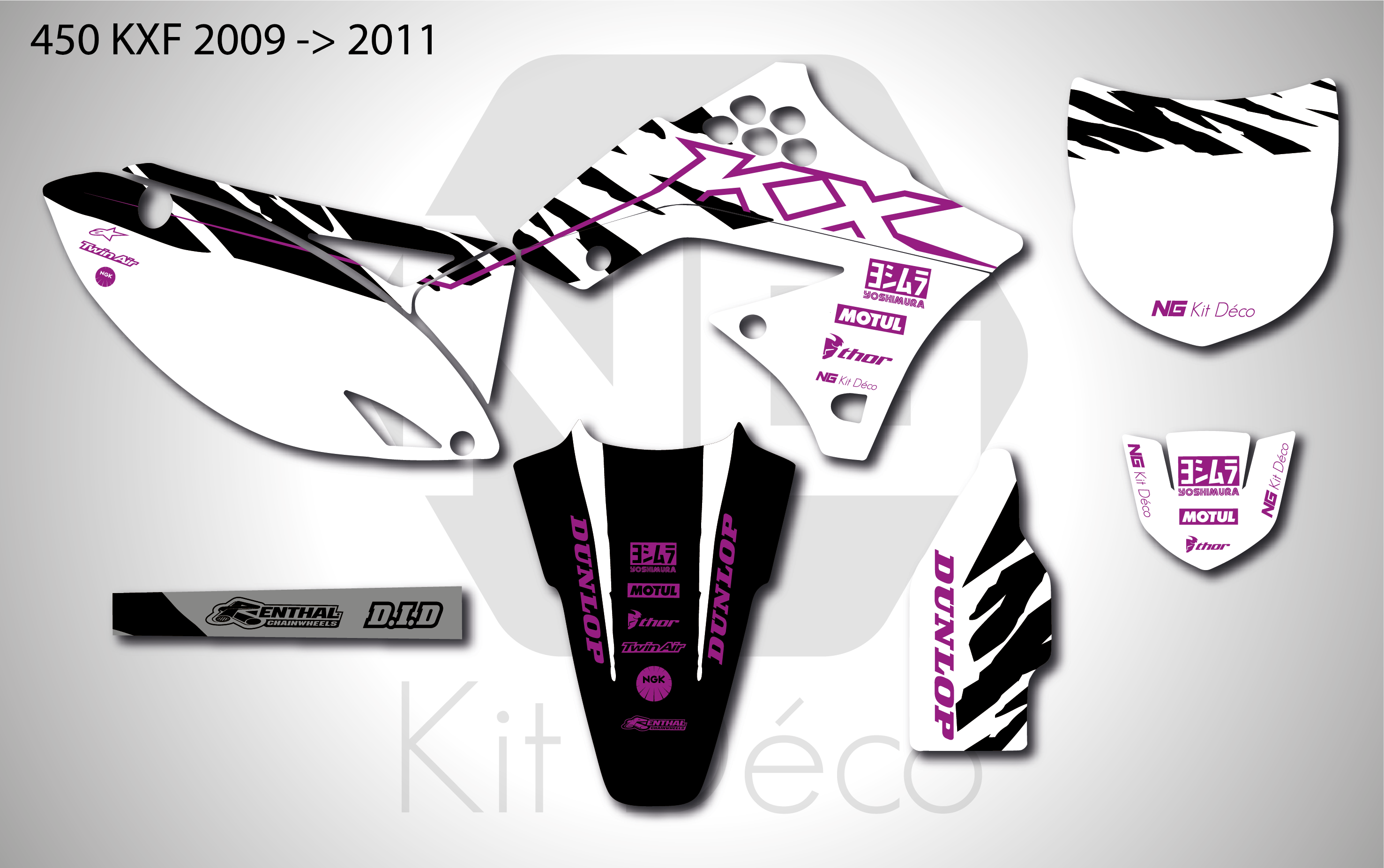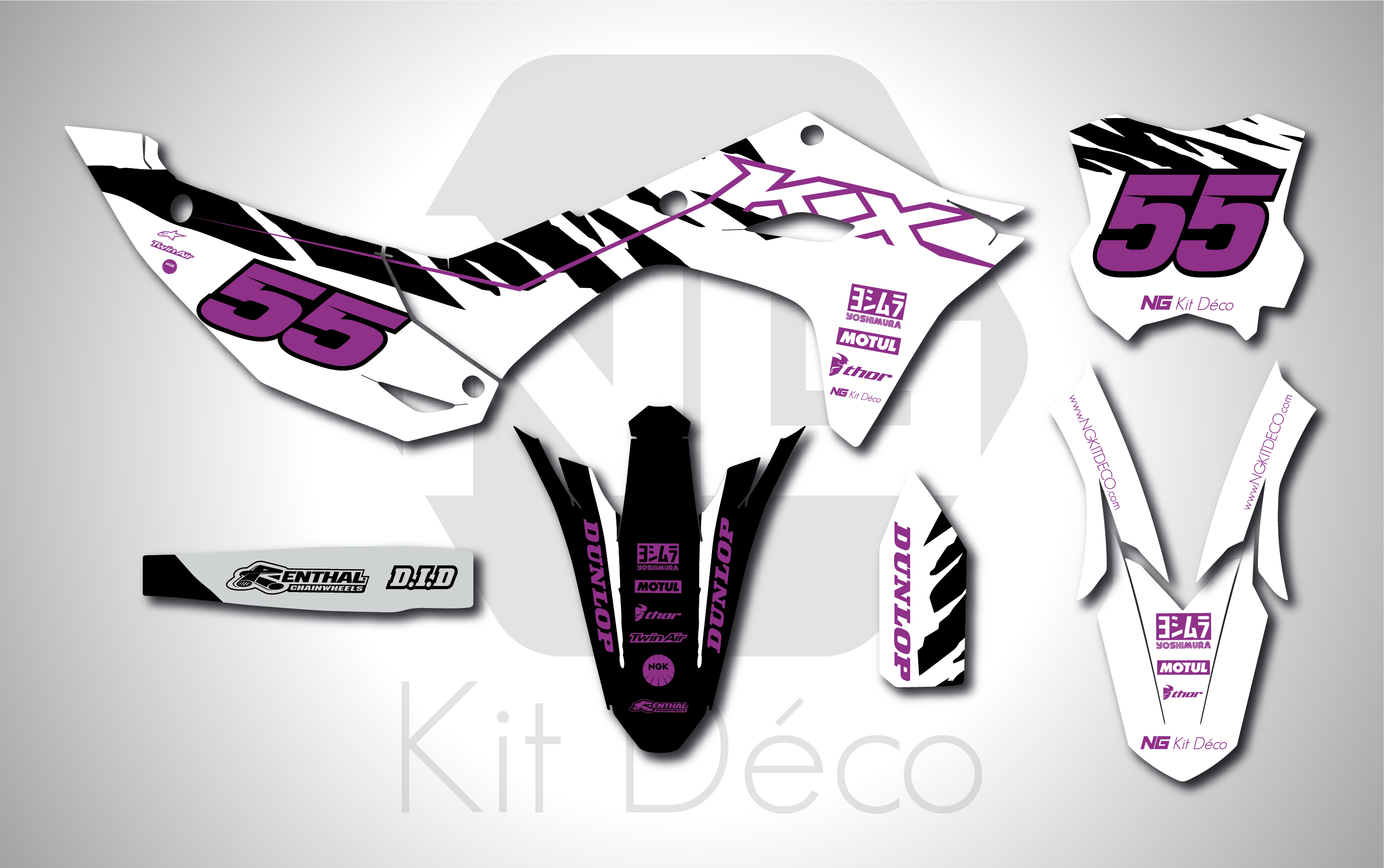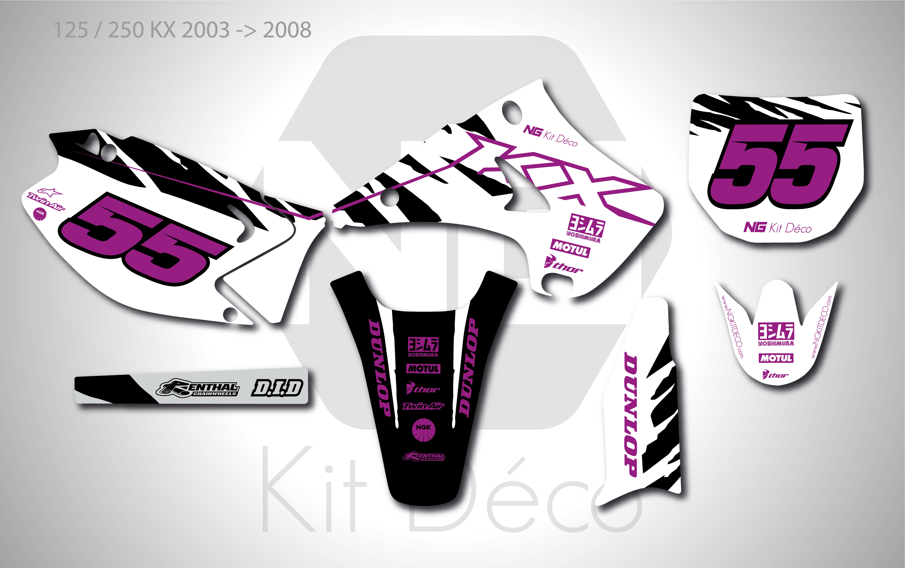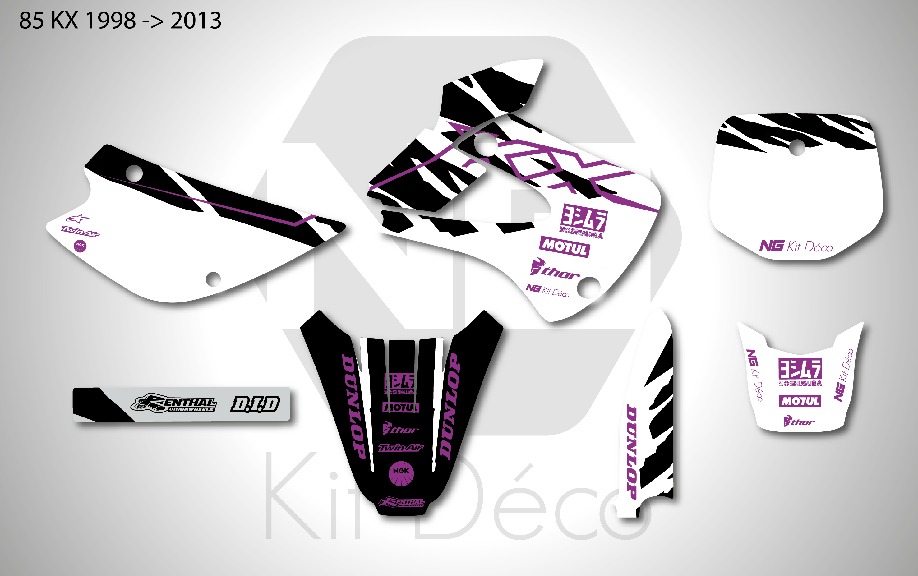 Votre kit déco complet pour motocross Kawasaki KX / KLX / KXF comprend