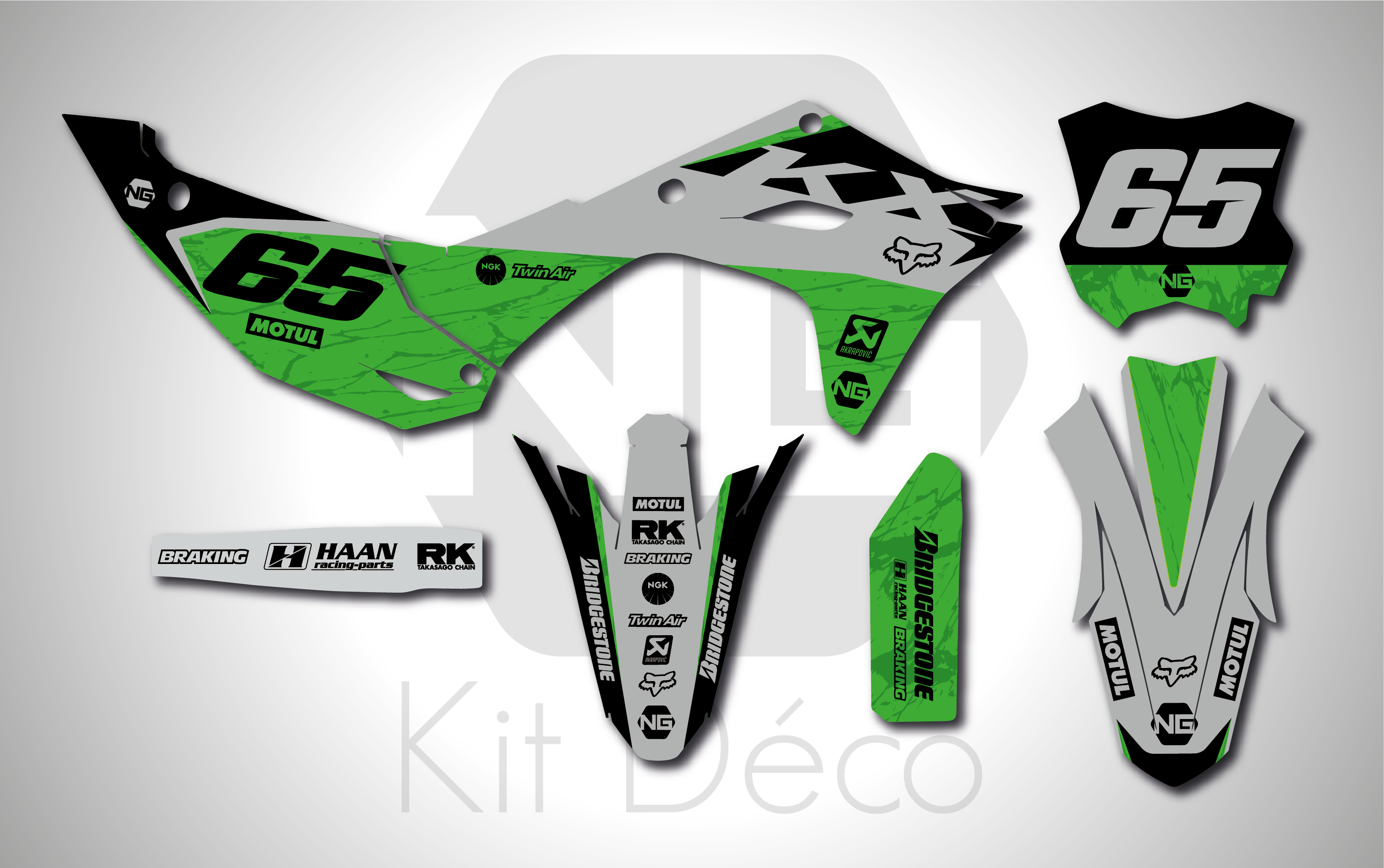 Votre kit déco complet pour motocross Kawasaki KX / KLX / KXF comprend
