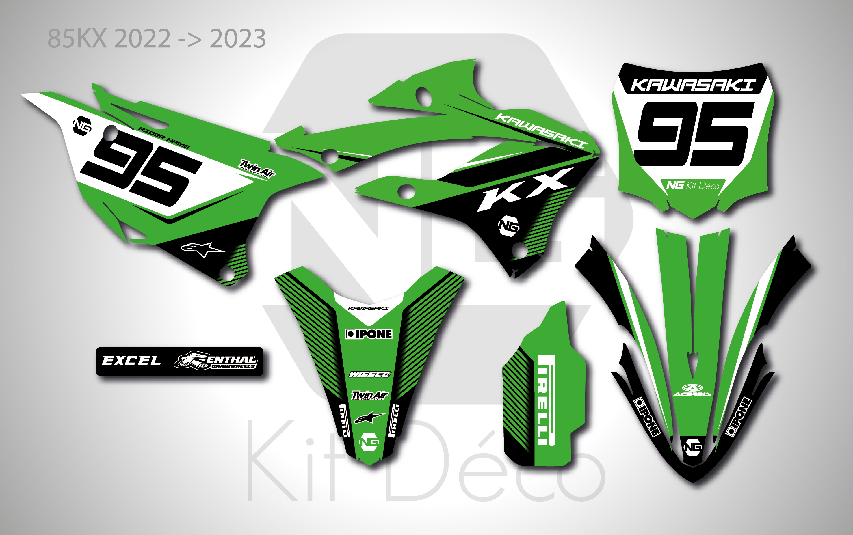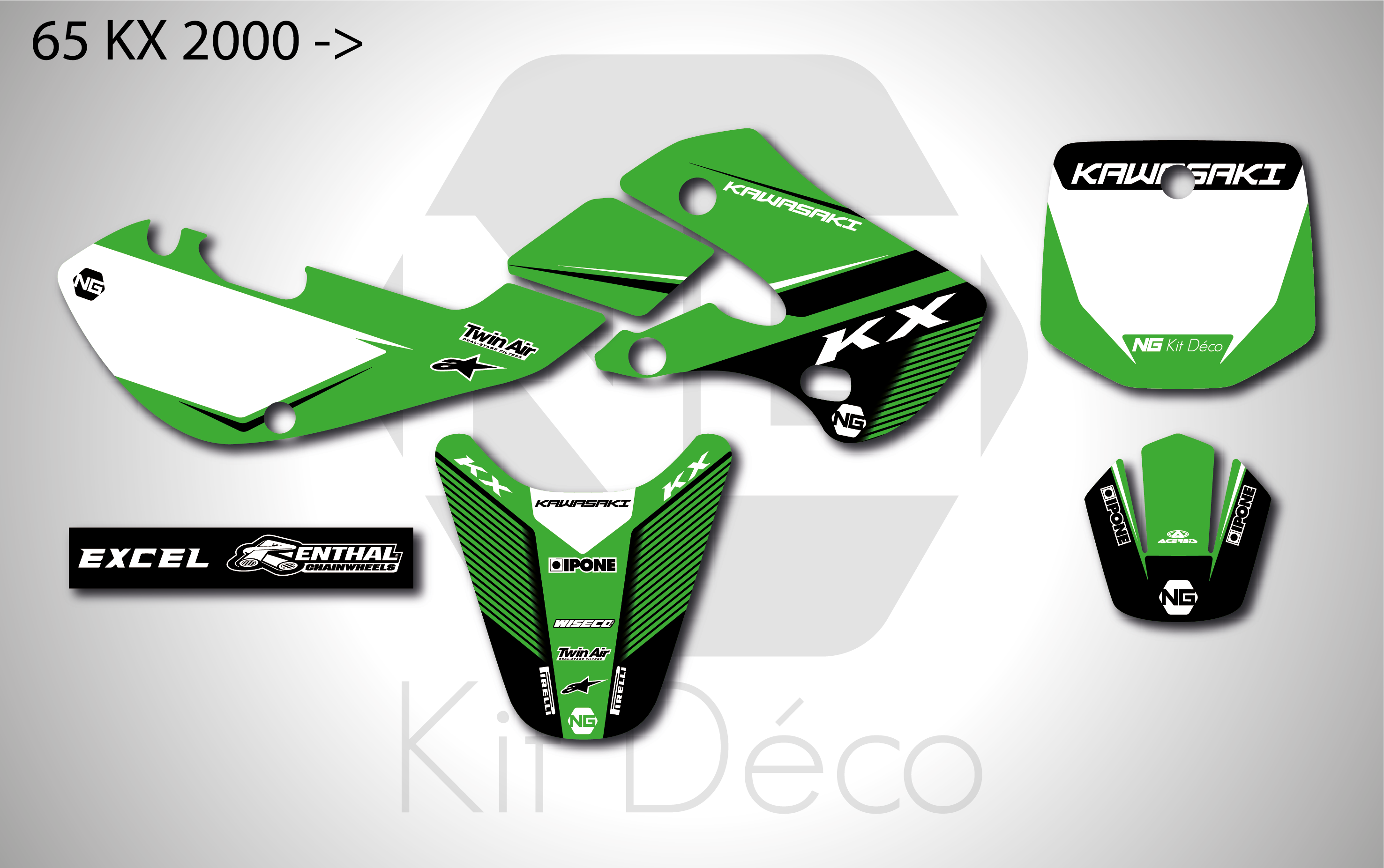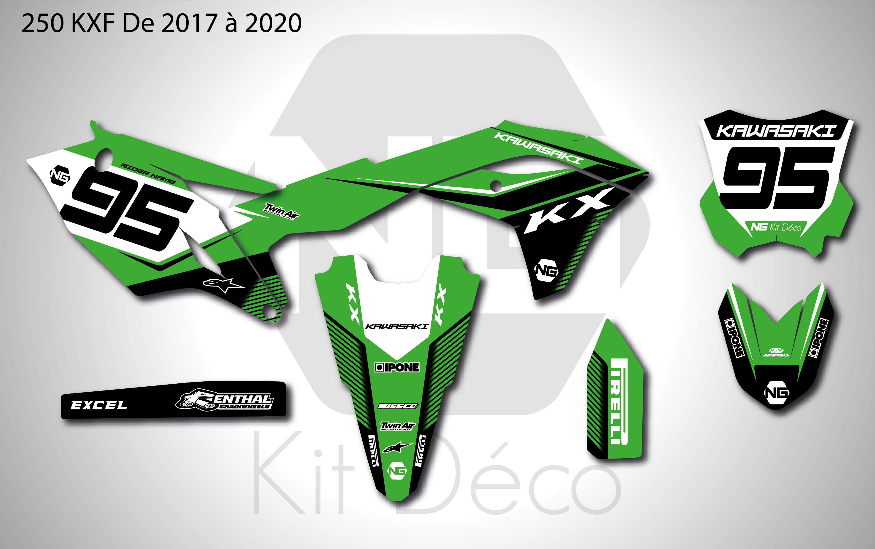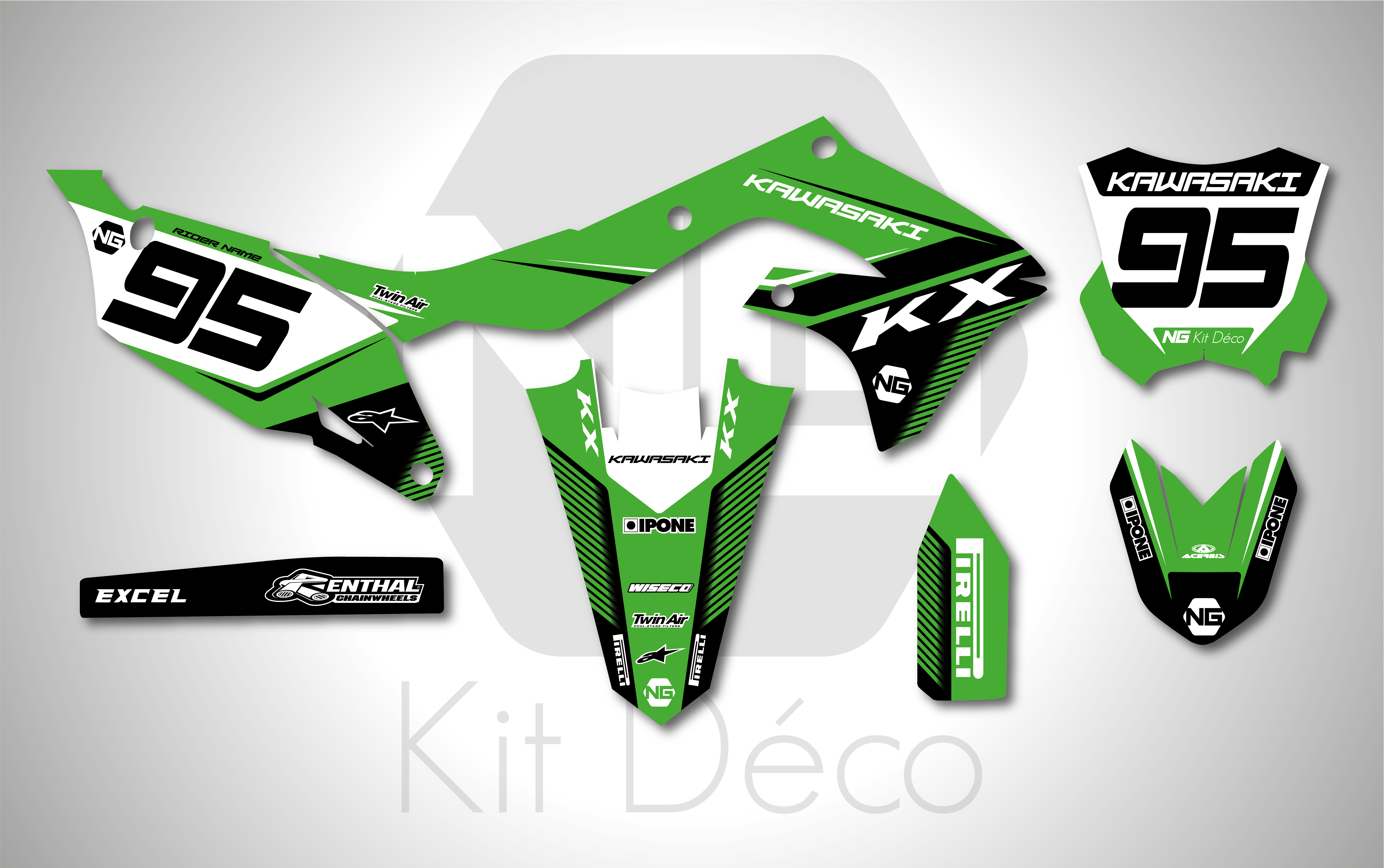 Votre kit déco complet pour motocross Kawasaki KX / KLX / KXF comprend