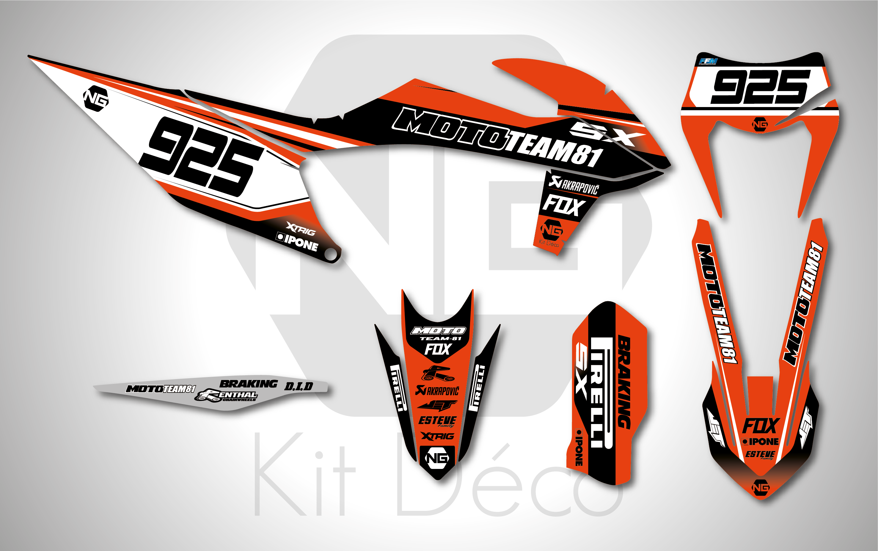 Si votre moto n’est pas dans les modèles disponibles de kit déco de moto d’enduro, n’hésitez pas à nous contacter pour faire votre kit déco ktm.