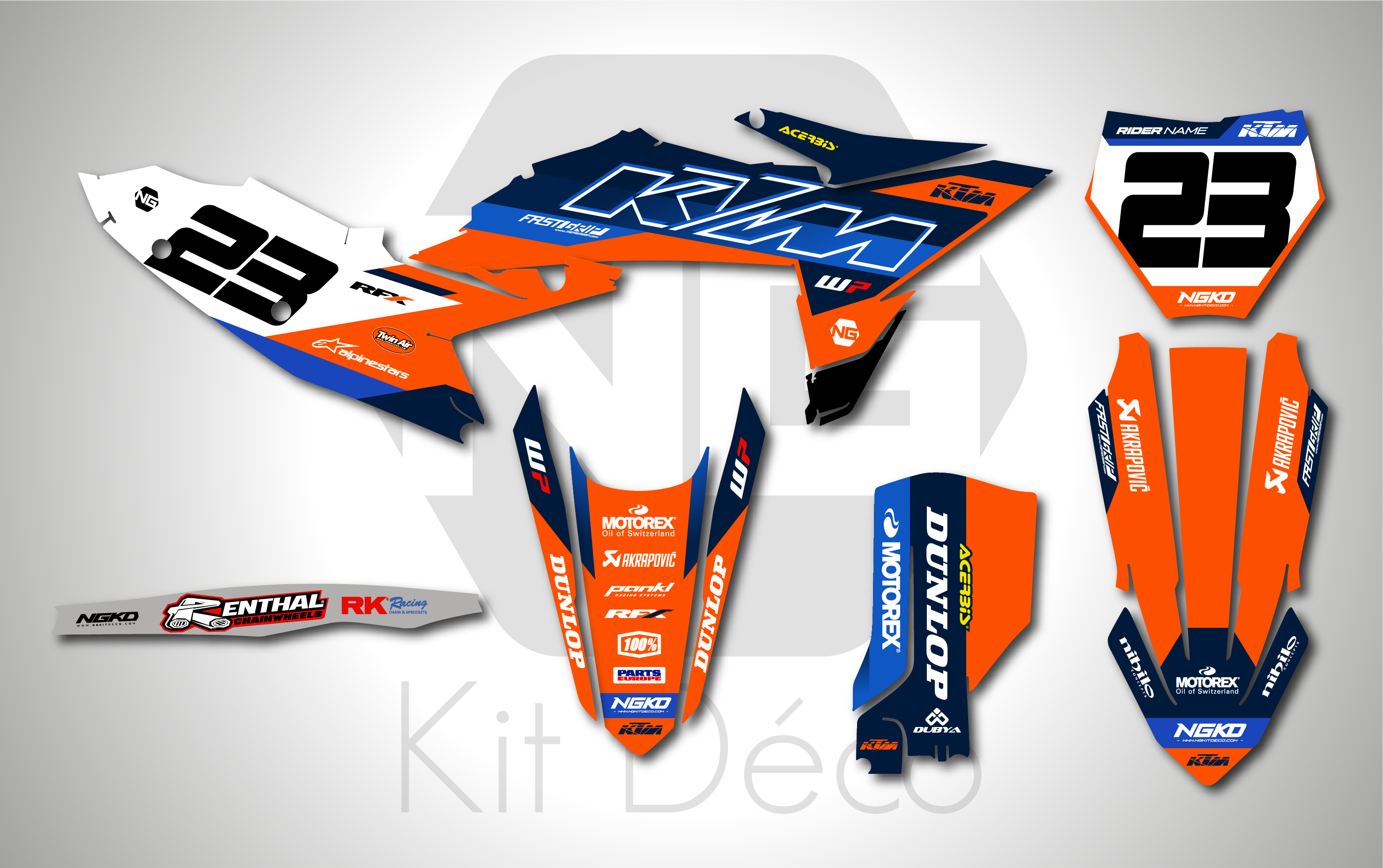 Votre kit déco complet pour motocross KTM SX / SXF comprend