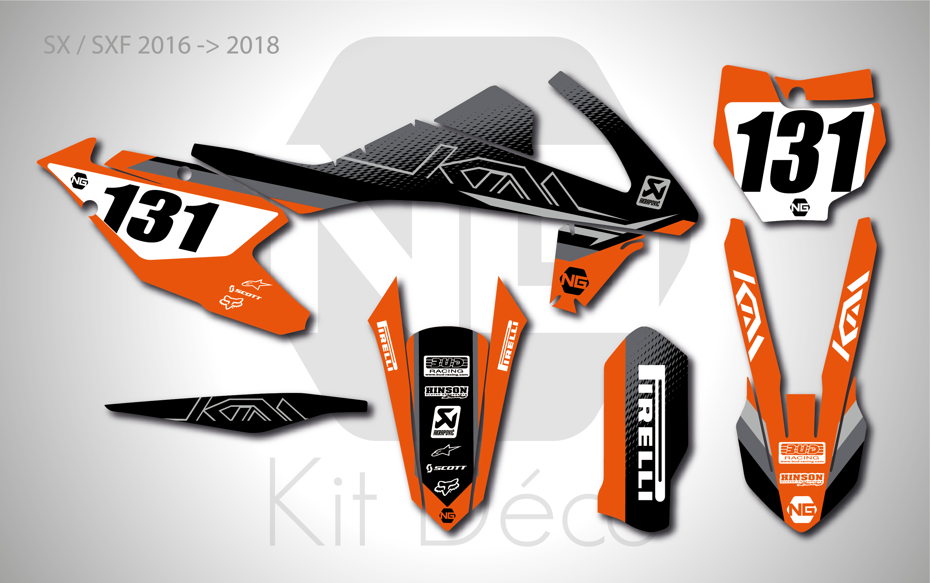 Votre kit déco complet pour motocross KTM SX / SXF comprend