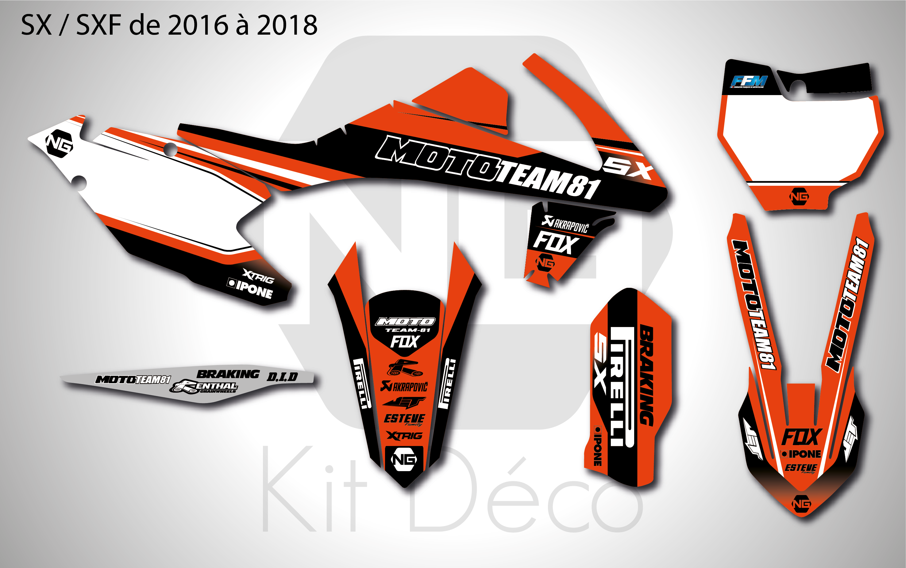 Votre kit déco complet pour motocross KTM SX / SXF comprend