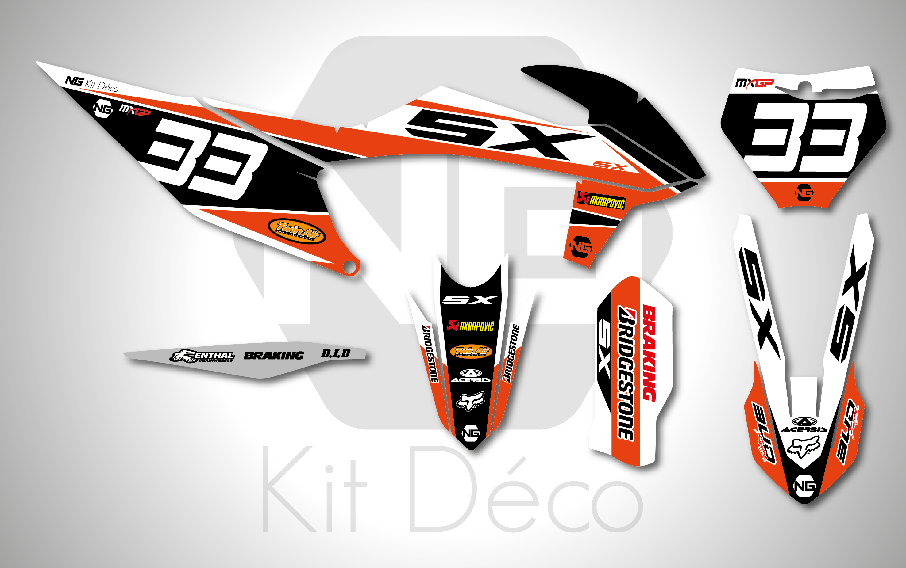Votre kit déco complet pour motocross KTM SX / SXF comprend