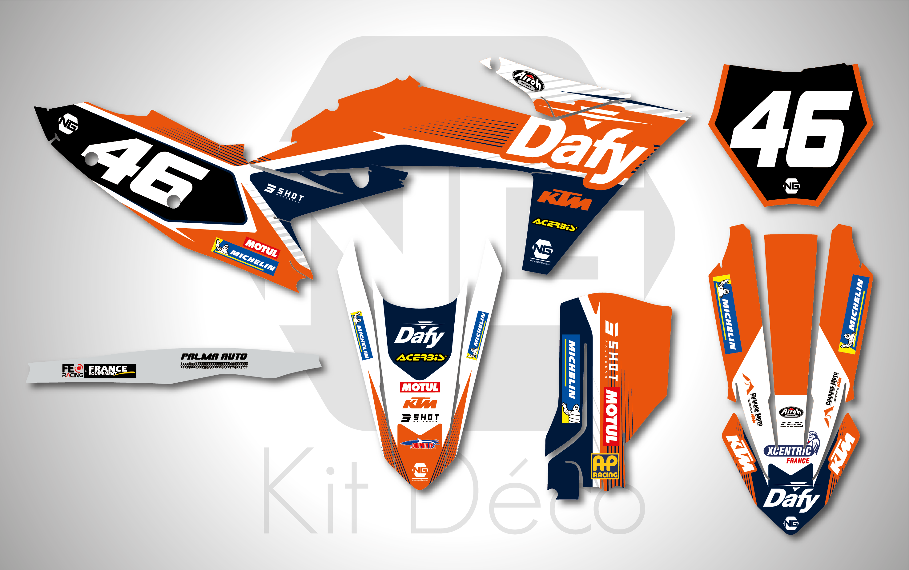 Si votre moto n’est pas dans les modèles disponibles de kit déco motocross, n’hésitez pas à nous contacter pour faire votre kit déco ktm.