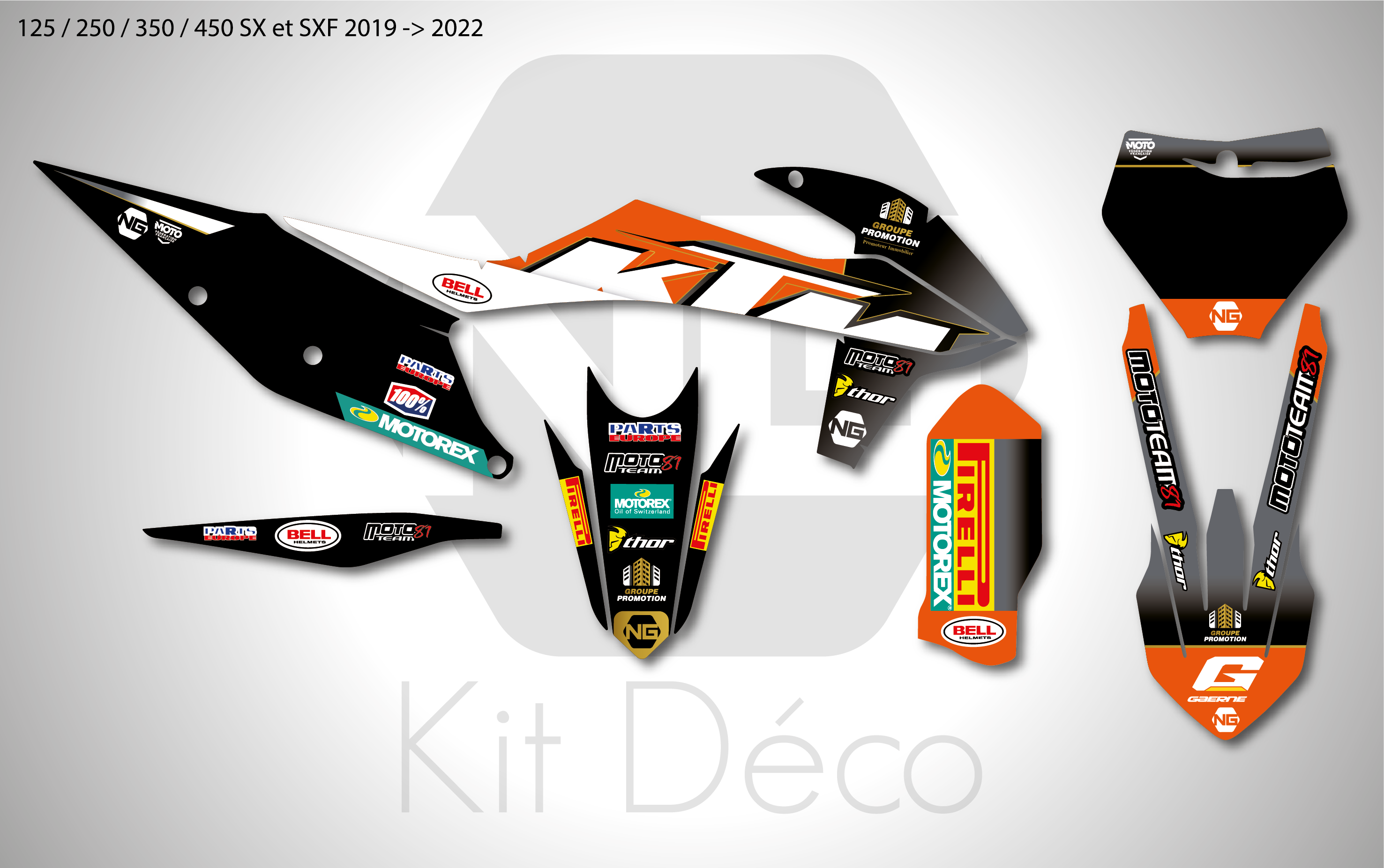 Votre kit déco complet pour motocross KTM SX / SXF comprend