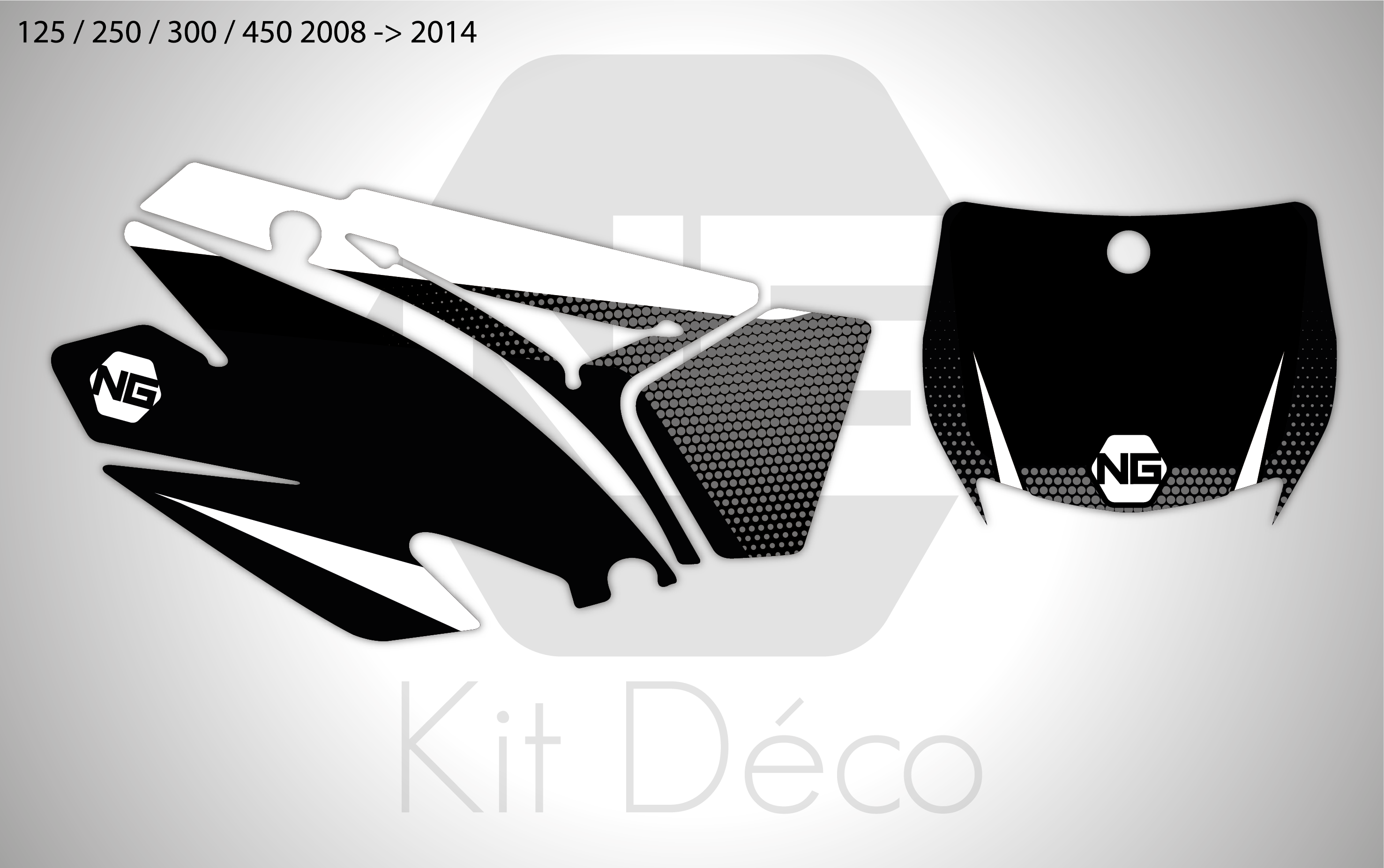 Kit déco fond de plaque numéro TM Racing MX / FI MX SPIKE séries blanc / noir