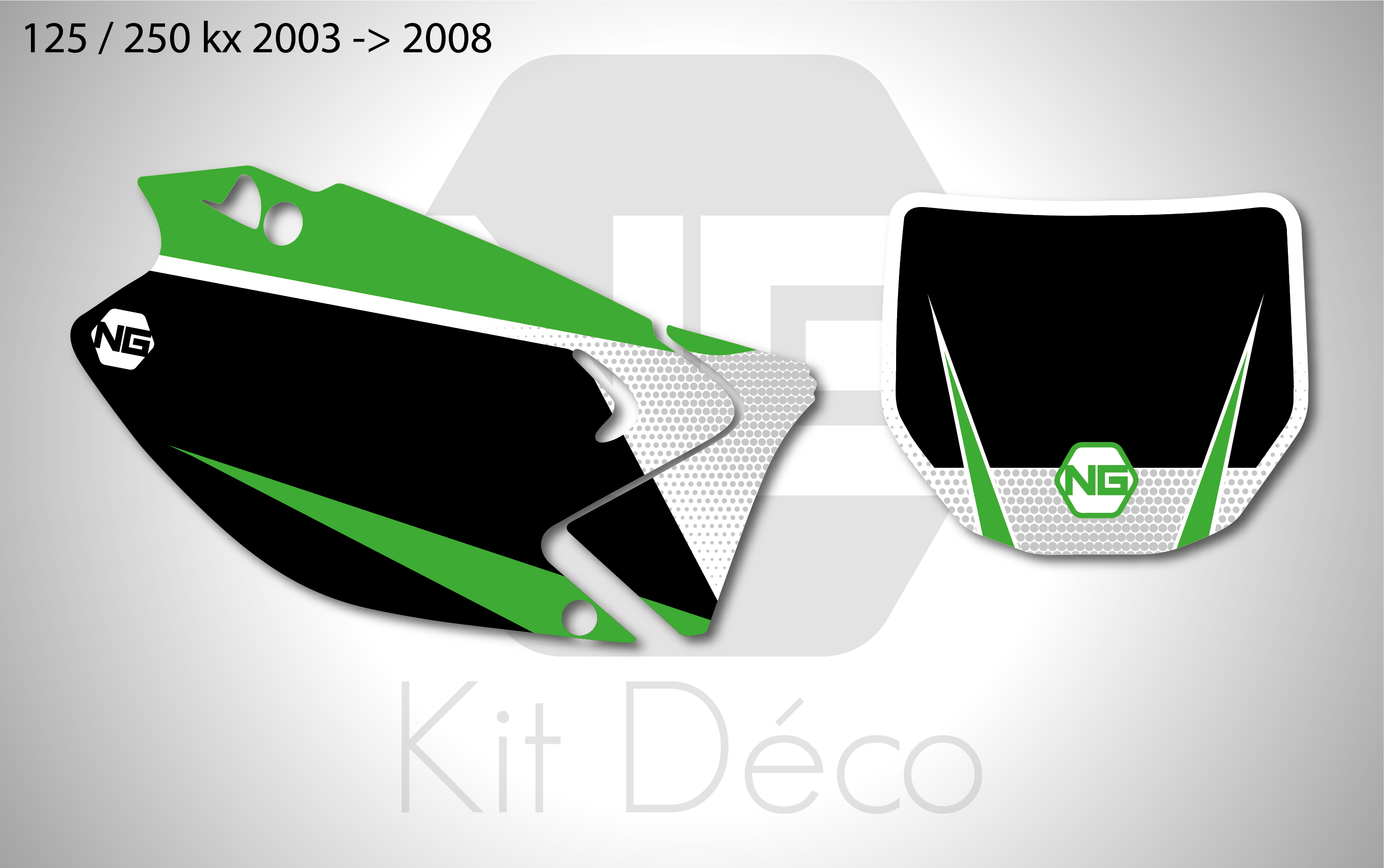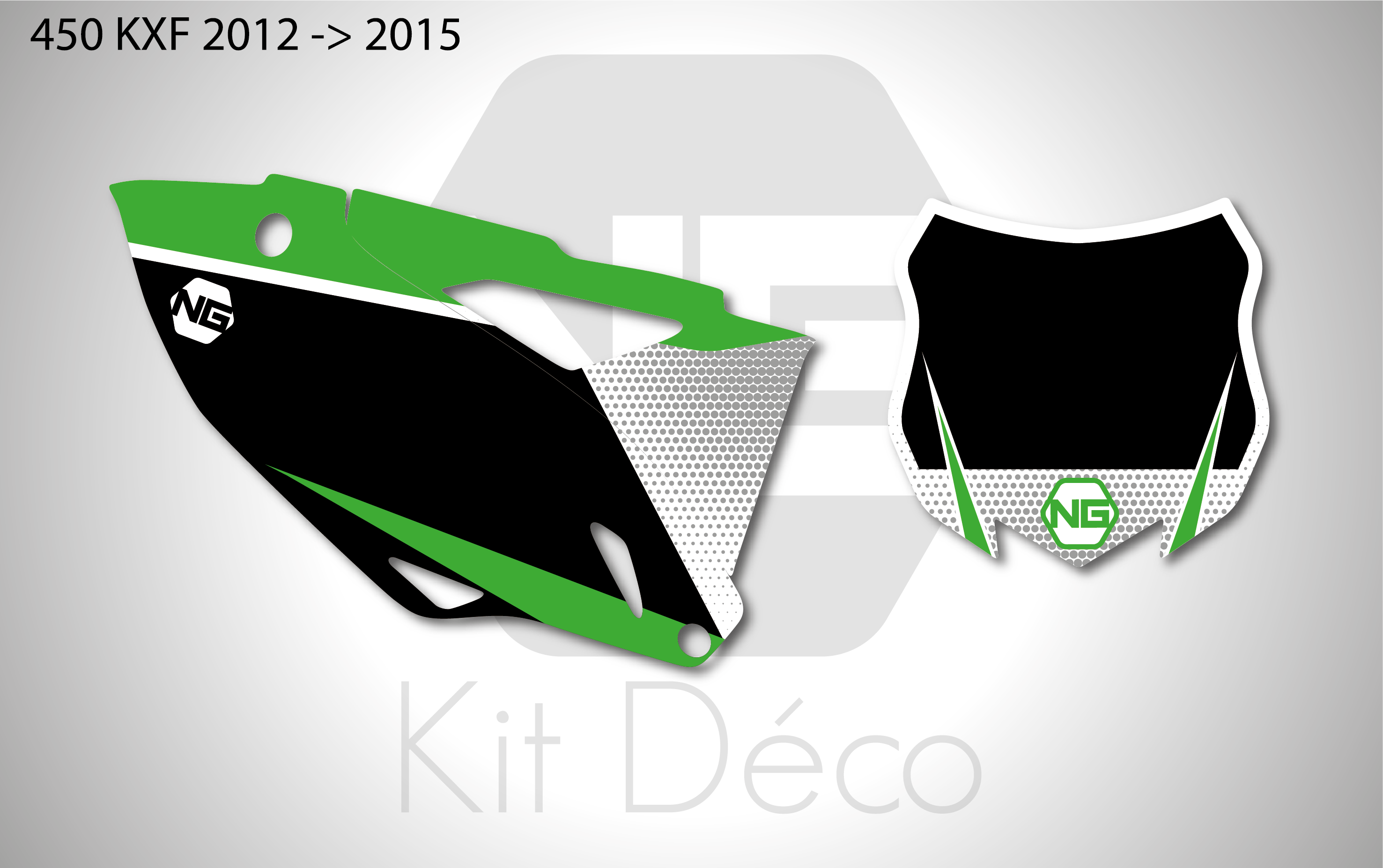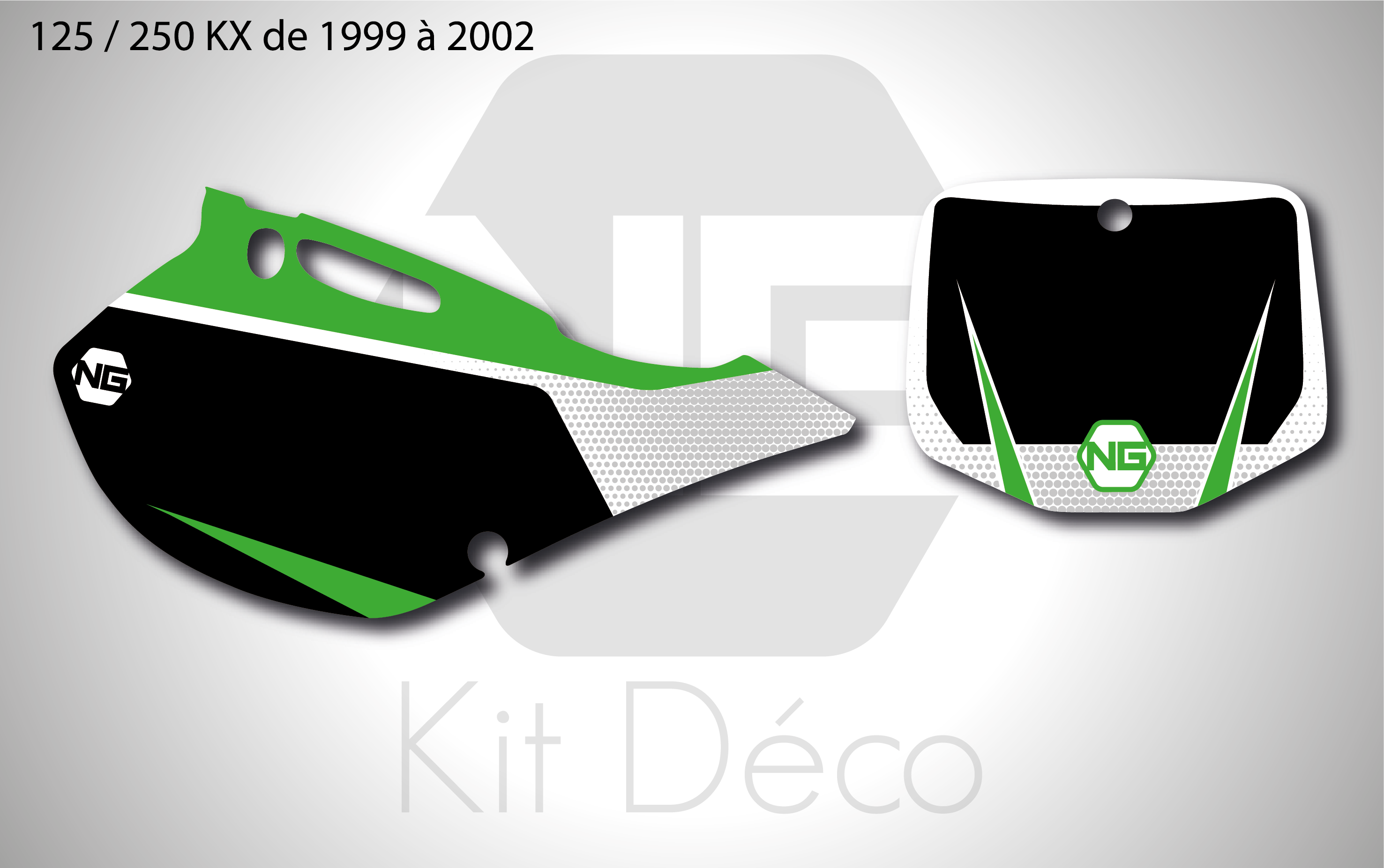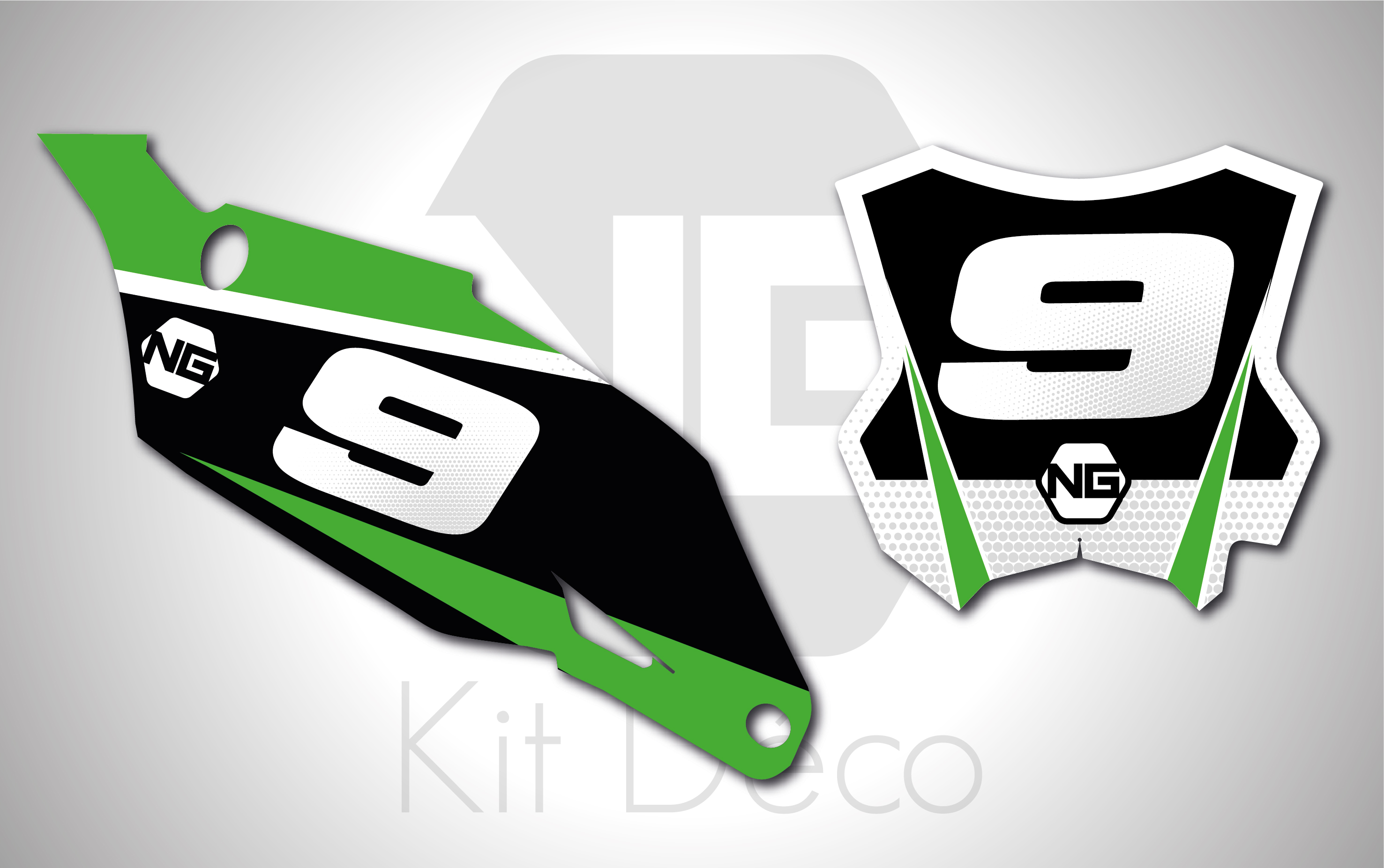 Votre kit déco fond de plaque numéro pour motocross Kawasaki KLX / KX / KXF comprend