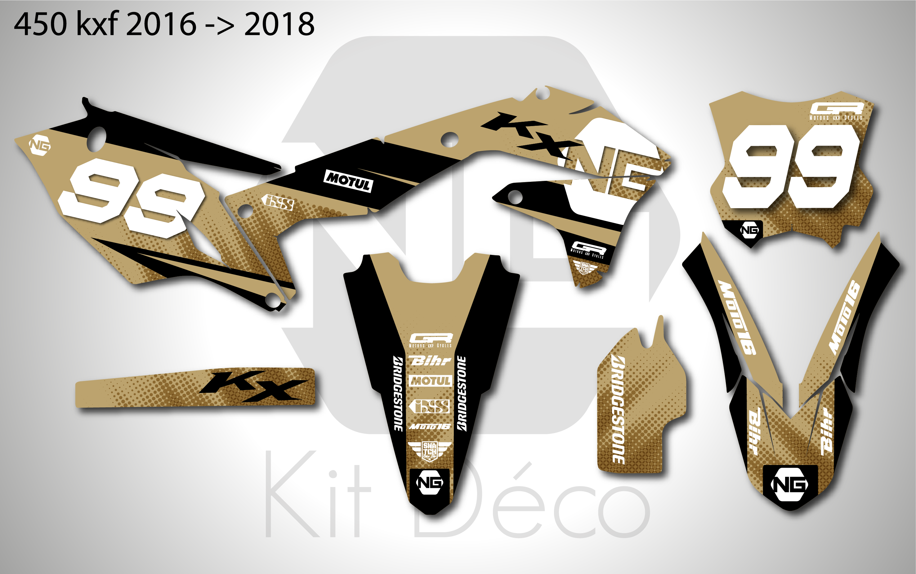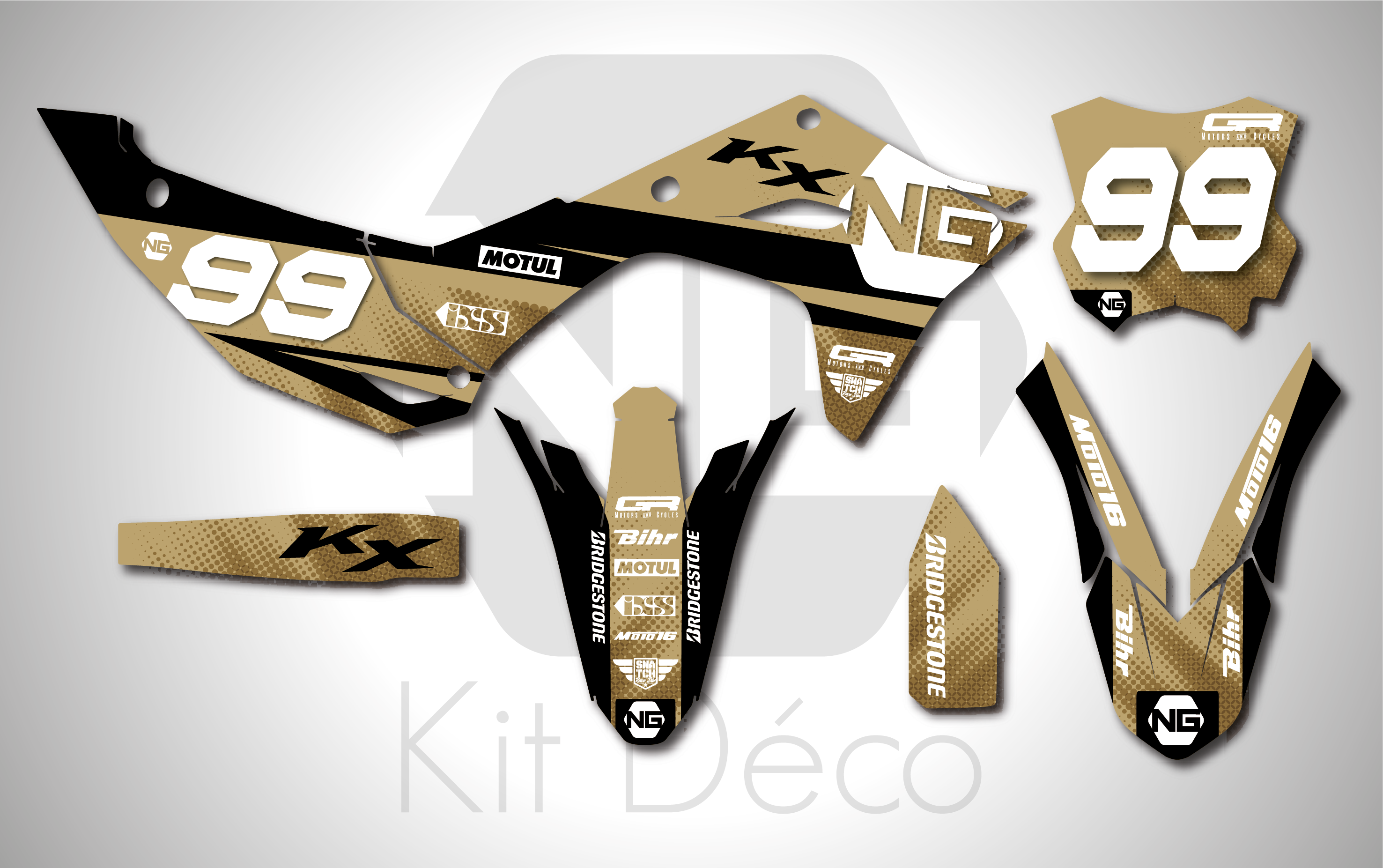 Votre kit déco complet pour motocross Kawasaki KX / KLX / KXF comprend