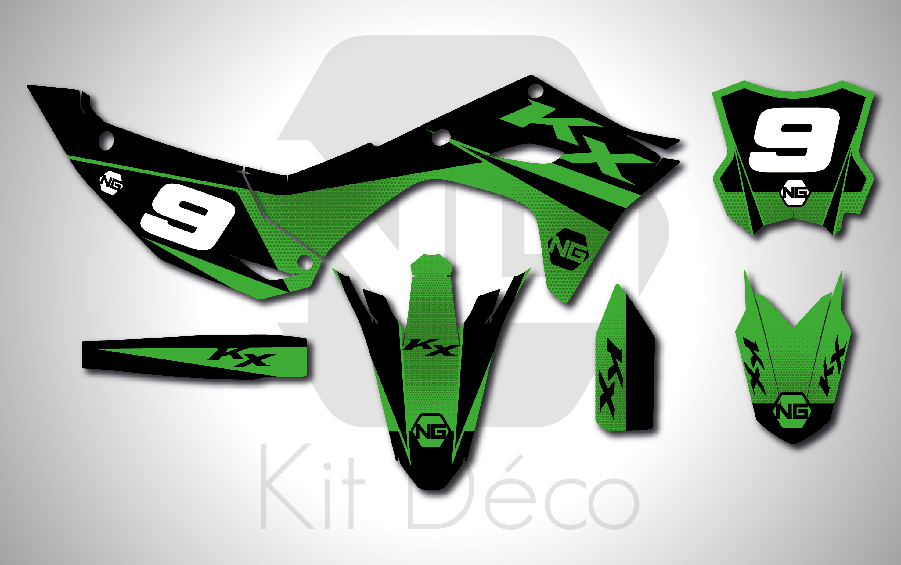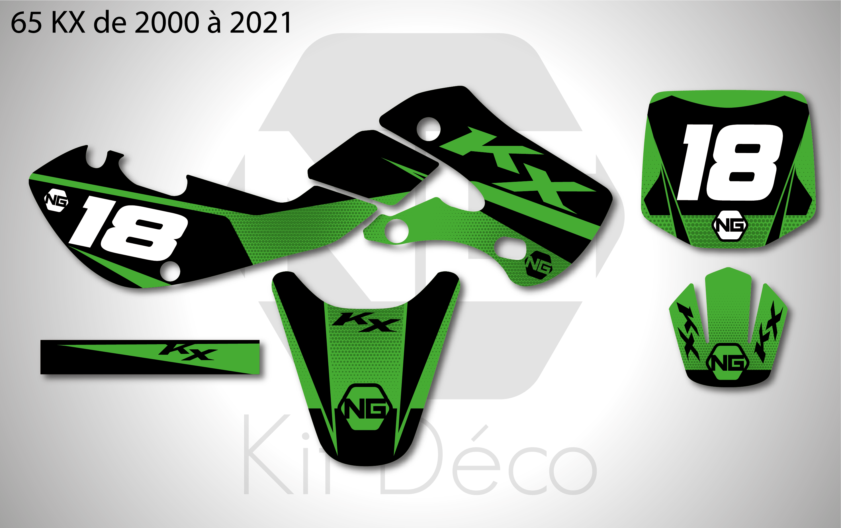 Votre kit déco complet pour motocross Kawasaki KX / KLX / KXF comprend