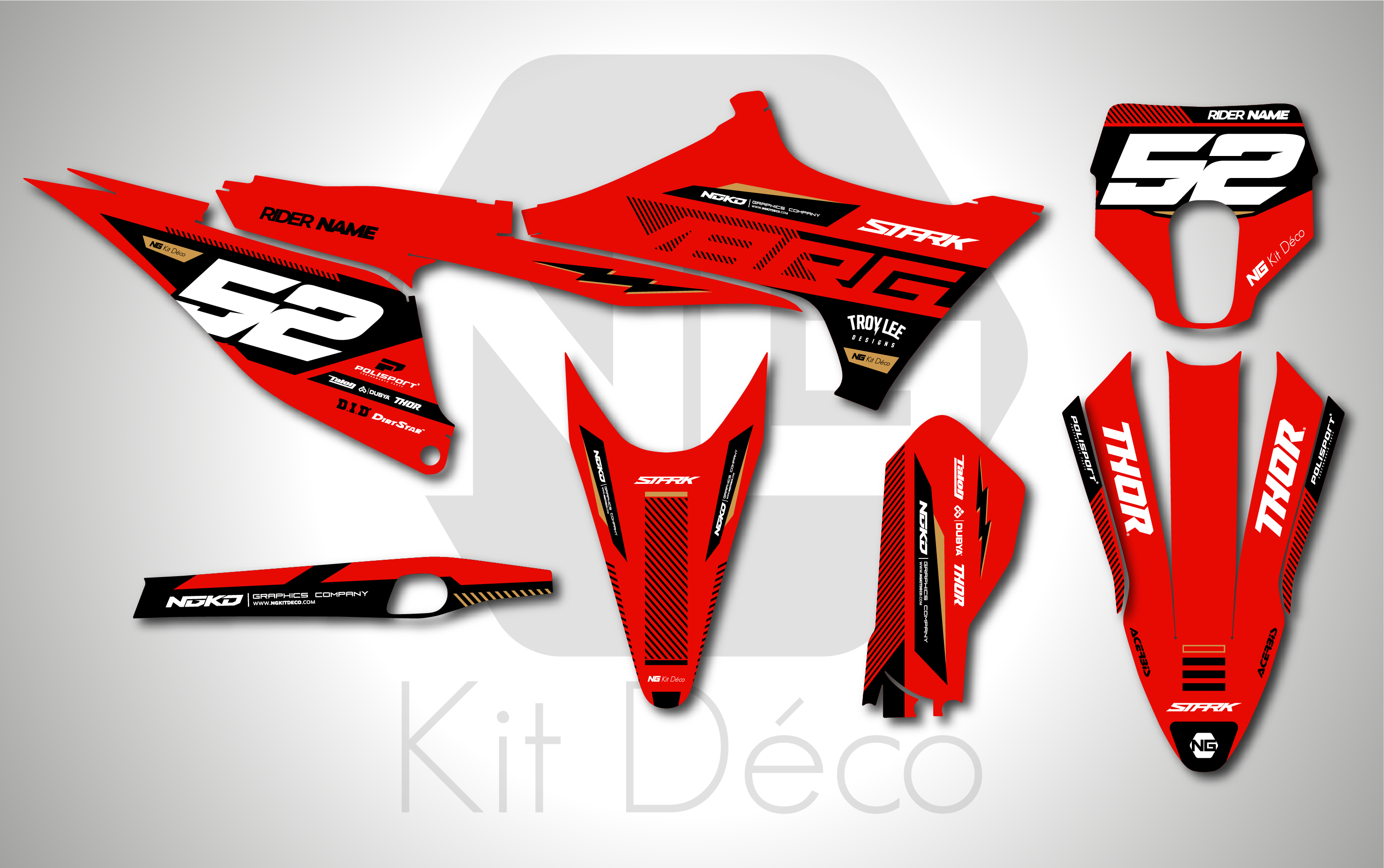 Les images de kit déco sont à titre d’exemple et peuvent varier selon l’année et le modèle de votre motocross.
