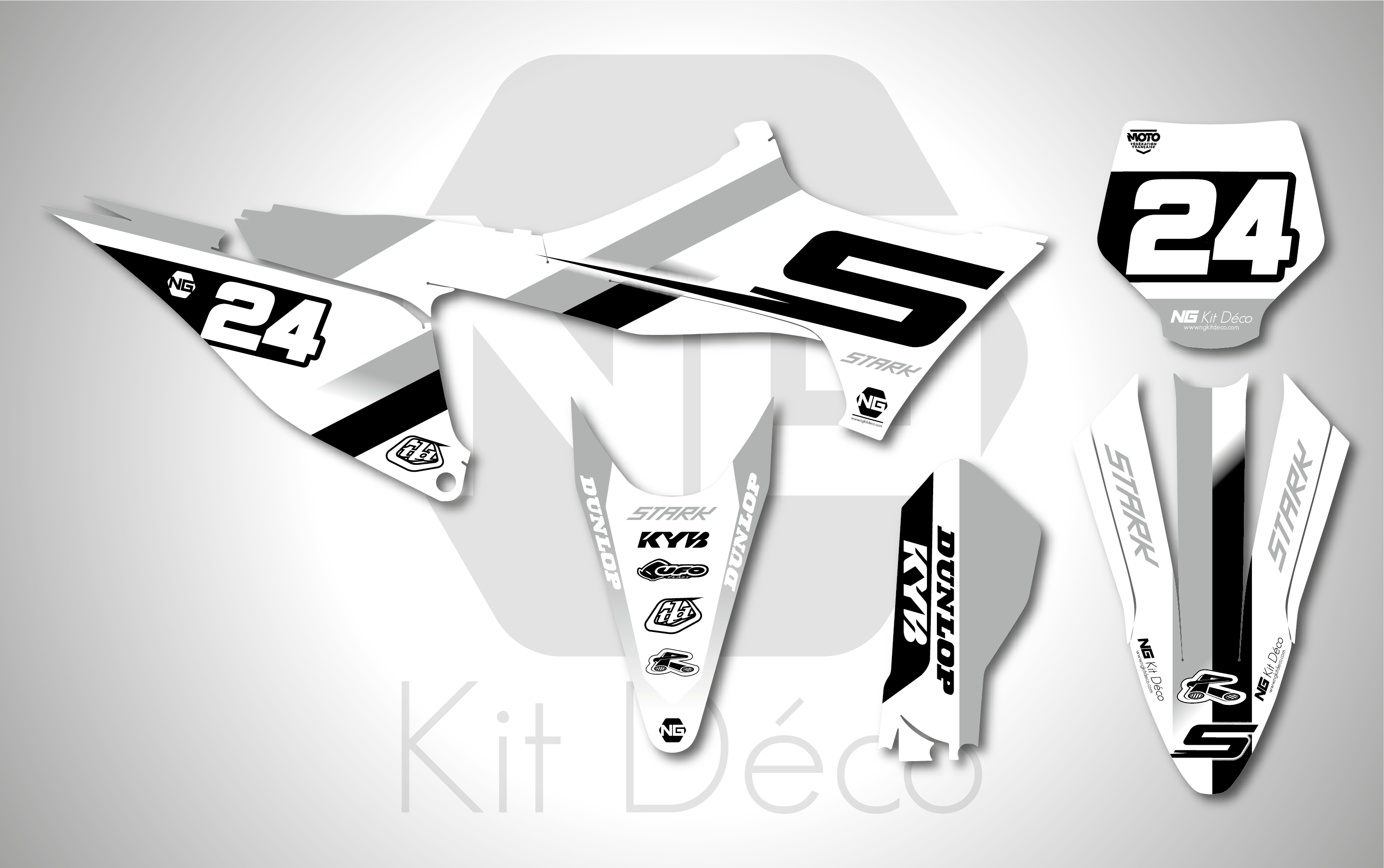 Si votre moto n’est pas dans les modèles disponibles de kit déco motocross, n’hésitez pas à nous contacter pour faire votre kit déco Stark.
