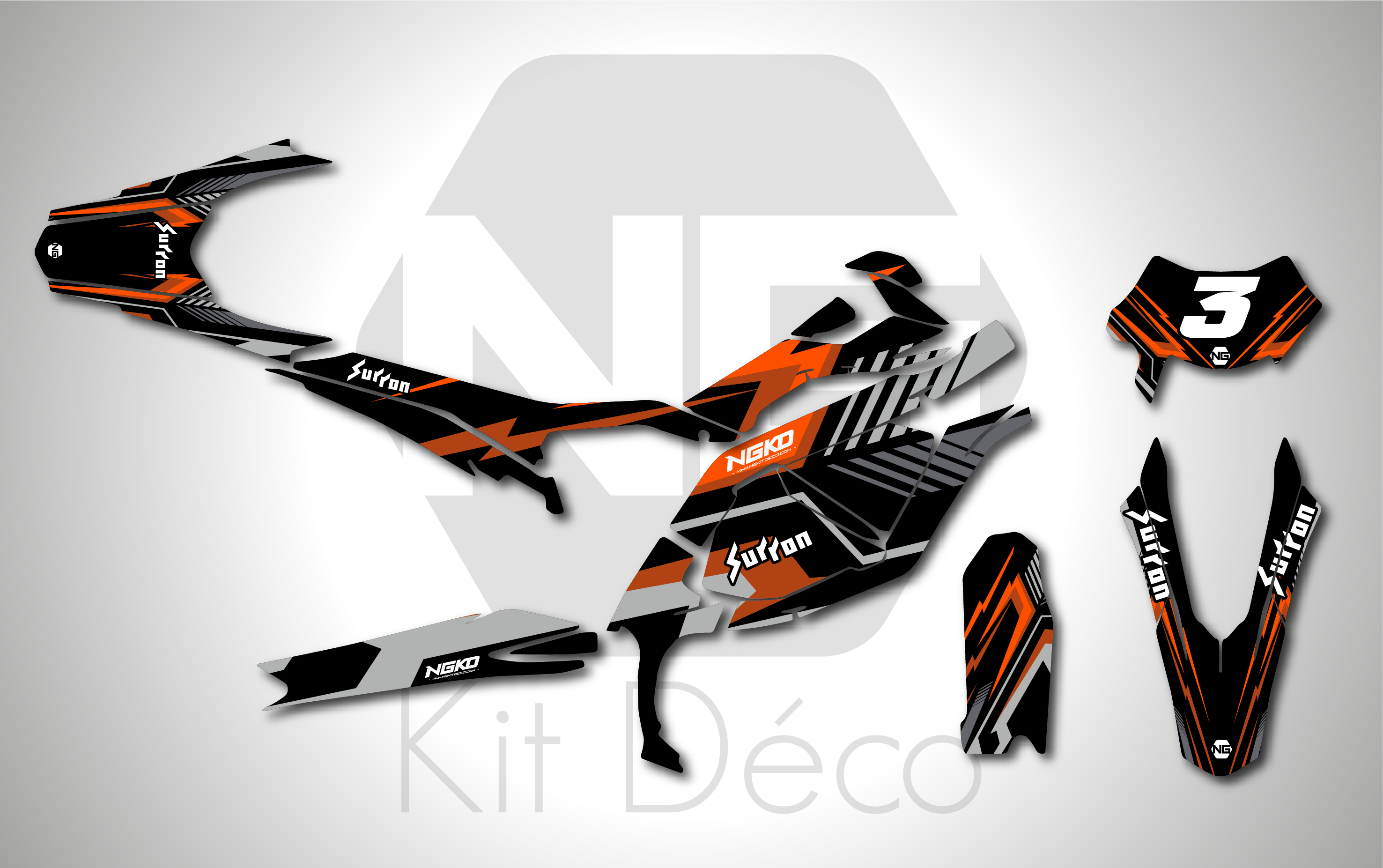 Votre kit déco complet pour moto électrique sur-ron comprend :