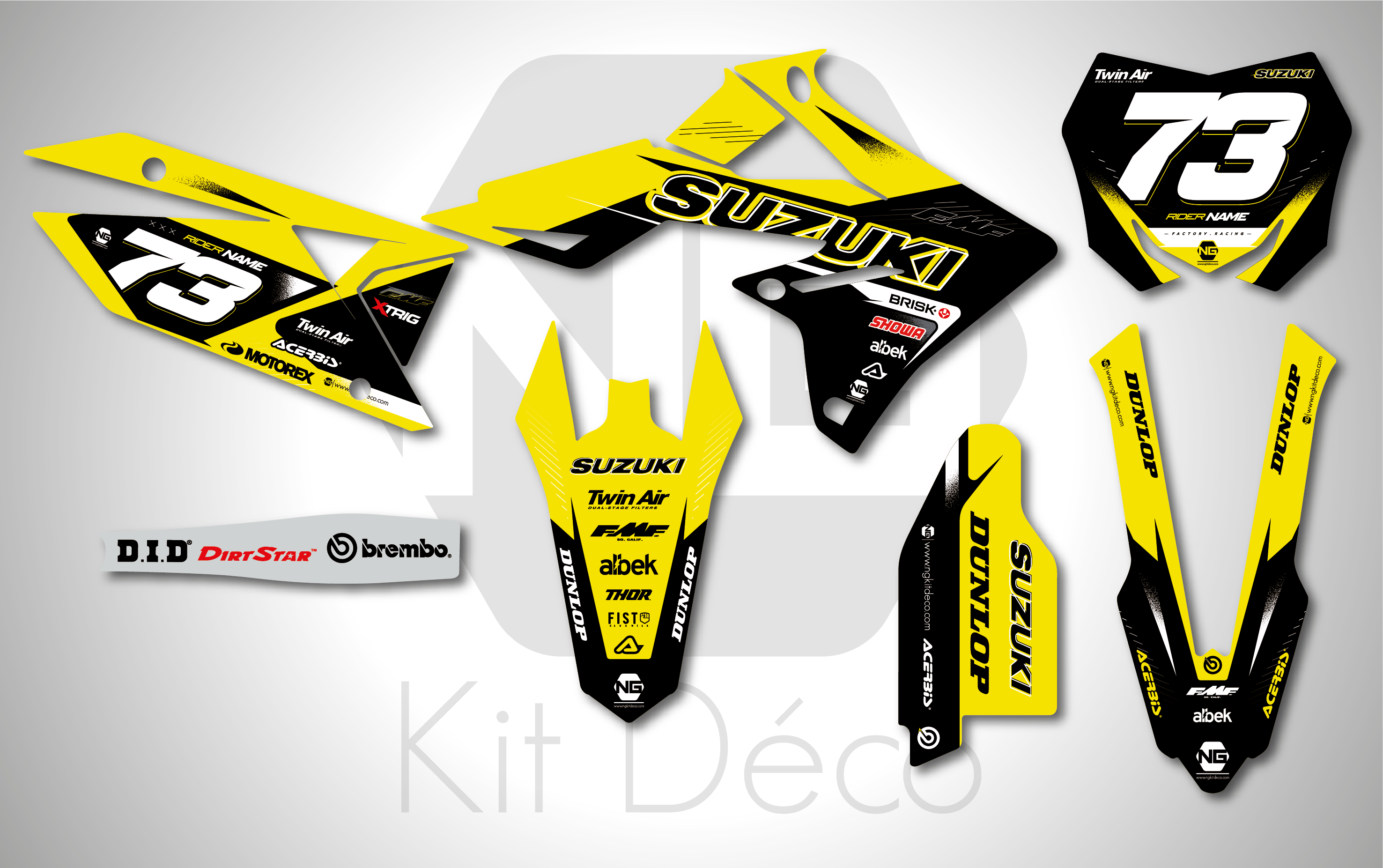 Votre kit déco complet pour motocross Suzuki RM / RMZ comprend