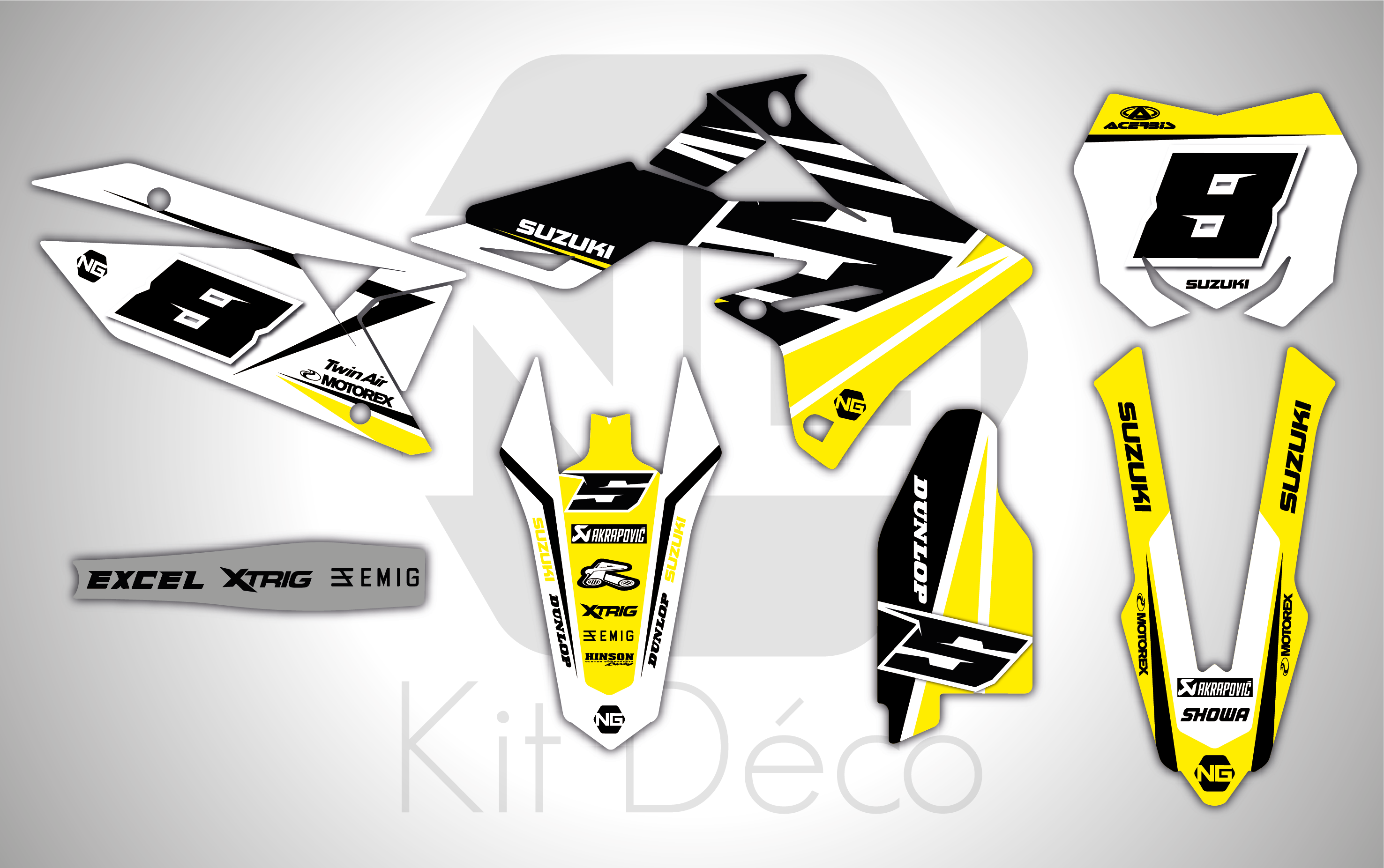 Votre kit déco complet pour motocross Suzuki RM / RMZ comprend